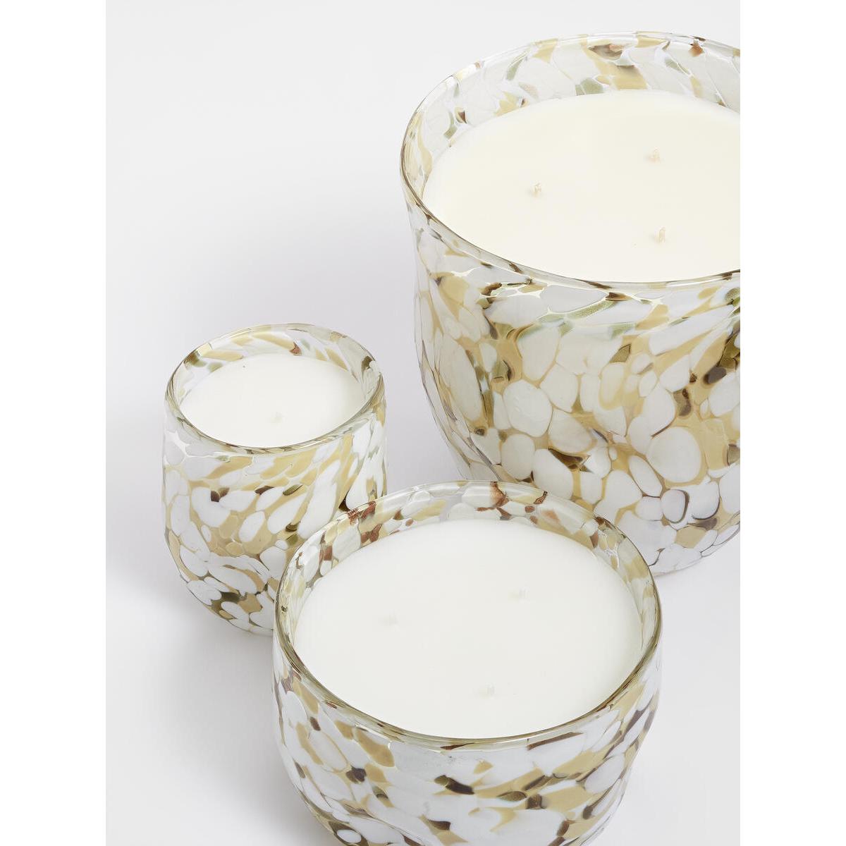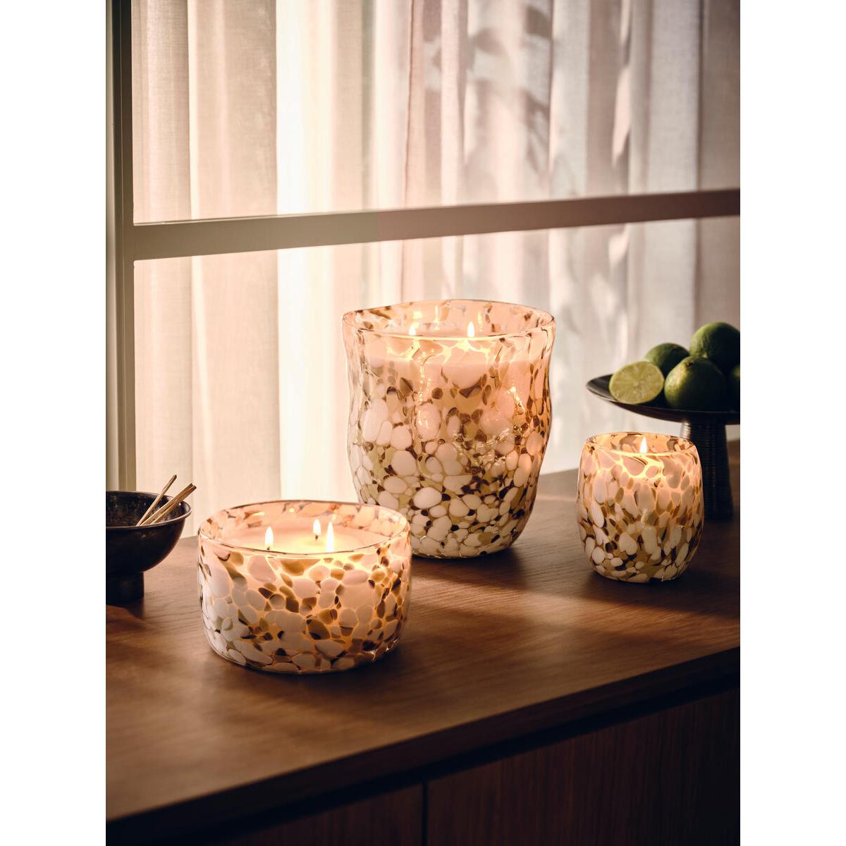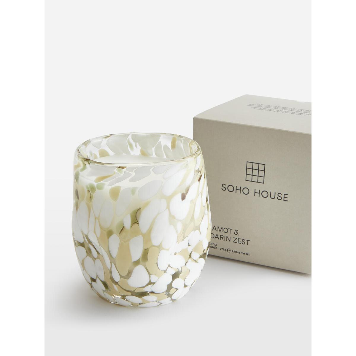 The small Veneto candle is crafted from hand-blown glass with a marbled pattern to complement the vessel's organic form, making each one unique. Inspired by mornings overlooking the Mediterranean Sea at the terrace in Little Beach House Barcelona, this small candle blends fresh citrus notes of Bergamot, Lime and Mandarin with Jasmine, Neroli, and Smoky Musk. Scent notes Top: Lime Middle: Bergamot Base: Oakmoss Small glass candle Infused with our Bergamot & Mandarin fragrance Hand-blown glass Marbled pattern Hand-poured in England Reuse as a tealight holder Bespoke fragrance created by an expert perfumer for Soho House Inspired by Soho Farmhouse