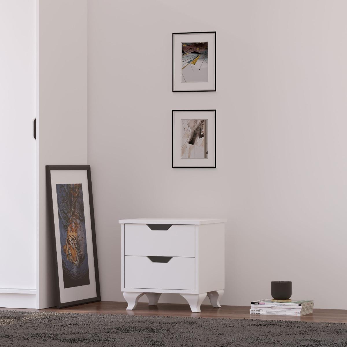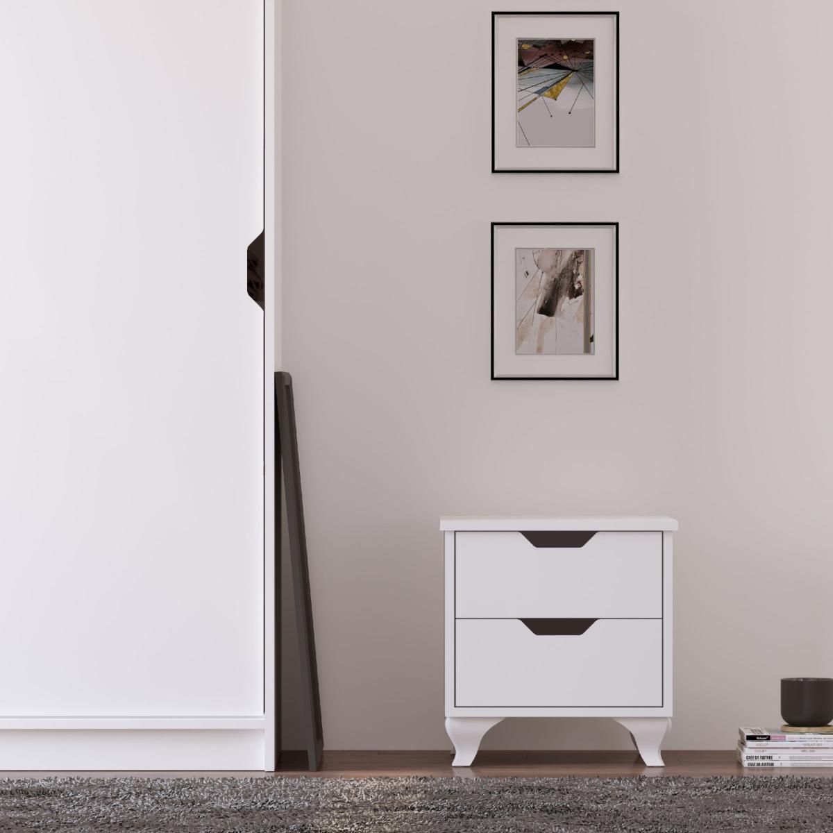 BERGEN 2 Drawer White Bedside Table - White
