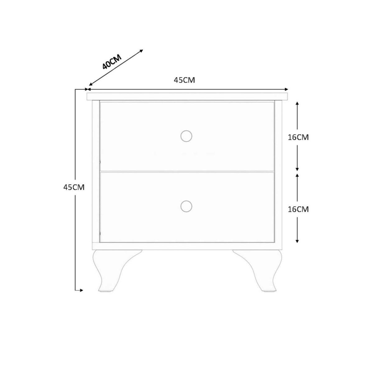 Inspired by the Scandinavian furniture BERGEN range impresses with its modern look and practical features. Featuring two deep drawers, tapered feet and finished in soft white colour, offering you compact space for your folded clothes or accessories, such as sweaters, jeans, hats, hand bags, etc. Material Membrane coated MDF board Colour White Dimensions Width45cm,Height45cm,Depth40cm. Delivered flat packed in 1x Box..Total Gross Weight12.3kg.
