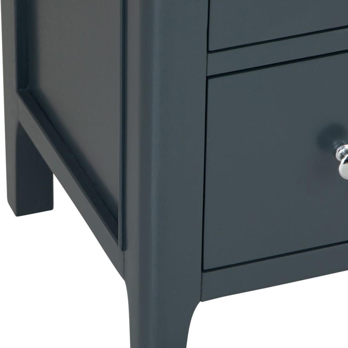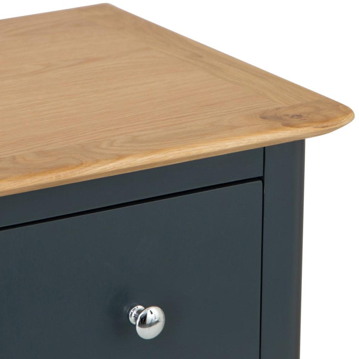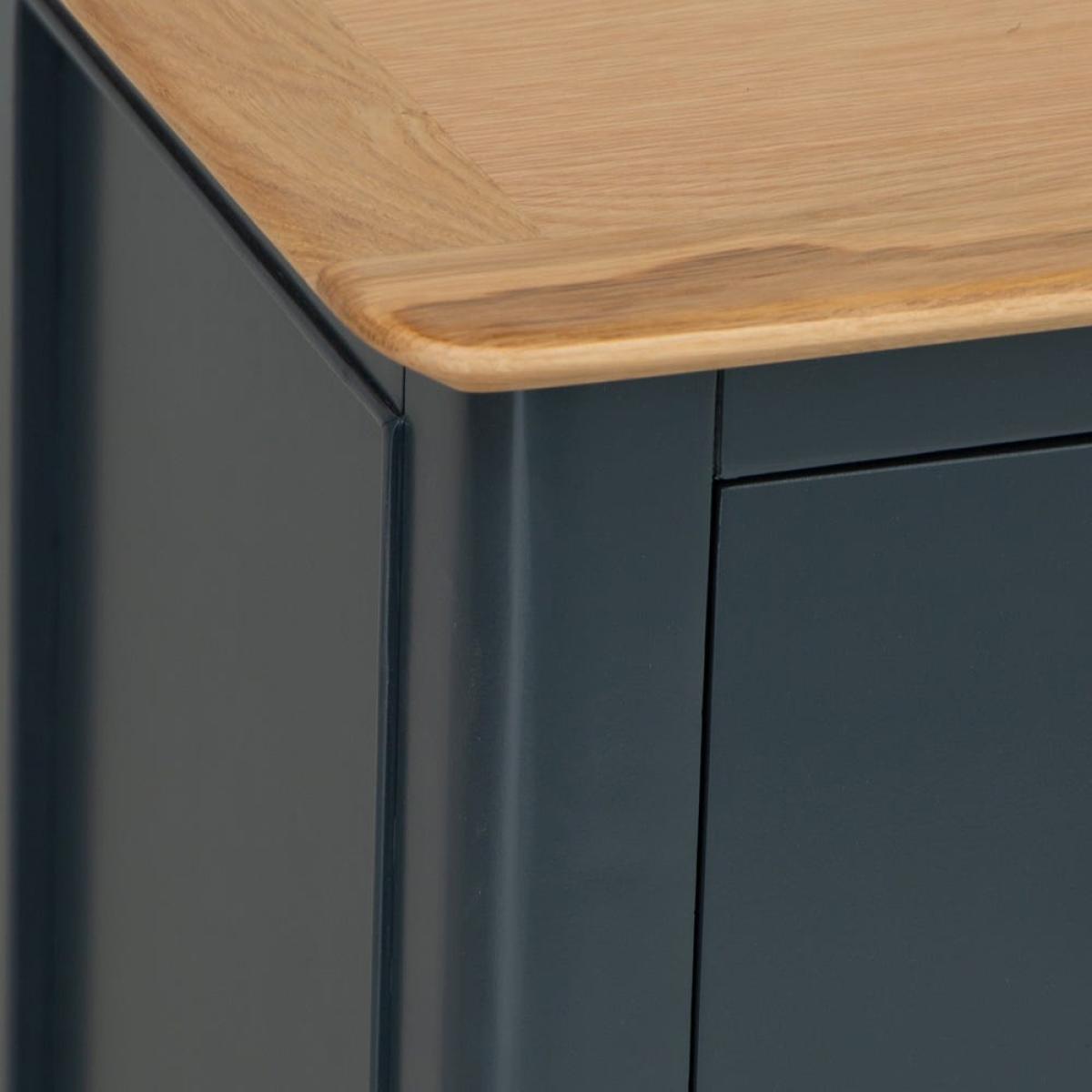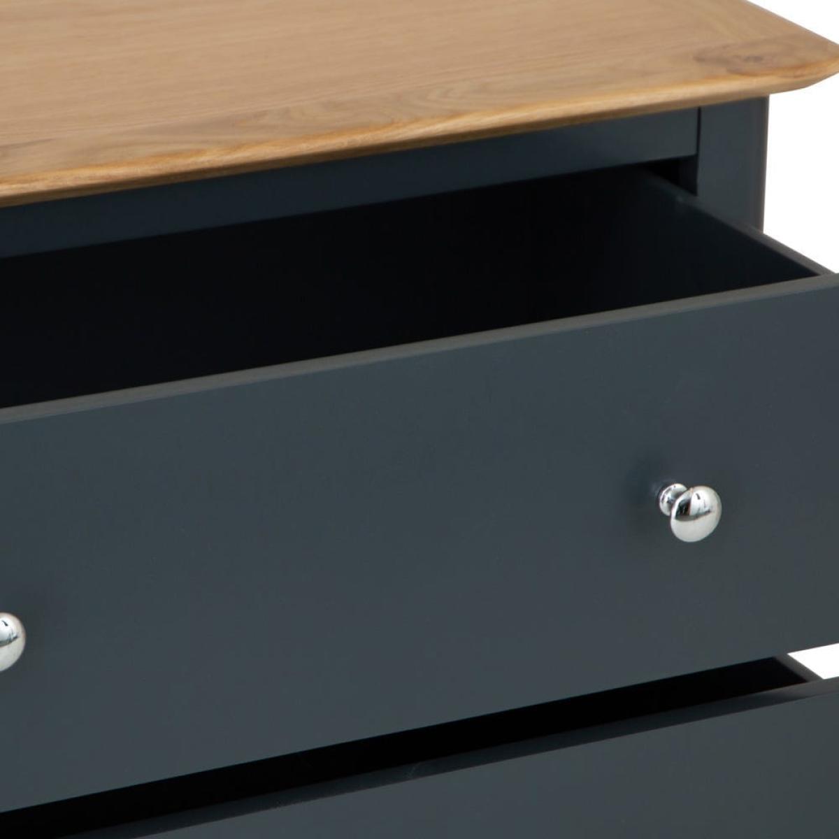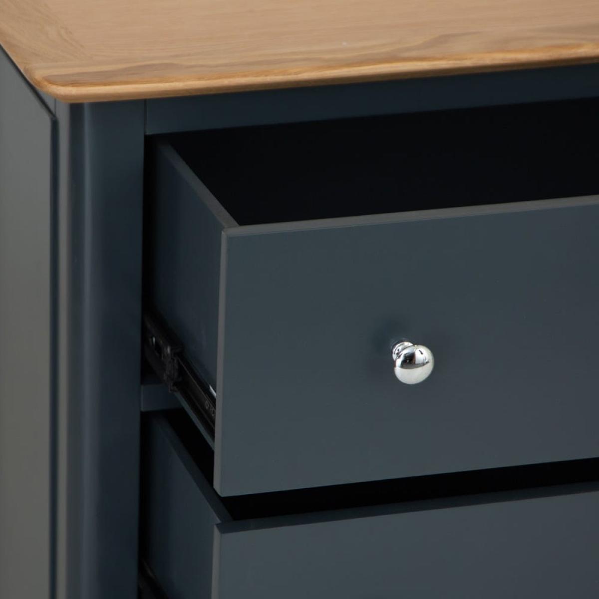 For a storage solution which both looks good and makes your life that much more clutter-free, look no further than the Bergen blue painted oak chest of 3 drawers. Fold and tuck away your favourite clothes in its trio of roomy drawers. You’ll be able to fit in everything from your warmest socks to your thickest winter jumper. Making a statement with its navy-blue paint finish, this stylish chest of drawers is a picture of northern-inspired design. Supported by neat, straight legs and finished with a top surface of oak wood, it’s the best blend of soft and striking.