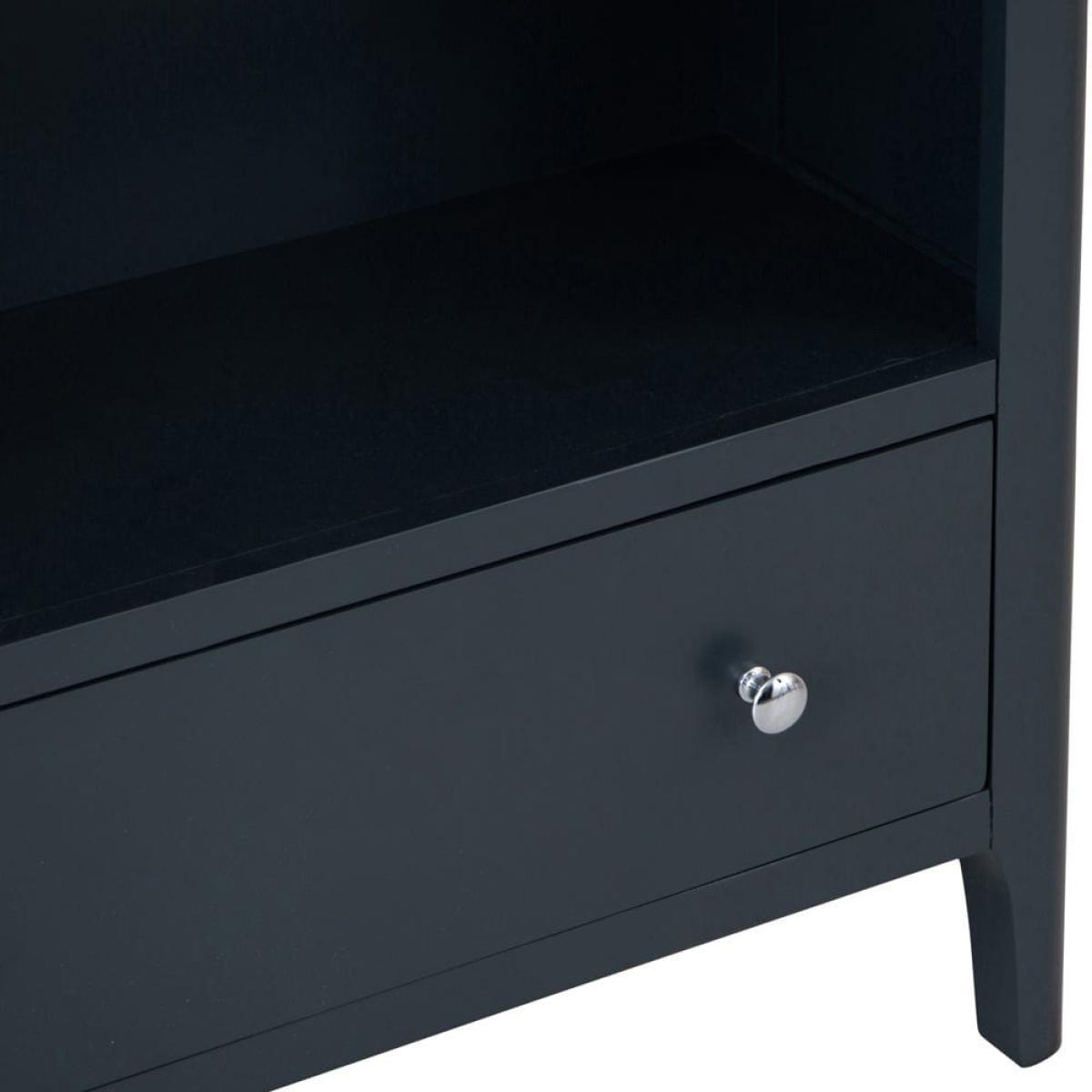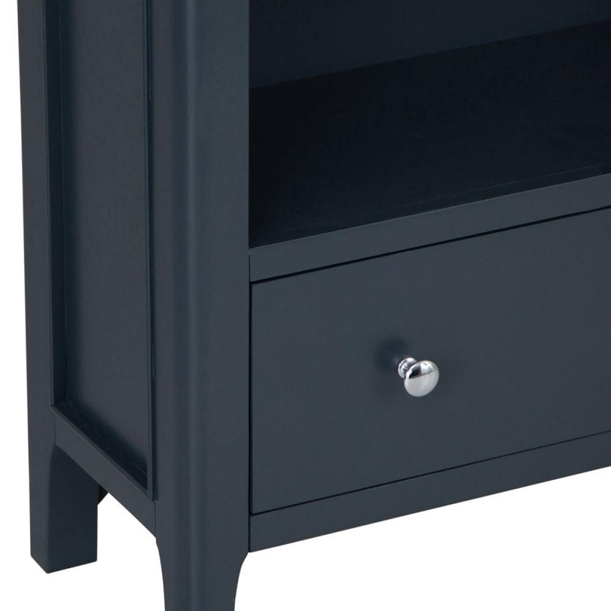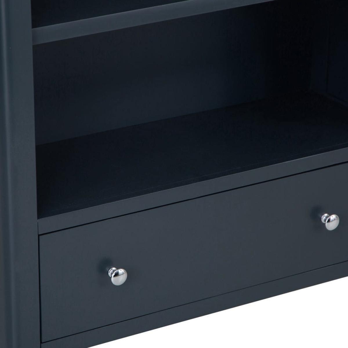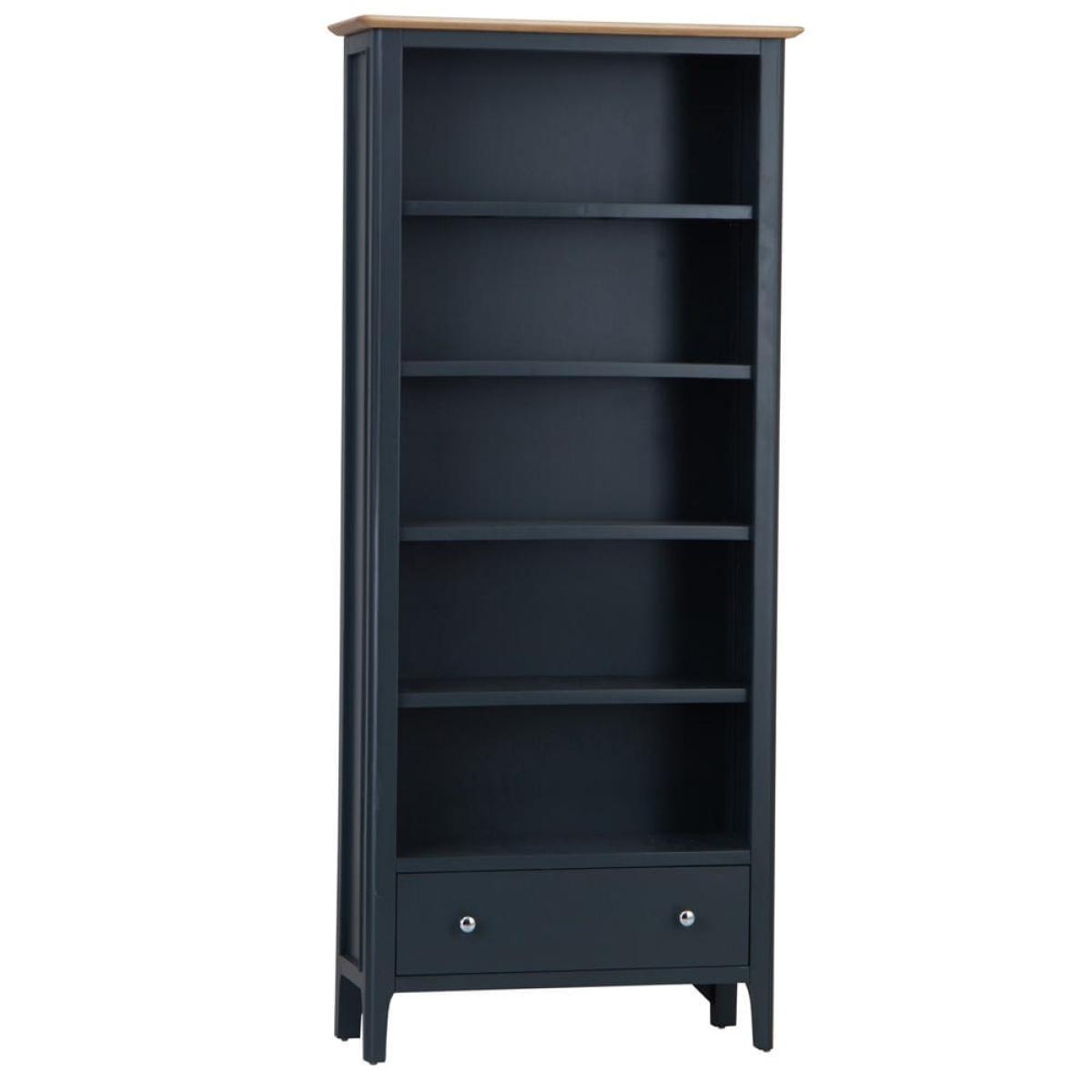 Look the business at your next work meeting by setting the Bergen blue painted oak large bookcase in the background. Carefully arranged with all your smartest hardbacks and a shiny award or two, you’ll look super-sophisticated and oh-so smart – just like your new bookcase. Featuring two fixed and two adjustable shelves, play around with this bookcase and get it set up in the best way to suit you. The convenient bottom drawer is perfect for tucking away other bits and bobs. What about the half-finished knitting project you occasionally return to, along with the ‘How to Knit’ book stored on your bookshelf?.