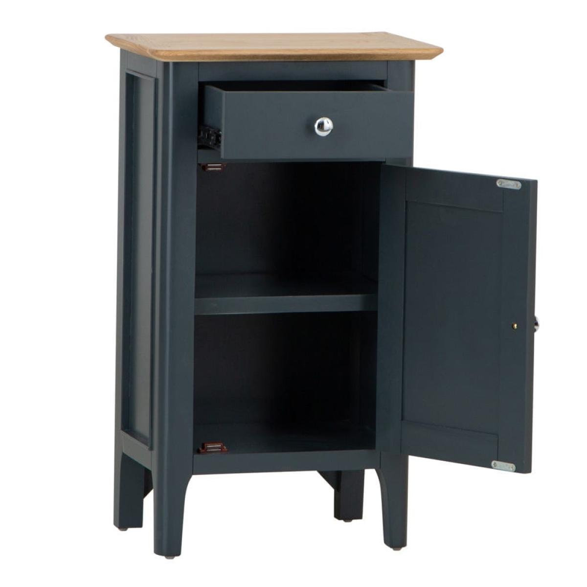 The narrow and stylish Bergen blue painted oak small cupboard provides sophisticated storage solutions for whichever room you choose to place it in. And thanks to its gorgeous Scandinavian-inspired design and striking navy blue finish, it’ll fit in just about anywhere. Placed in the hall, the top drawer makes a handy hideaway for house keys and car keys. Or find a spot for this small cupboard in your living space. The smooth wooden top surface is ideal for a floral display or a scatter of scented candles. Stack the cupboard shelves with puzzles and boardgames you want to keep stored nearby.