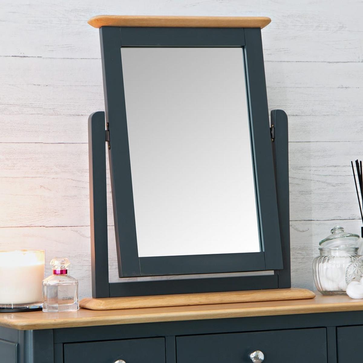Getting ready for a night out gets a whole lot more exciting when you’ve got the Bergen blue painted oak vanity mirror as part of your bedroom set-up. The angle of the vanity mirror is fully adjustable, so you can easily add light and space to your cosiest room. The straight-edged frame is finished in eye-catching navy blue, an elegant statement colour that brings a touch of midnight glamour to your interior. Placed on a surface along with cosy candles and a framed photograph or two, this mirror helps take your bedroom’s cosiness up another level.