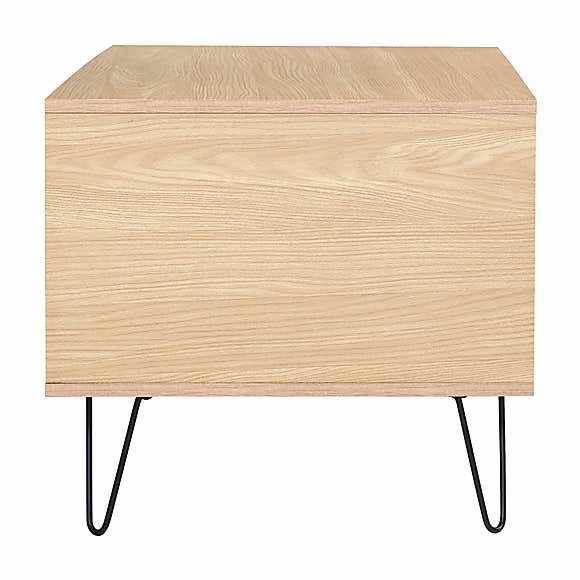 I love this coffee table for its versatility and understated style. Its light oak finish gives it a fresh, modern look that works well in contemporary or Scandinavian-inspired interiors, but it can also add warmth to more eclectic or minimalist spaces. The mix of open shelving and coloured drawers provides practical storage without cluttering the room, making it perfect for tucking away remotes, magazines, or other essentials. When styling, consider layering with a few decorative books or a small tray on top for added interest, and pair it with soft textiles or greenery to soften its angular form. Its raised design with hairpin legs allows for easy cleaning underneath and adds a subtle touch of retro charm.