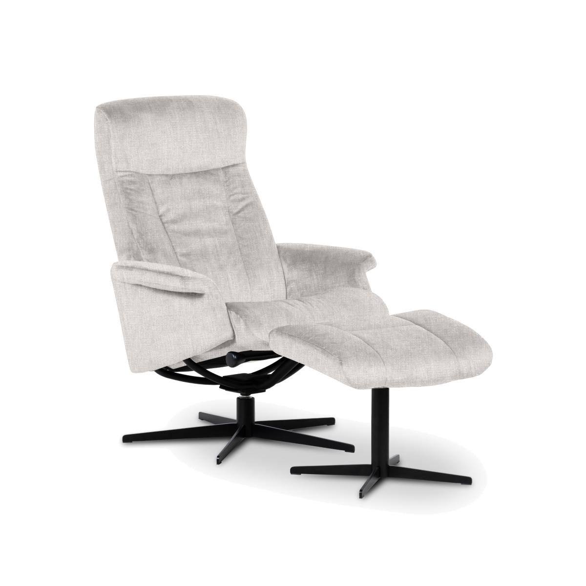 This handcrafted and beautifully cushioned swivel recliner chair and matching footstool set is both very cool and incredibly comfortable. Only at Furniture Village. Why you'll love it Retro-inspired swivel reclining chair and footstool combo. The effortless way to recline, swivel and put your feet up in style. Adjustable headrest makes it even easier to relax. Dynamic lumbar support eases an aching back. Premium quality foam cushioning for exceptional comfort and support. Extra strong tubular steel frame comes with a lifetime guarantee. Manual recliner mechanism with an easy-to-use lever operation. Both pieces have 5-pronged bases. In a wide choice of high-quality upholstery fabrics. Also available in 100% leather. Handmade exclusively for Furniture Village. This medium swivel chair and footstool is part of our Effortless collection. What you need to know Self-assembly required. Medium comfort level. Seat suspension: sinuous spring. Seat cushioning: cold cure moulded foam. Cushioning is fixed. Back suspension: sinuous spring. Back cushioning: cold cure moulded foam. Cushioning is fixed. Arm cushioning: cold cure moulded foam. Please allow time for the recliner mechanism to ease. Minor gaps are necessary to ensure ease of motion and may be exaggerated depending on floor type. Some fabrics can show wear on areas of more use or in direct sunlight. Clean regularly using a soft brush or vacuum with the curtain attachment. Deal with any spills promptly. Professional cleaning advised for oil- and grease-based stains. Please read our upholstery care guide for more advice.