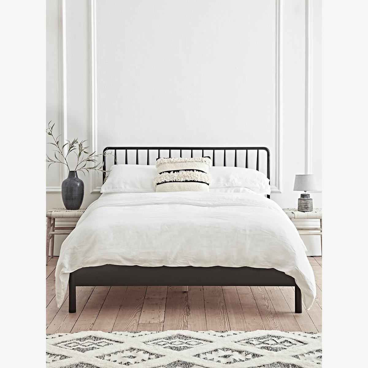 I love this black bed frame for its contemporary yet versatile look. The Bergen Oak Bed in black works particularly well in modern interiors with minimalist, industrial, or Scandinavian themes, adding a sleek contrast in lighter palettes or blending seamlessly into darker schemes. It’s a practical choice for those who prefer a mix of natural wood tones with a bold black finish - perfect for creating a sophisticated bedroom aesthetic. When styling, consider pairing it with crisp white bedding for a fresh look, or add textured throws and cushions in earthy tones to soften the overall feel. To maximise space, keep bedside tables minimal and opt for statement lighting or sleek lamps to highlight the bed as a focal point in your room.