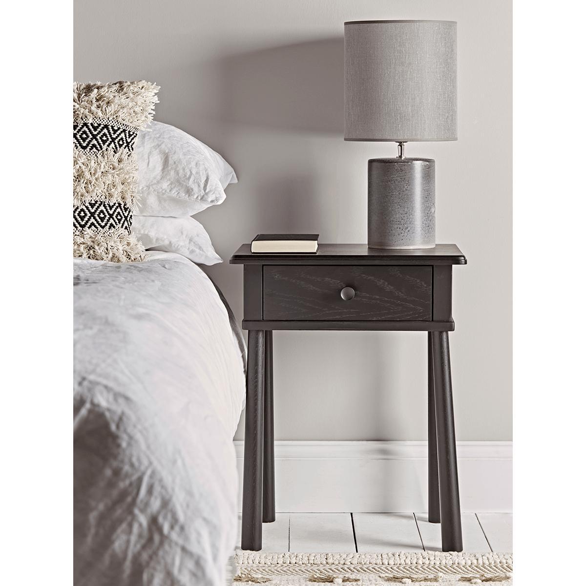 With its elegantly tapered legs and single smooth-slide drawer, our Scandinavian inspired bedside table makes the perfect home for your favourite book and a bedtime mug of hot chocolate. Each table is 100% solid oak with a simple, black painted finish.