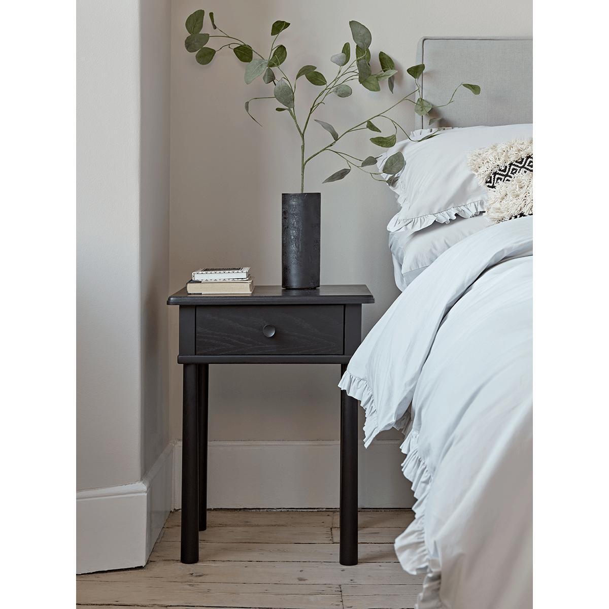 I’m a fan of this black oak side table for its clean lines, compact footprint and the warmth of its oak veneer beneath the matte finish. It sits equally well in Scandi-inspired bedrooms, modern industrial lofts or pared-back contemporary schemes. Styling-wise, keep the top simple - a slim ceramic vase with foliage and a neat stack of books adds height and interest without clutter. The small drawer is perfect for bedside bits, while the dark finish provides a crisp contrast against light linens or can be echoed in other black accents around the room.