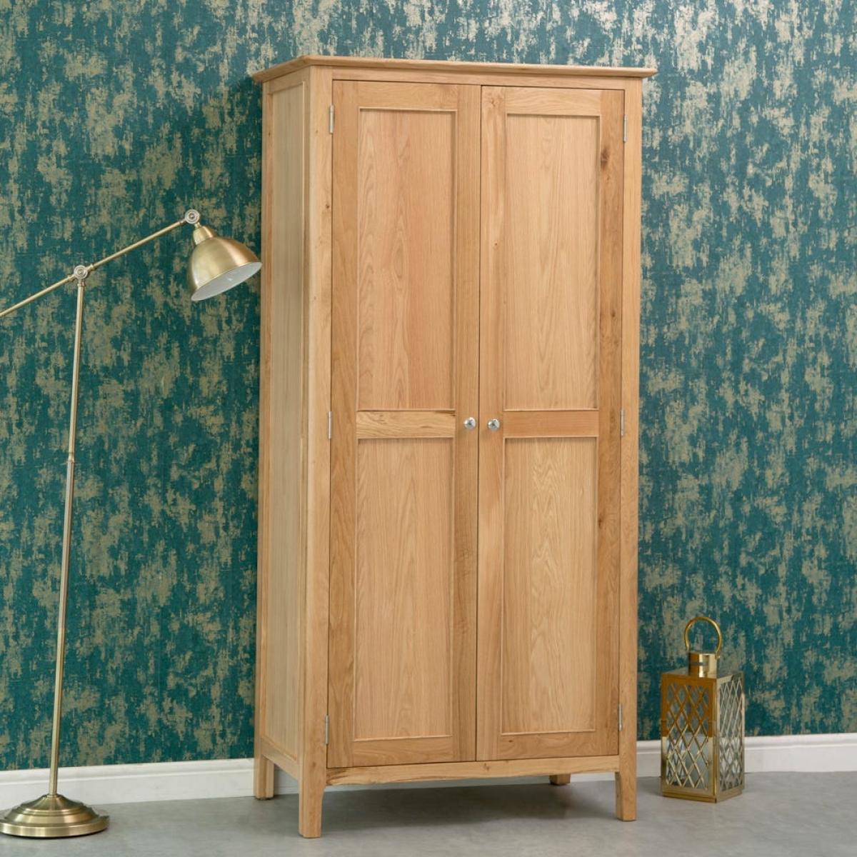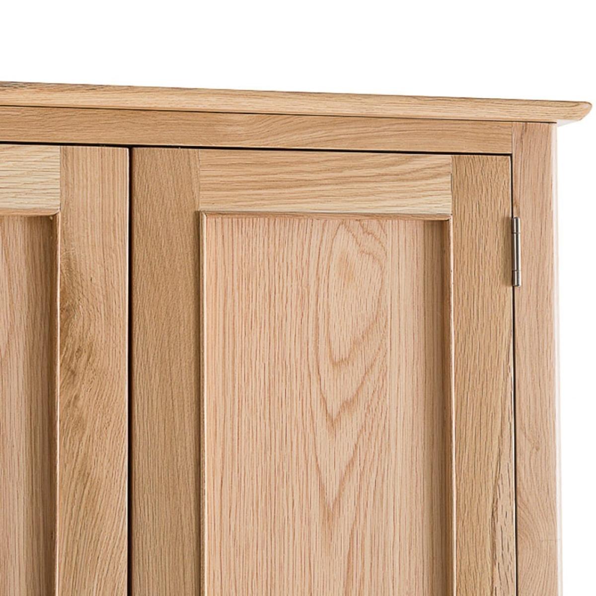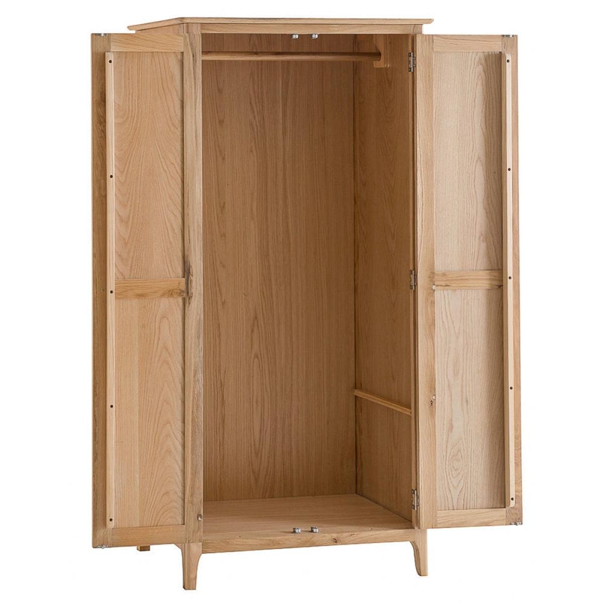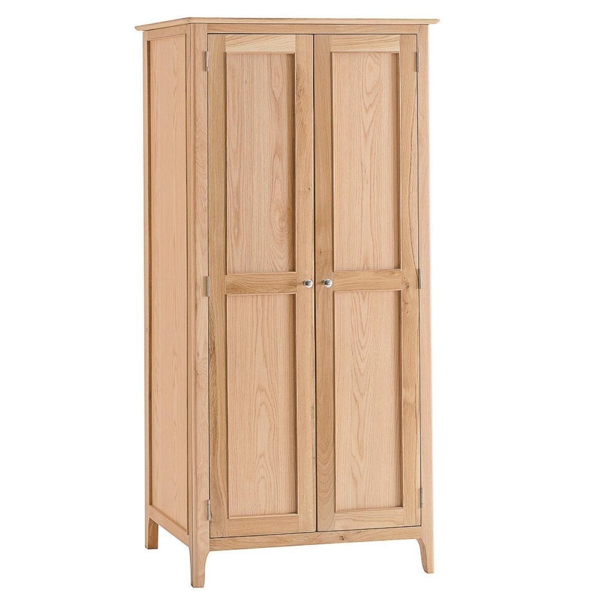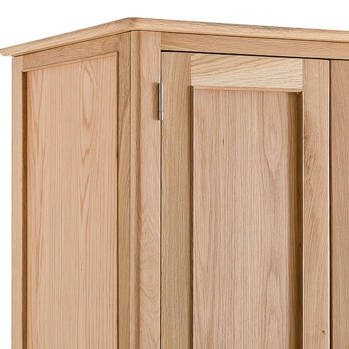 With its striking Scandinavian-inspired design, the Bergen oak double wardrobe makes a fitting centrepiece for your bedroom. There’s room for all your best glad rags to hang out with each other inside this spacious wardrobe. The handy lower shelf is perfect for storing shoes or a box of accessories. Supplied with both wooden and metal handles, you can adjust the details of this wardrobe to match the rest of your bedroom decor. Stood upon elegant, narrow legs, the neat wooden panelling of the double doors truly shine with their oak finish. Bring a touch of nature into your cosiest room.