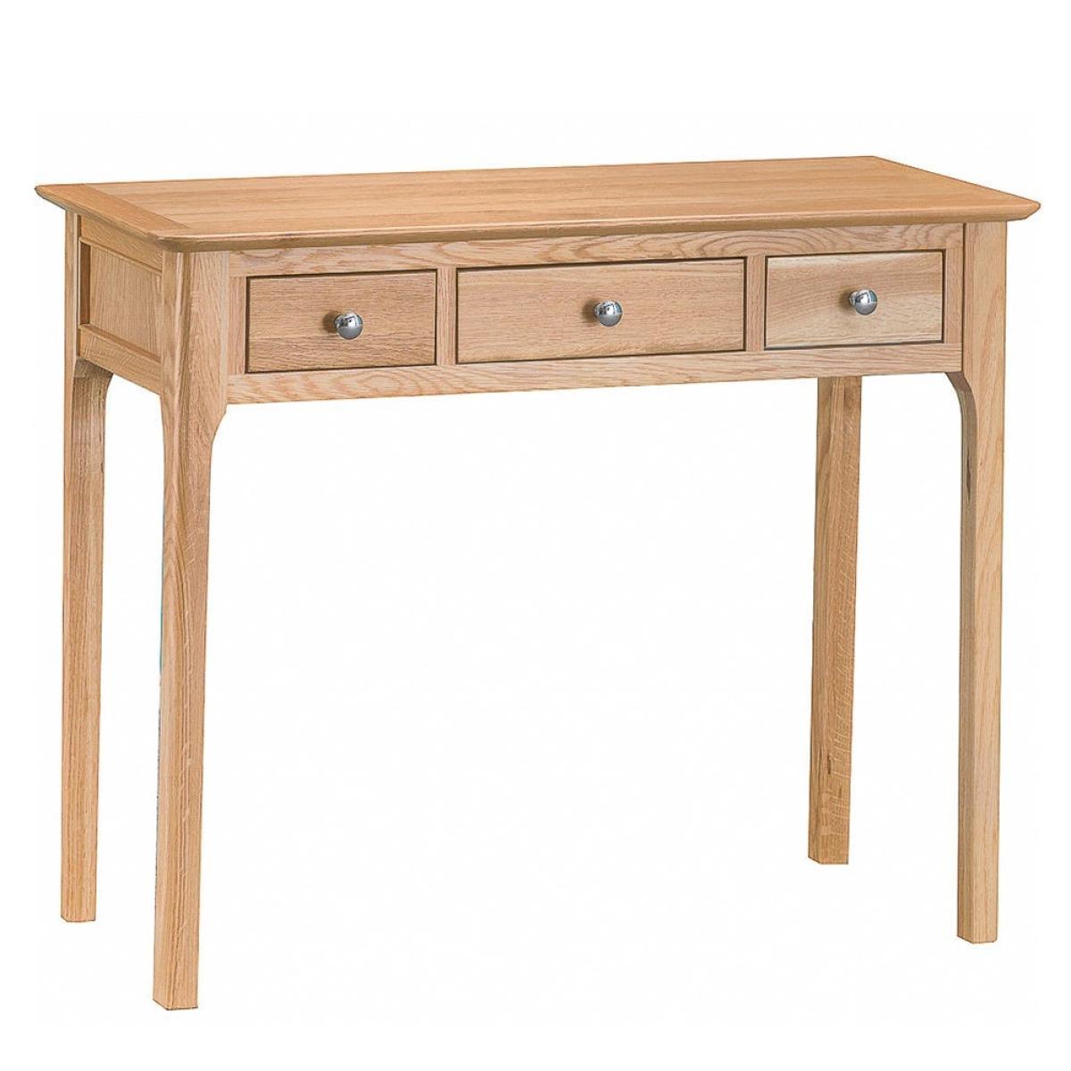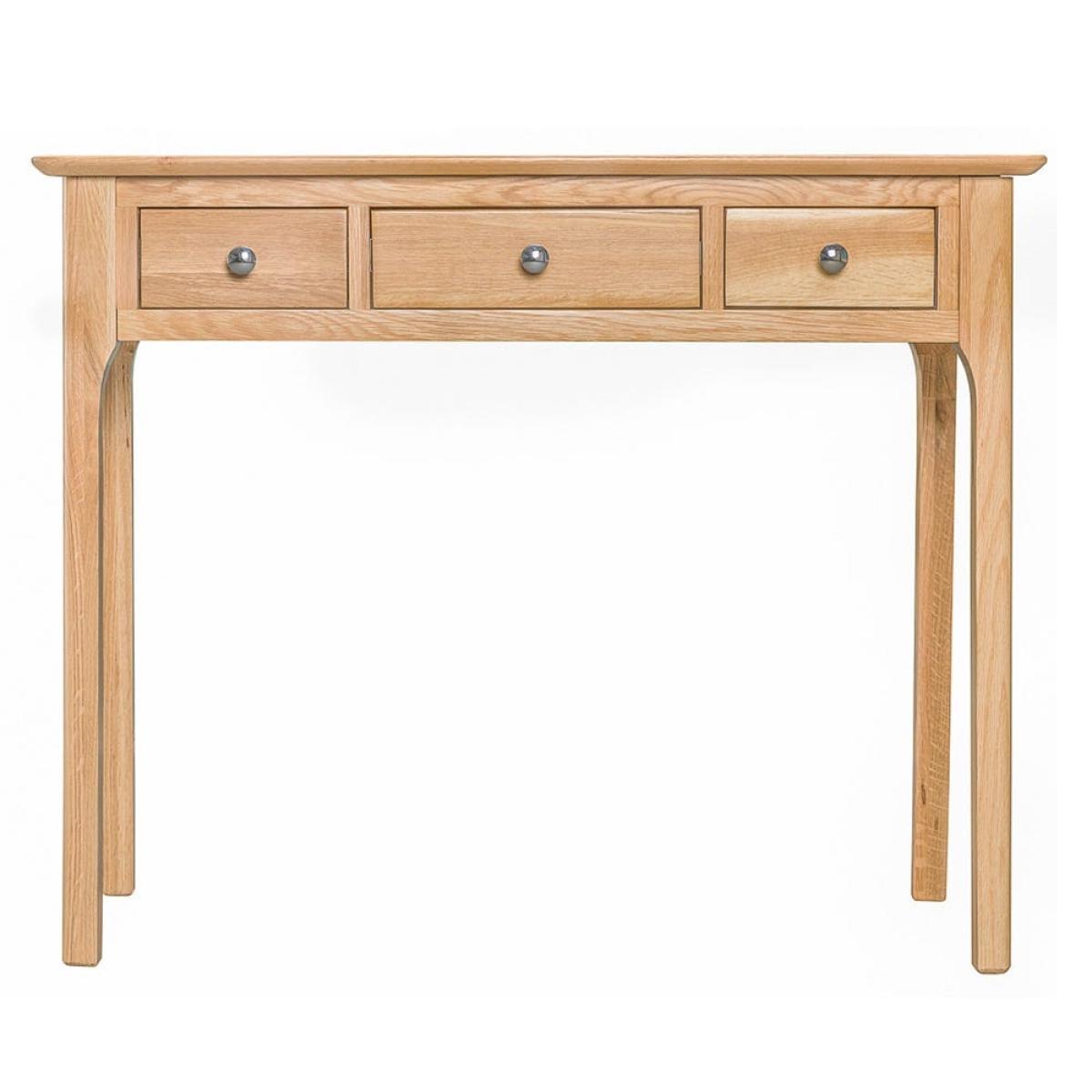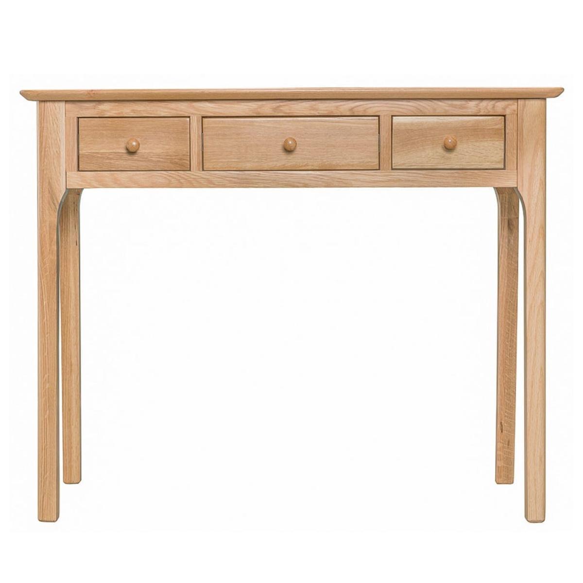 Getting spruced up for dinner – or simply getting ready for the day – will feel a whole lot classier when you add the Bergen oak dressing table to your bedroom decor. The 100cm-wide top surface has been polished to perfection. And the timeless oak finish will perfectly complement a vintage bedroom or more contemporary furnishings. The table’s slender legs and serene curves give the piece plenty of understated elegance. The trio of drawers are spacious enough for your everyday toiletries, and will help keep your dressing table neat and tidy.