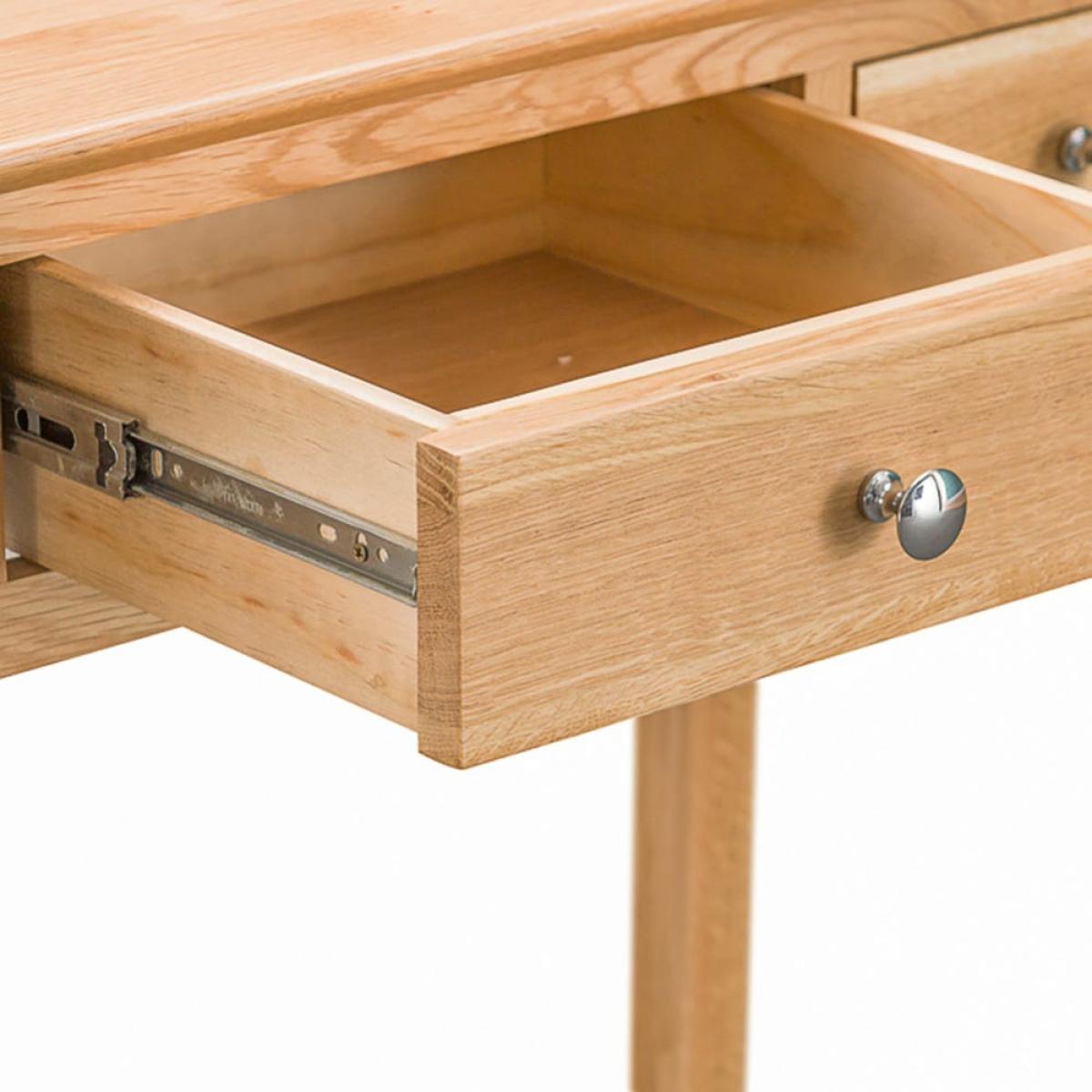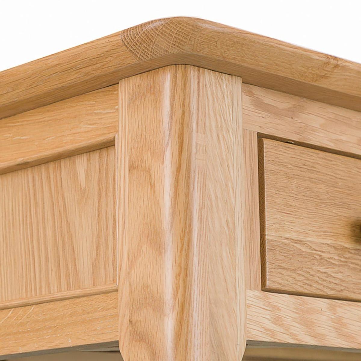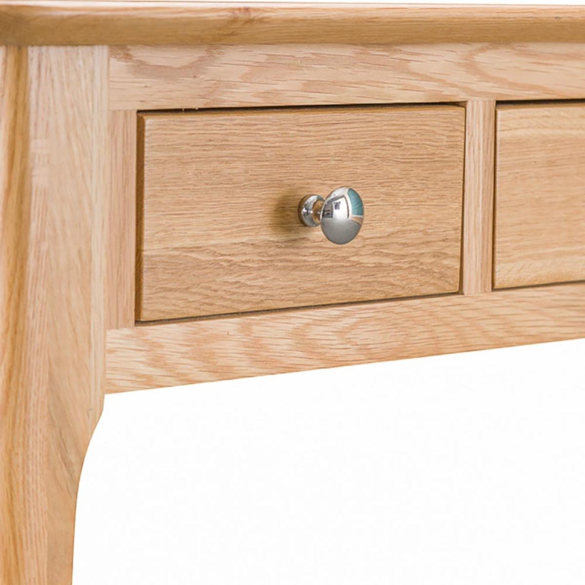 Getting spruced up for dinner – or simply getting ready for the day – will feel a whole lot classier when you add the Bergen oak dressing table to your bedroom decor. The 100cm-wide top surface has been polished to perfection. And the timeless oak finish will perfectly complement a vintage bedroom or more contemporary furnishings. The table’s slender legs and serene curves give the piece plenty of understated elegance. The trio of drawers are spacious enough for your everyday toiletries, and will help keep your dressing table neat and tidy.