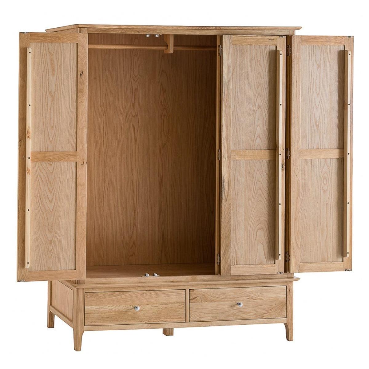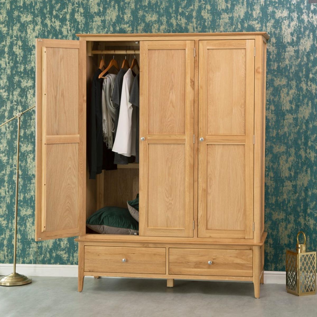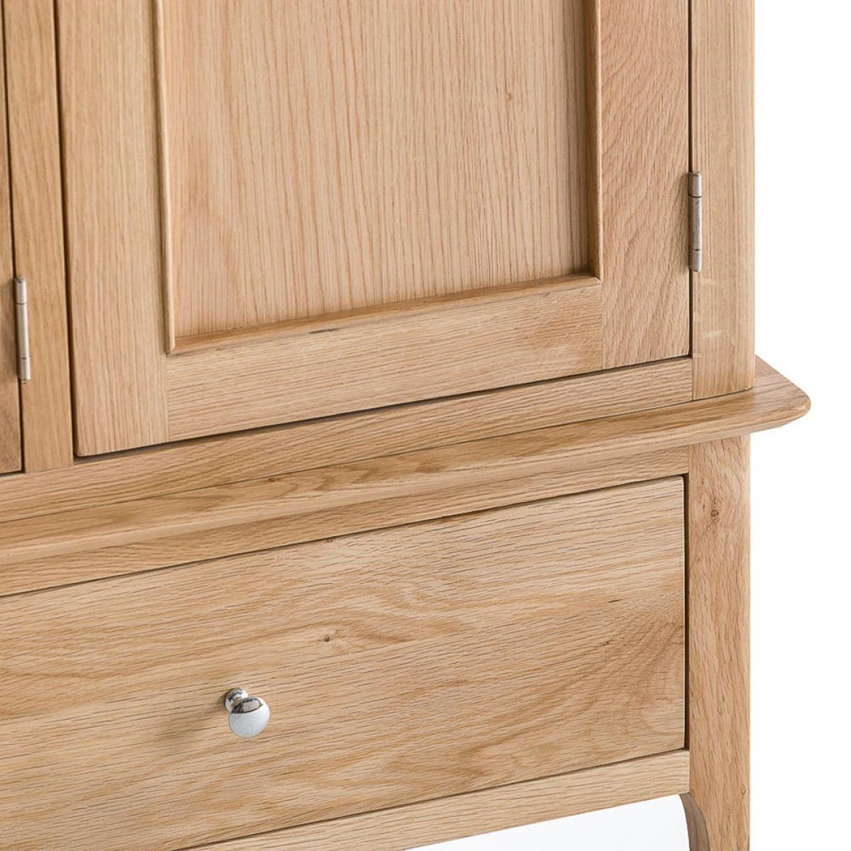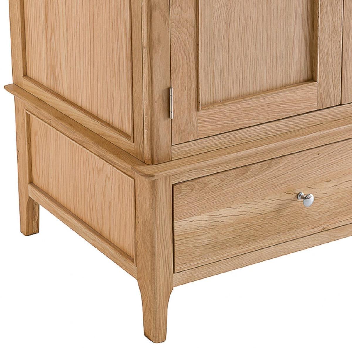 If you’re a fashion-lover and your drawers are overflowing with clothes, find a home for all of them inside the Bergen oak large three-door wardrobe. The word ‘spacious’ hardly does this 195cm-tall wardrobe justice. Behind its artfully panelled doors you’ll find all the clothes hanging space you’ve been dreaming of. The roomy double drawers are the perfect place for storing all the accessories to beautifully finish off your finest outfits. With its timeless Scandinavian-inspired aesthetic, this wardrobe makes a stylish addition to modern and contemporary interiors.