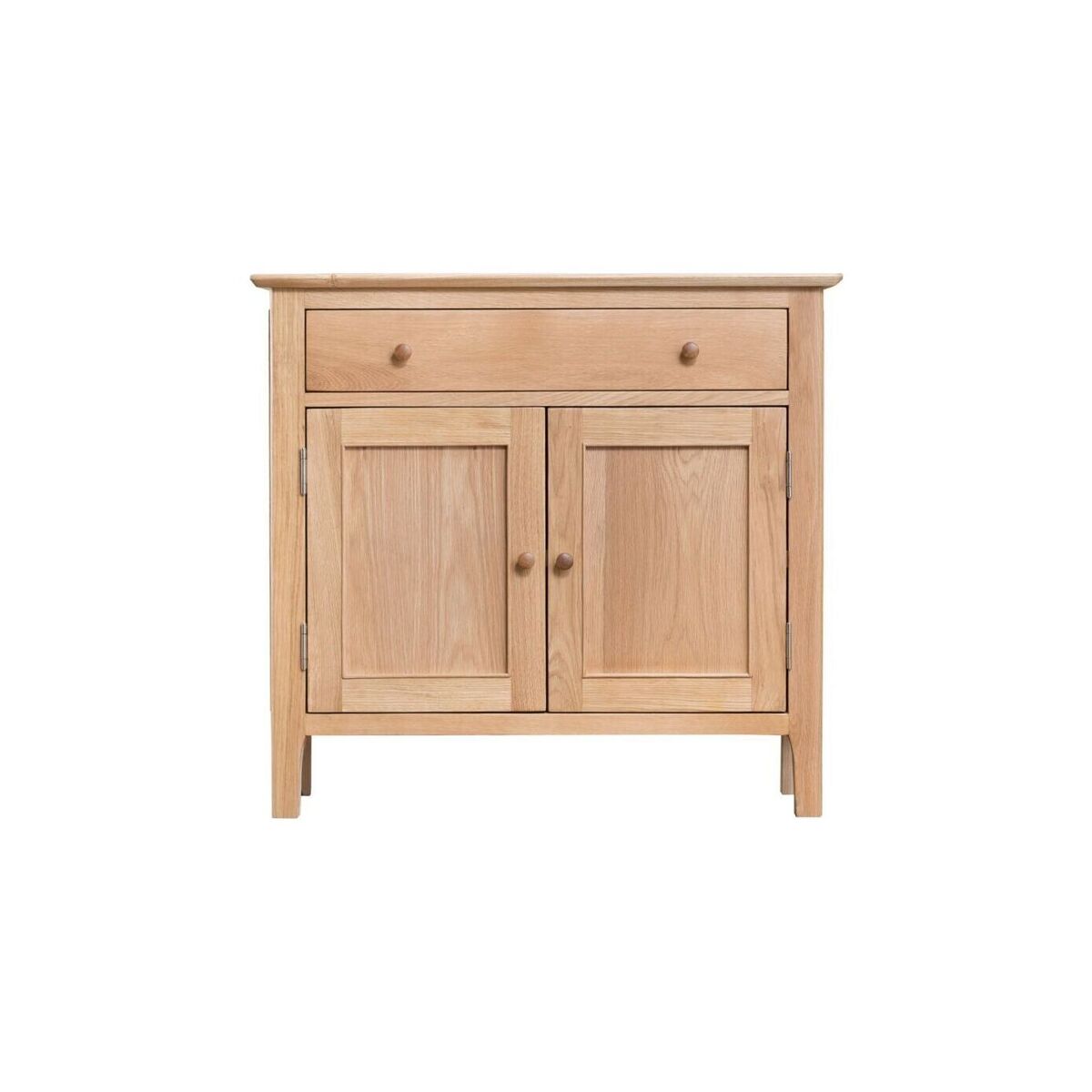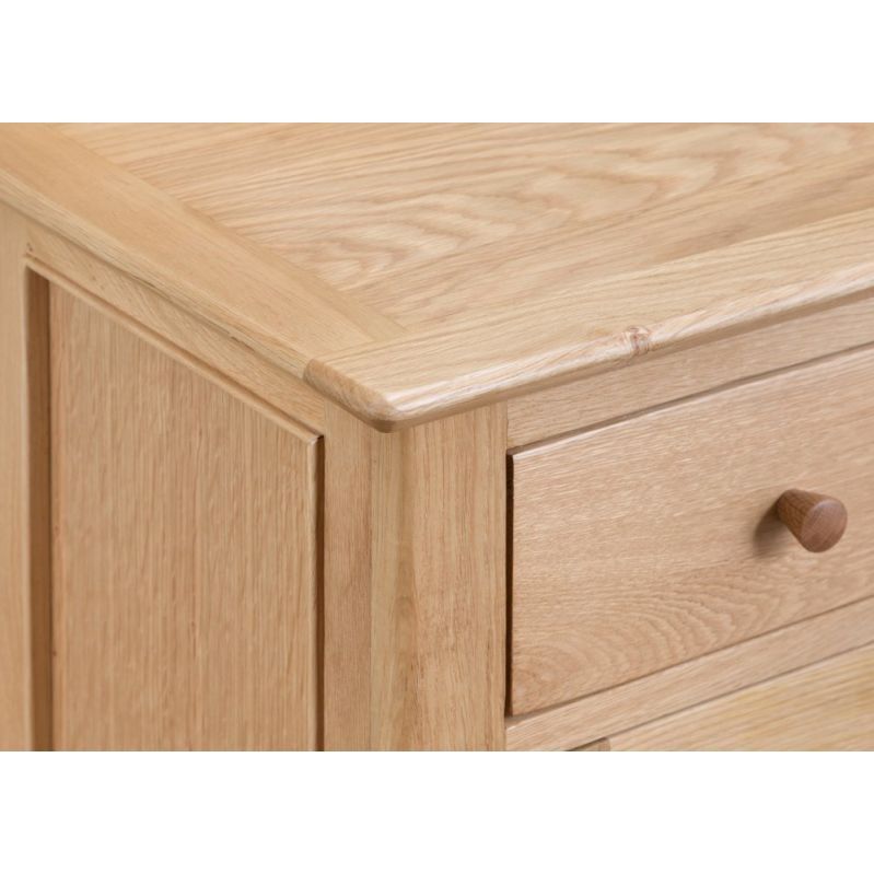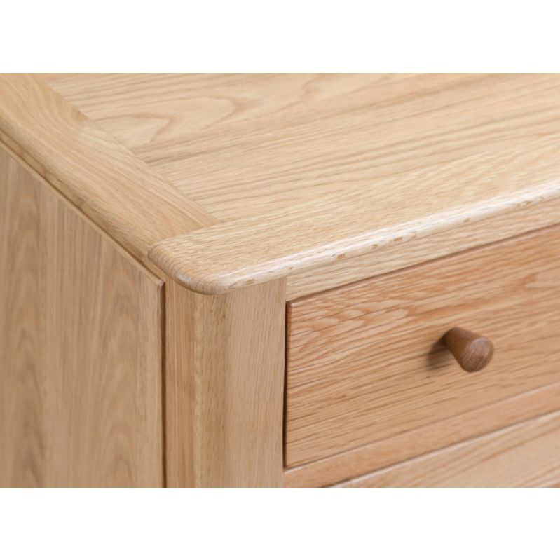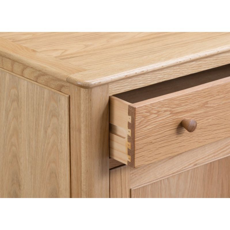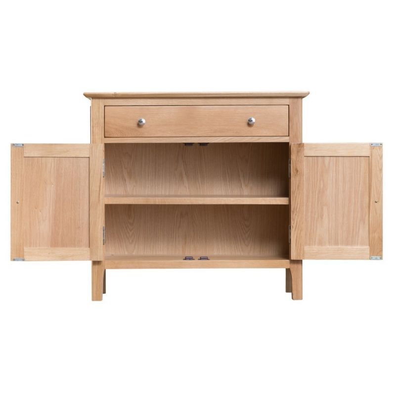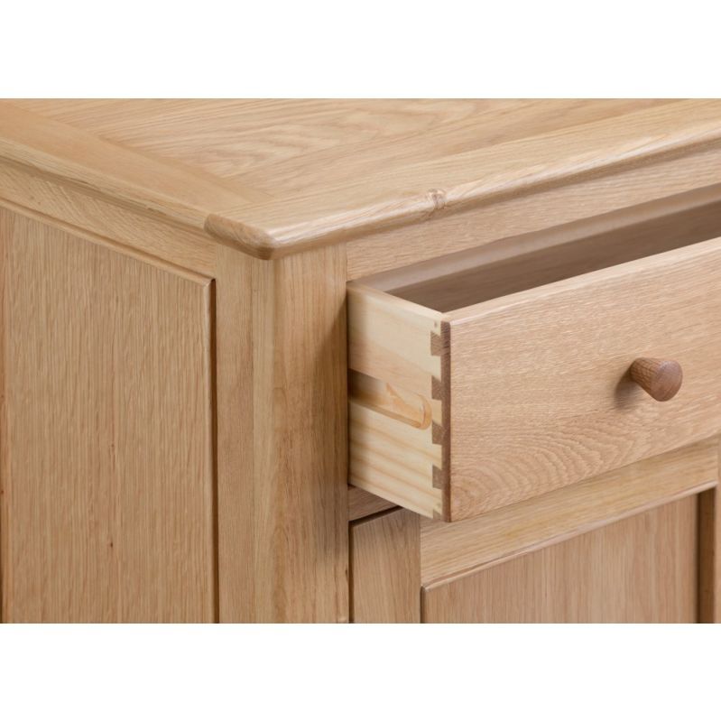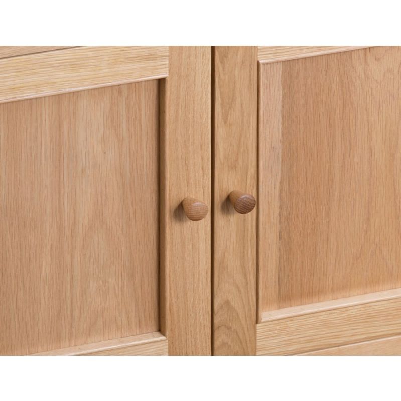 Who said storage solutions had to take up all your floorspace? Not us. That’s why we created the Bergen oak mini two-door sideboard. Don’t let the name fool you. This sleek 85cm-wide sideboard has spacious cupboards perfect for storing your best glasses. That way, they’ll be within easy reach when someone comes to visit for wine o’clock. The natural oak finish of this elegant sideboard has timeless charm. Arrange the smooth wooden top surface with a floral display or sweet-smelling scent diffuser to further add to the ambience of the room.