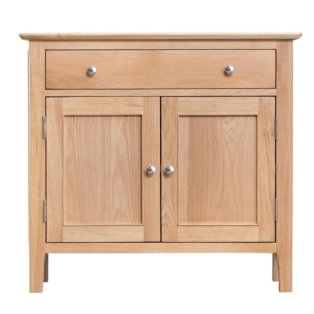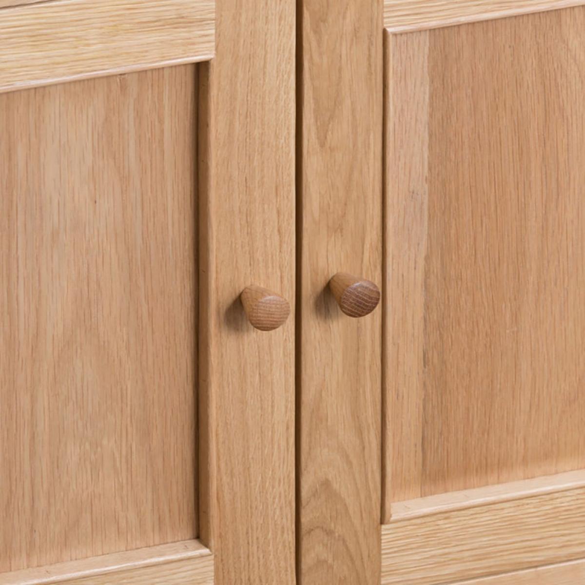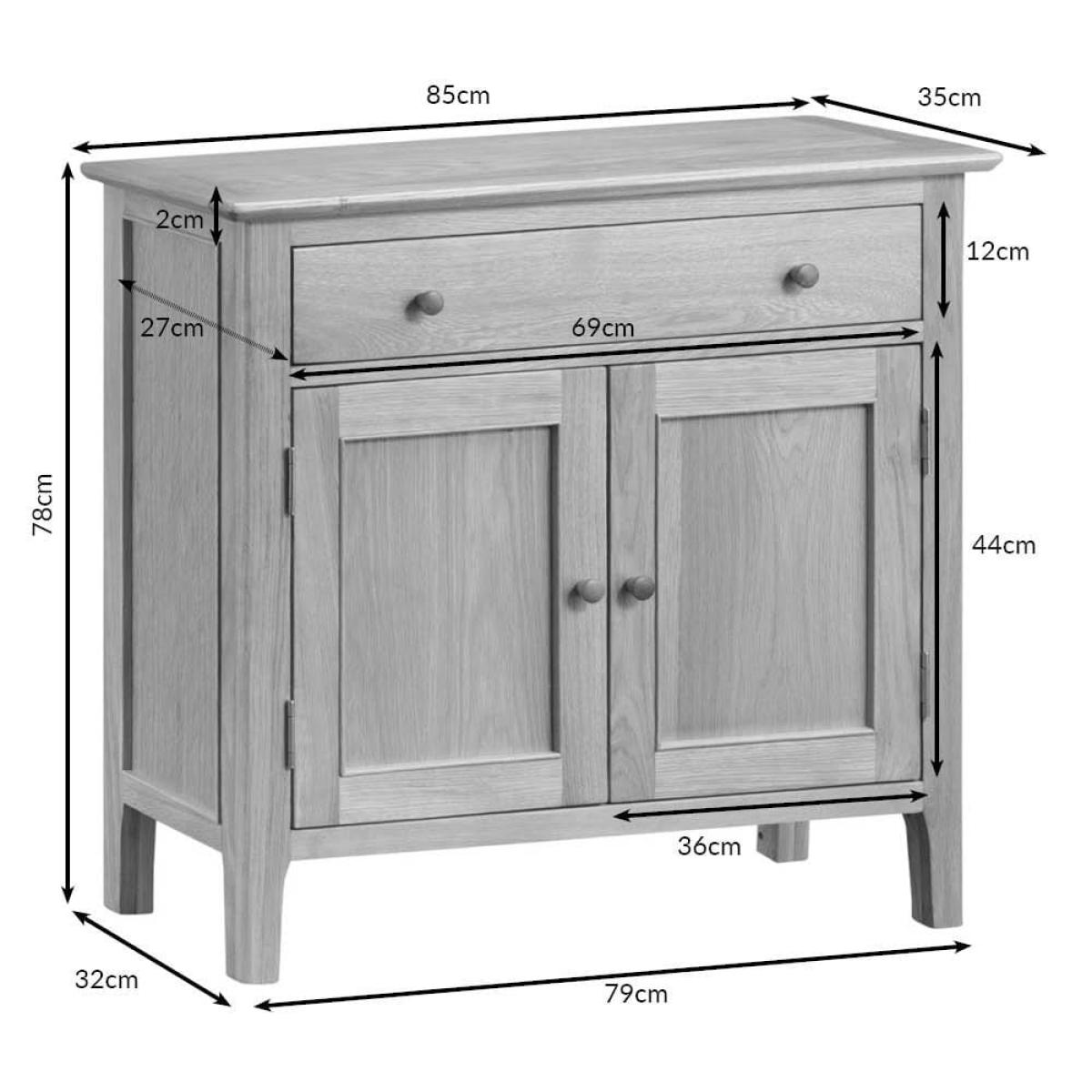 Who said storage solutions had to take up all your floorspace? Not us. That’s why we created the Bergen oak mini two-door sideboard. Don’t let the name fool you. This sleek 85cm-wide sideboard has spacious cupboards perfect for storing your best glasses. That way, they’ll be within easy reach when someone comes to visit for wine o’clock. The natural oak finish of this elegant sideboard has timeless charm. Arrange the smooth wooden top surface with a floral display or sweet-smelling scent diffuser to further add to the ambience of the room.