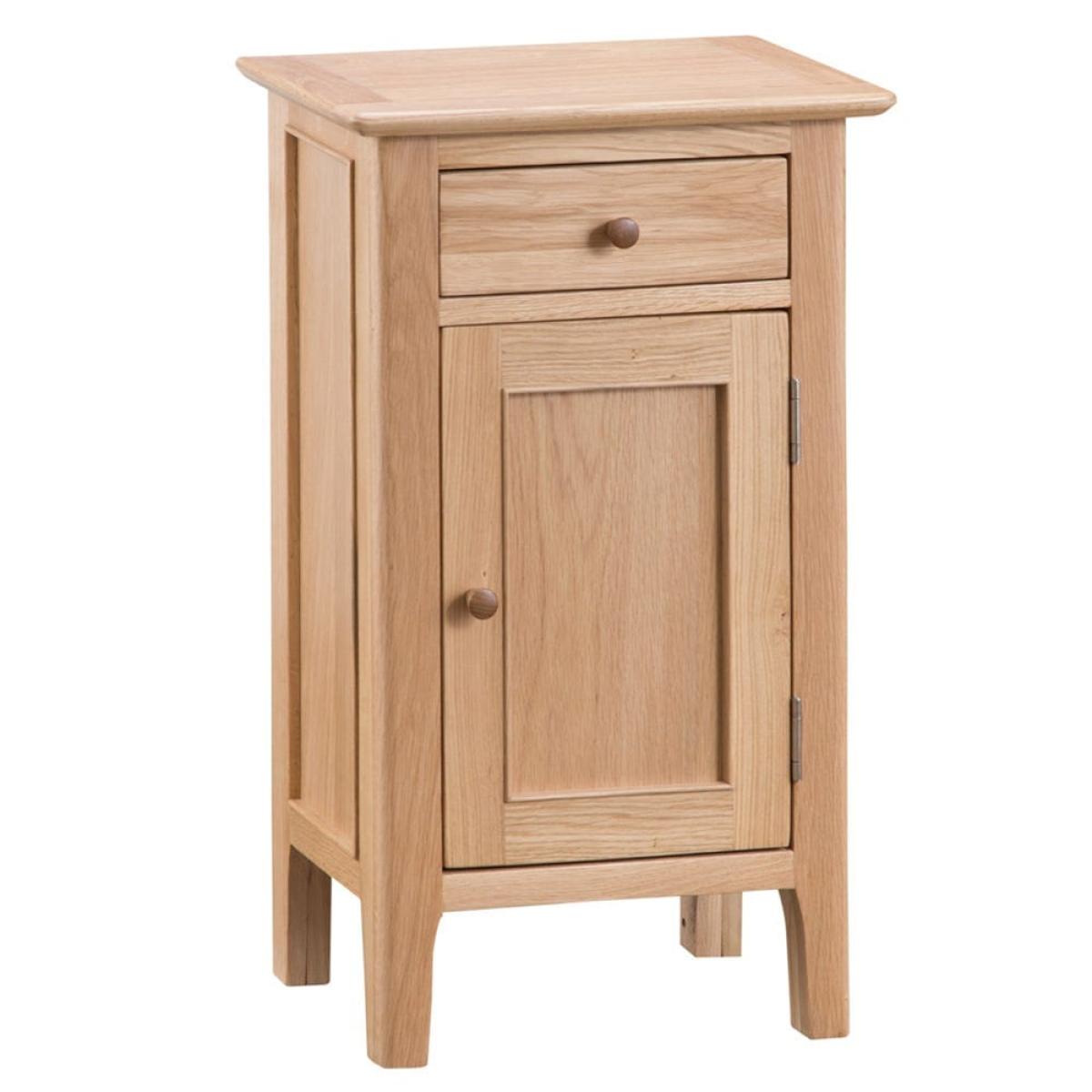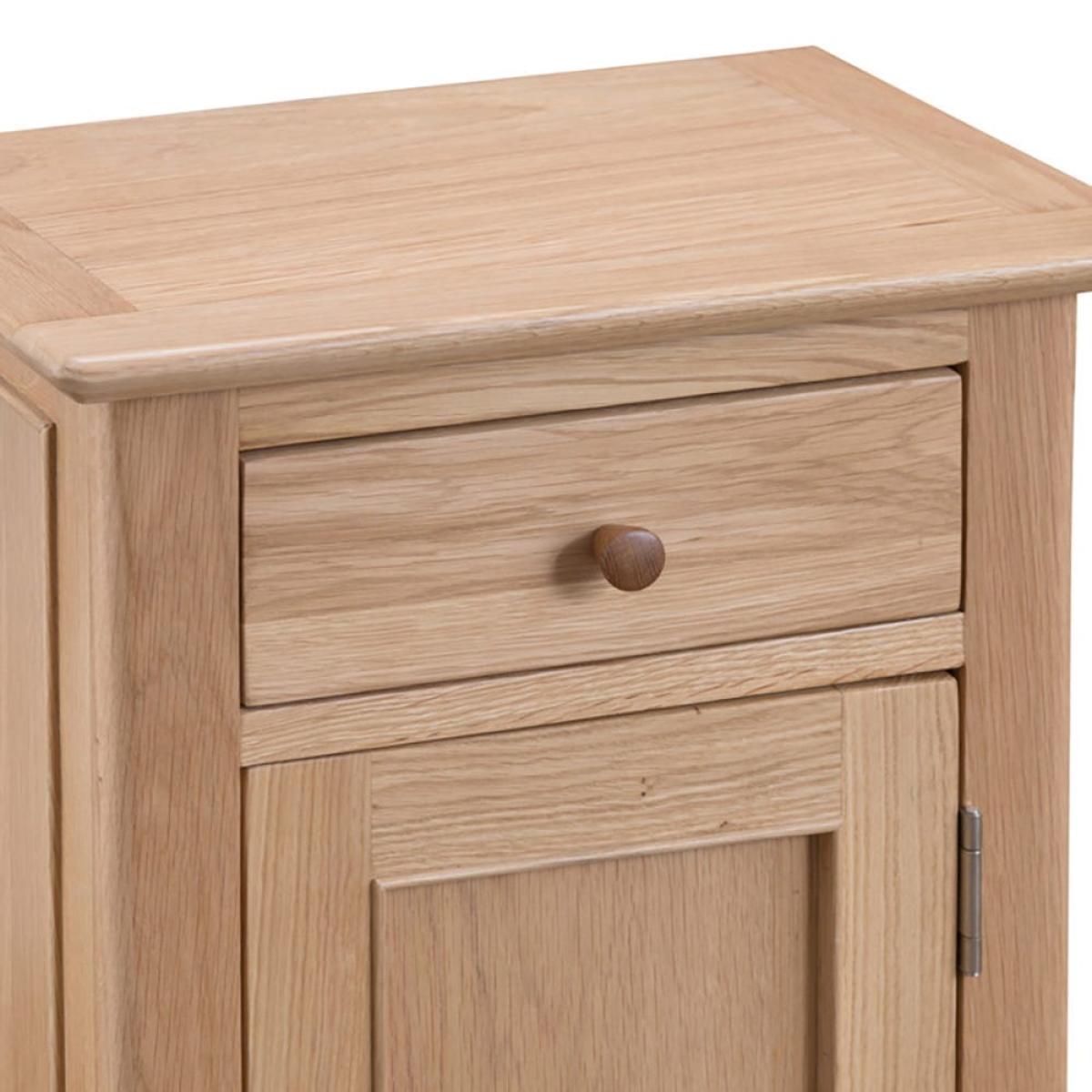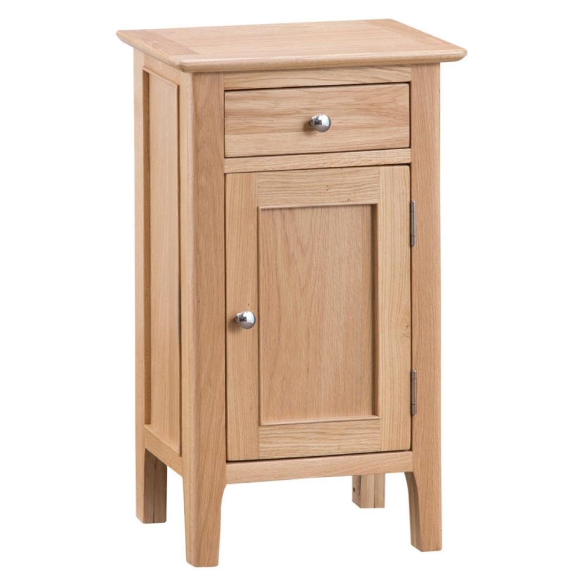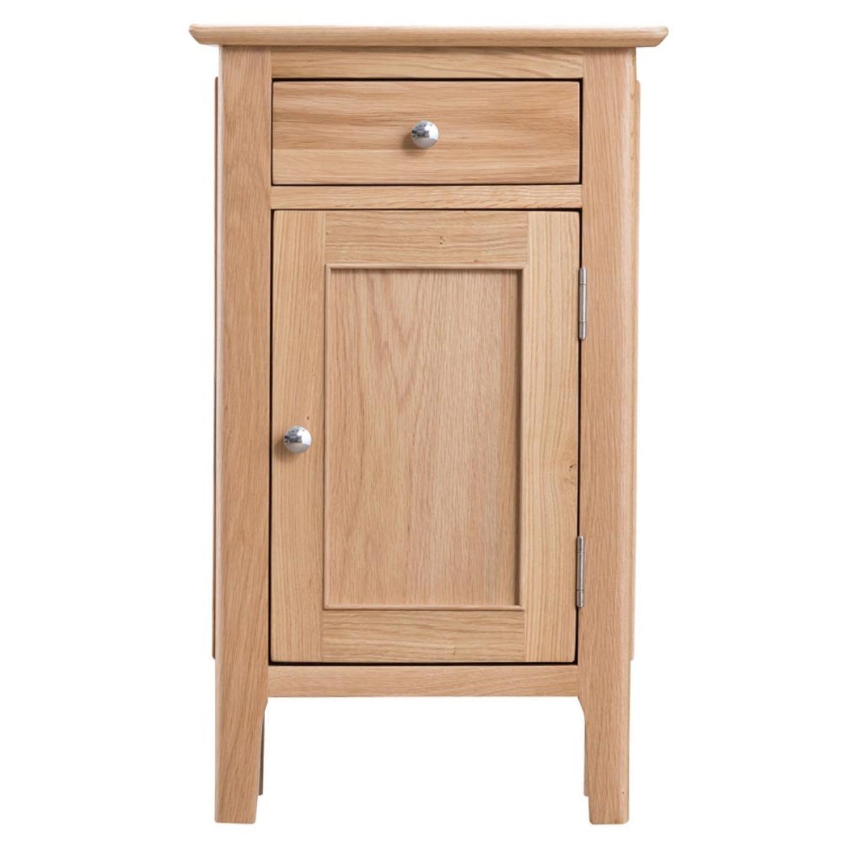 Suave, practical and oh-so cute, the Bergen oak small cupboard makes for a compact yet striking storage solution. Placed at the side of any room, the charming oak finish of this cupboard gleams where the light catches it and adds a natural ambience to your interior. Its stunning yet neutral colour means it’ll fit in with a range of styles, from brightly patterned wallpaper to plain walls painted in soft shades. Keep your keys hidden but handy in the gorgeously dovetailed drawer and stack the shelved cupboard with any other useful bits and bobs.