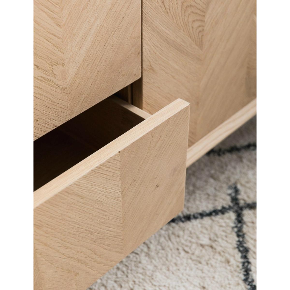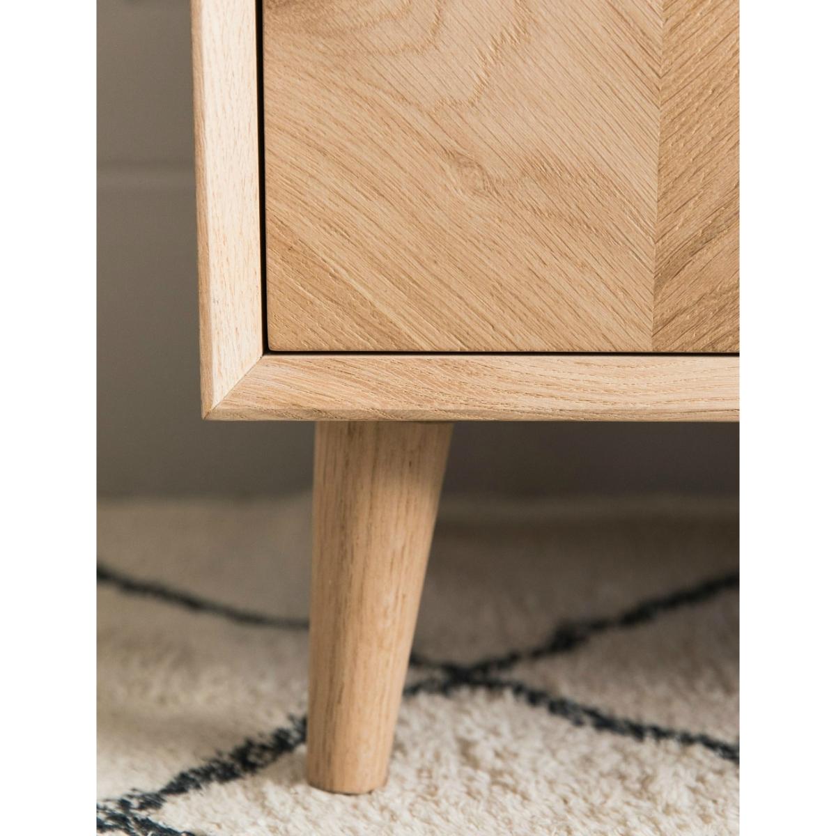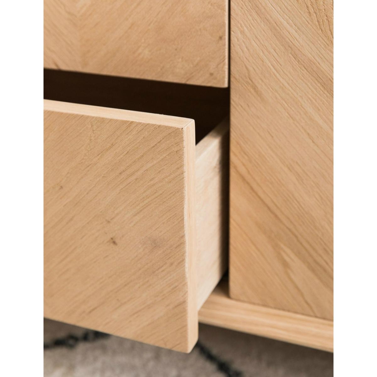 This beautifully crafted oak sideboard would make a stylish addition to any home. The sideboard features three drawers and two doors each revealing two shelves, with push-to-open mechanisms. The rest of our Bergen oak furniture collection can be styled with this sideboard. Some self assembly required.