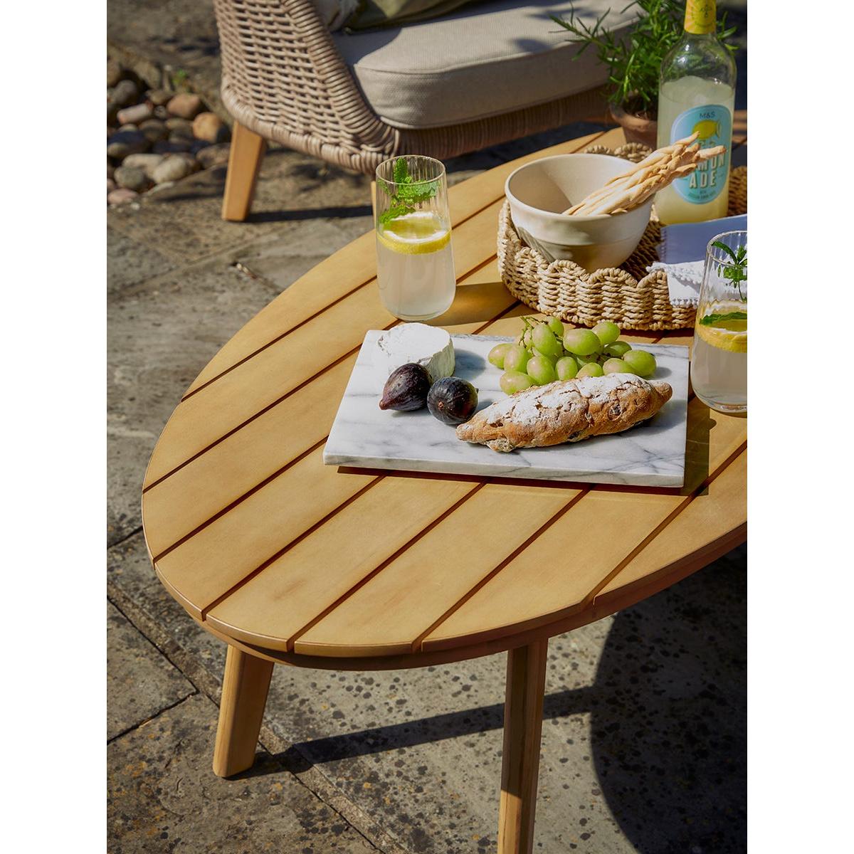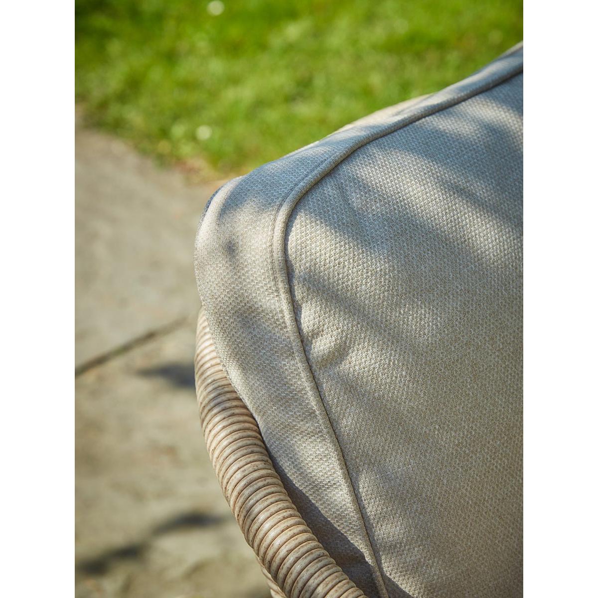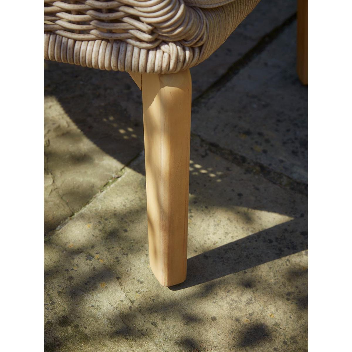 Elegant and graceful, our Bergerac Lounge Set has soft and curvaceous edges, welcoming you into soaking up the summer sun. Featuring two armchairs and a sofa, the frame of these match the acacia wood of the rounded table, for a unified and warm look. A delicately woven wicker frame in a darker beige tone creates the curved arms and back of the seating, whilst the plump cushions in a lighter tone contrast this, bringing a wonderful lightness to this furniture set. Browse our useful Outdoor Furniture Buying Guide.