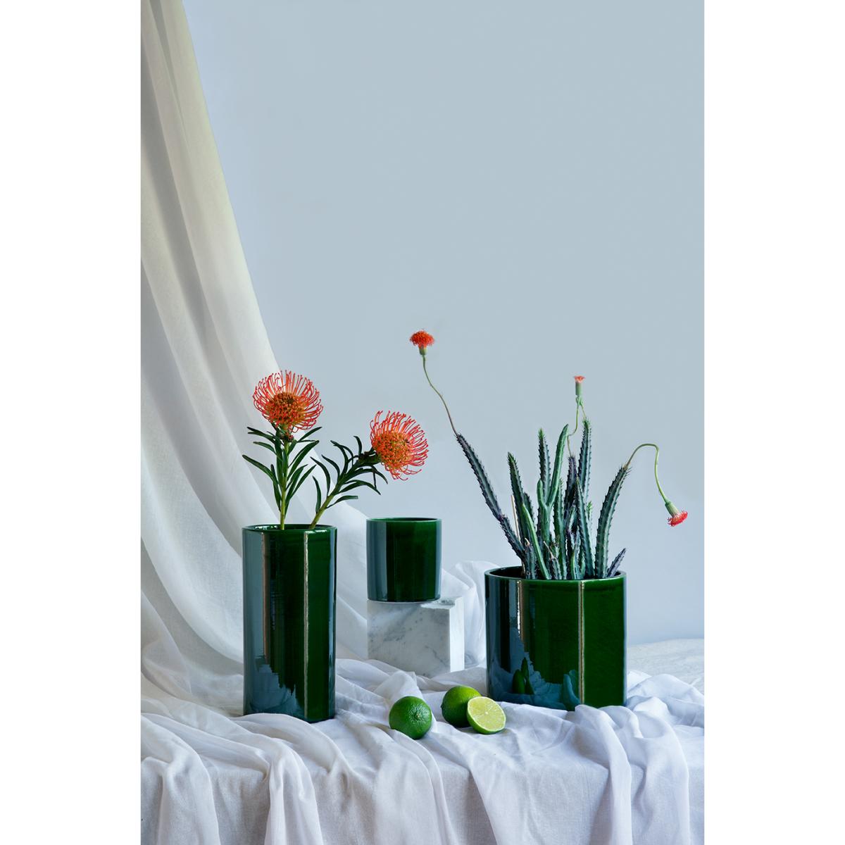 I love this green glazed vase because it adds a fresh, contemporary touch to any interior. Its clean, cylindrical shape makes it versatile and perfect for minimalist schemes, while the vibrant green glaze provides a bold pop of colour that works well alongside natural materials like wood, rattan, or linen. The size is ideal for small to medium floral arrangements or even as a standalone decorative piece on a side table or shelf. Practical styling tips include pairing it with neutral tones to make the green really stand out, or clustering it with other vases in different shapes and heights for a dynamic display. It’s equally suited to modern city apartments or boho-inspired spaces, offering both colour and texture.