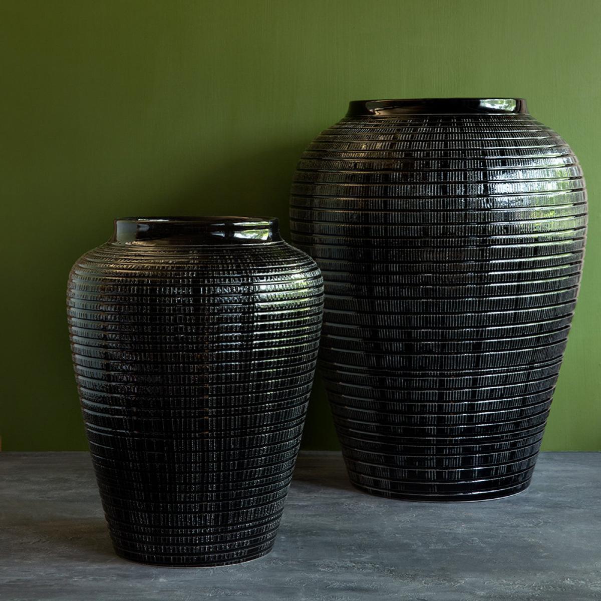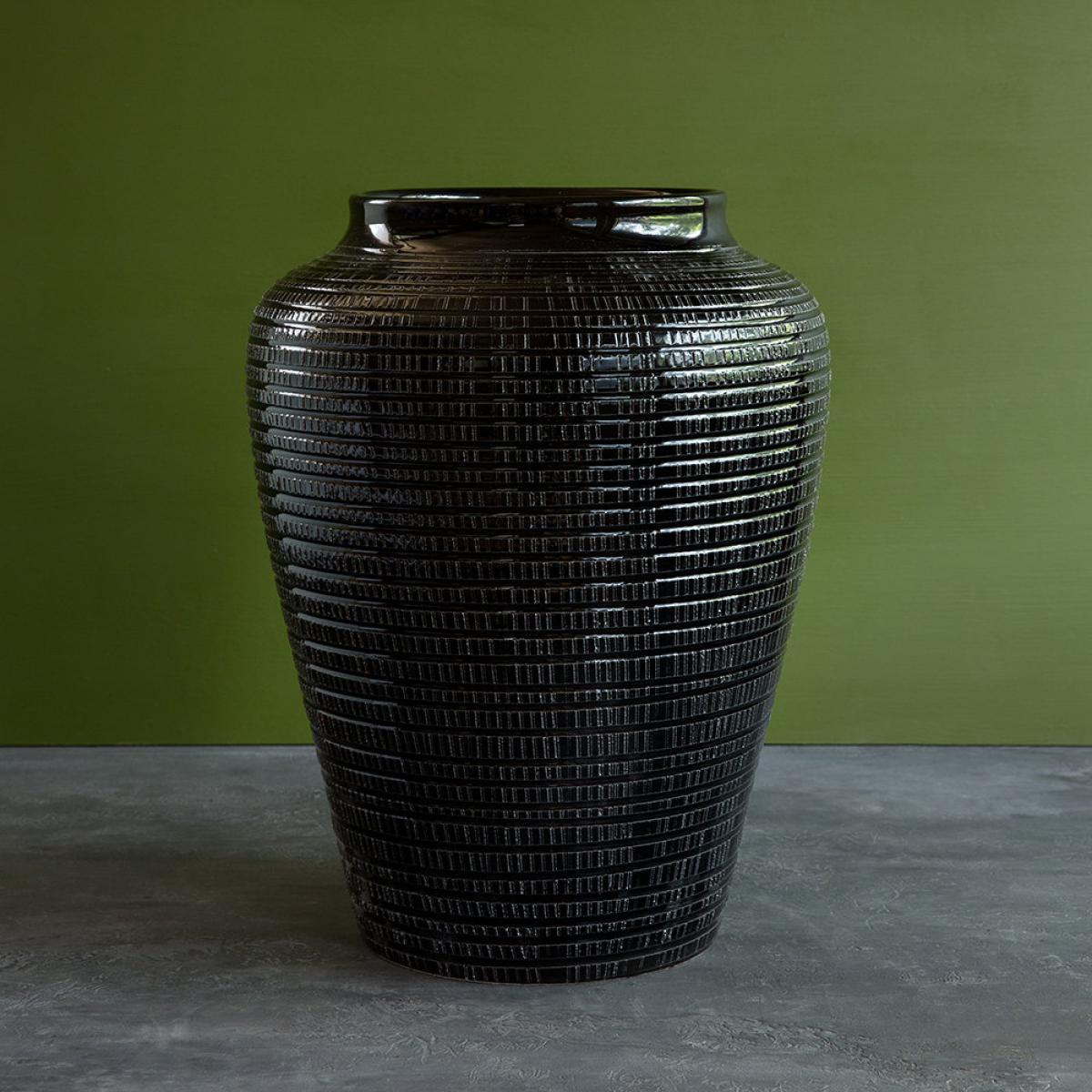 Make an impression with the Willlow vase from Bergs Potter. Saturated with intense black colour, it has been individually glazed by hand and features a woven pattern reminiscent of ancient wickerwork.