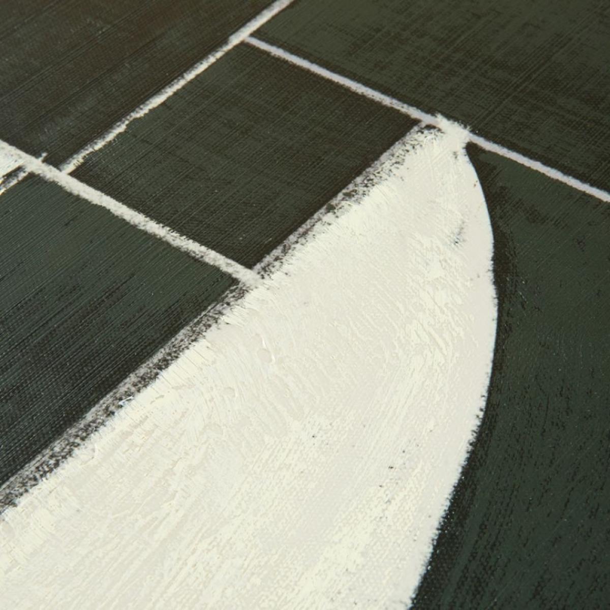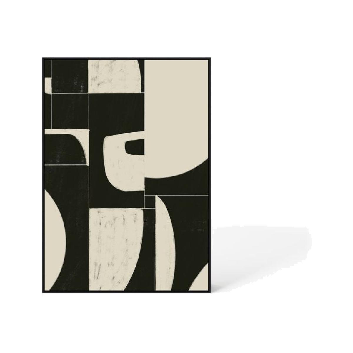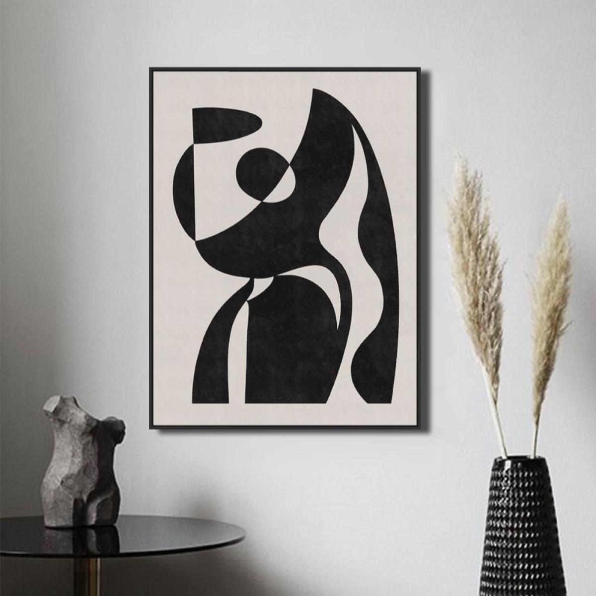 I love this abstract piece for its bold, graphic qualities and timeless monochrome palette. It works particularly well in contemporary or minimalist interiors where it can serve as a focal point without overwhelming the space. To style it successfully, consider pairing it with sleek furniture and clean lines to highlight its modern vibe. Practical tips include placing it against a neutral wall to let the artwork stand out or layering it with textured fabrics and metallic accents for added depth. This piece is versatile enough to work in living rooms, home offices, or even bedrooms, making it a smart choice for adding visual interest without complicating the decor.