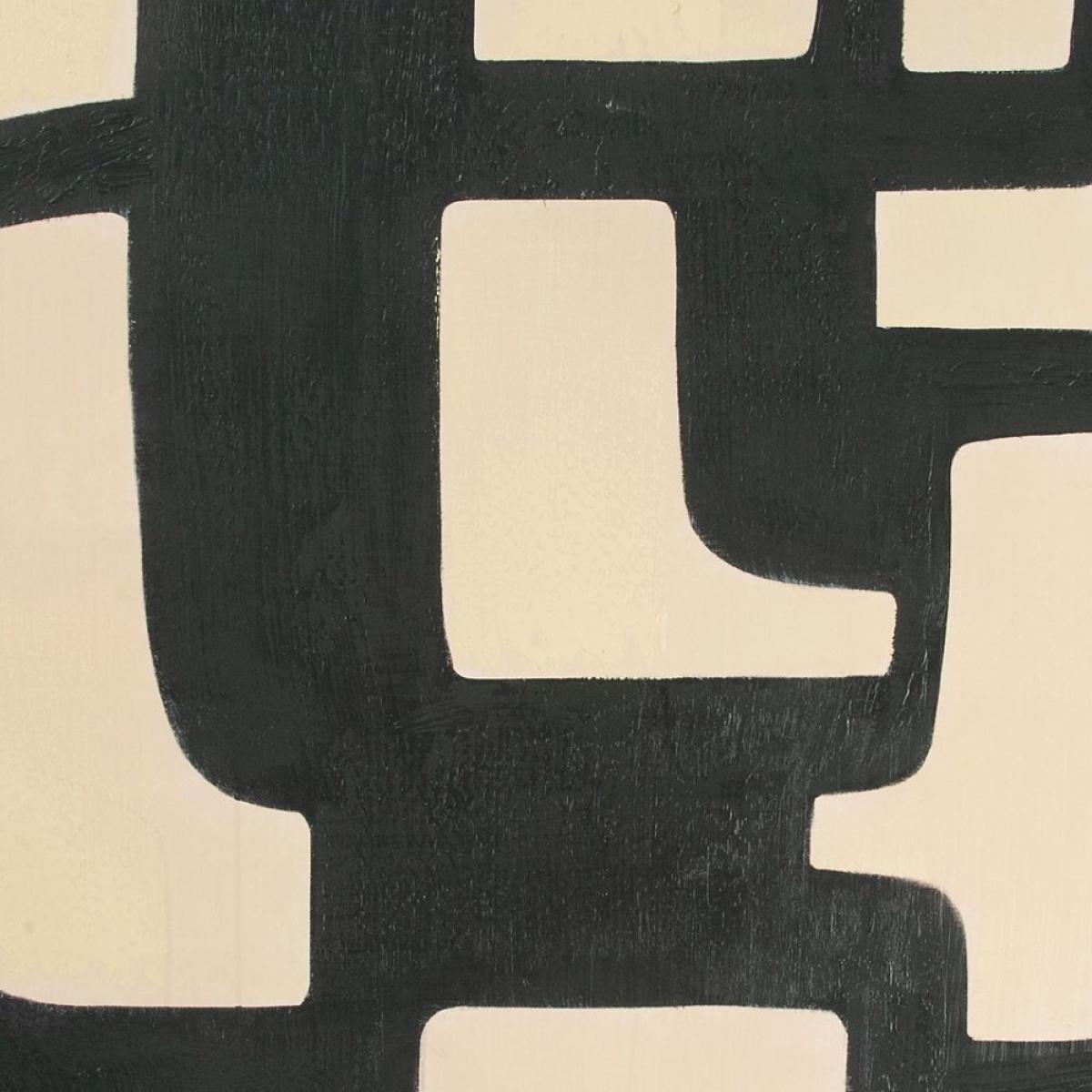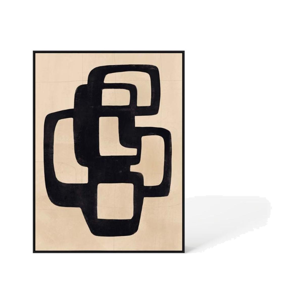 I really like this abstract piece; its bold, graphic lines provide a striking focal point for a room. It works particularly well in modern or minimalist interiors where clean lines and neutral palettes are key, adding a layer of visual interest without clutter. For styling, consider pairing it with simple, monochrome furnishings to let the artwork stand out, or use it as a contrast against textured or patterned backgrounds for added depth. Its versatile black and beige tones make it easy to incorporate into various colour schemes, and it’s perfect for living rooms, offices, or hallways where you want to make an impactful, yet sophisticated statement.