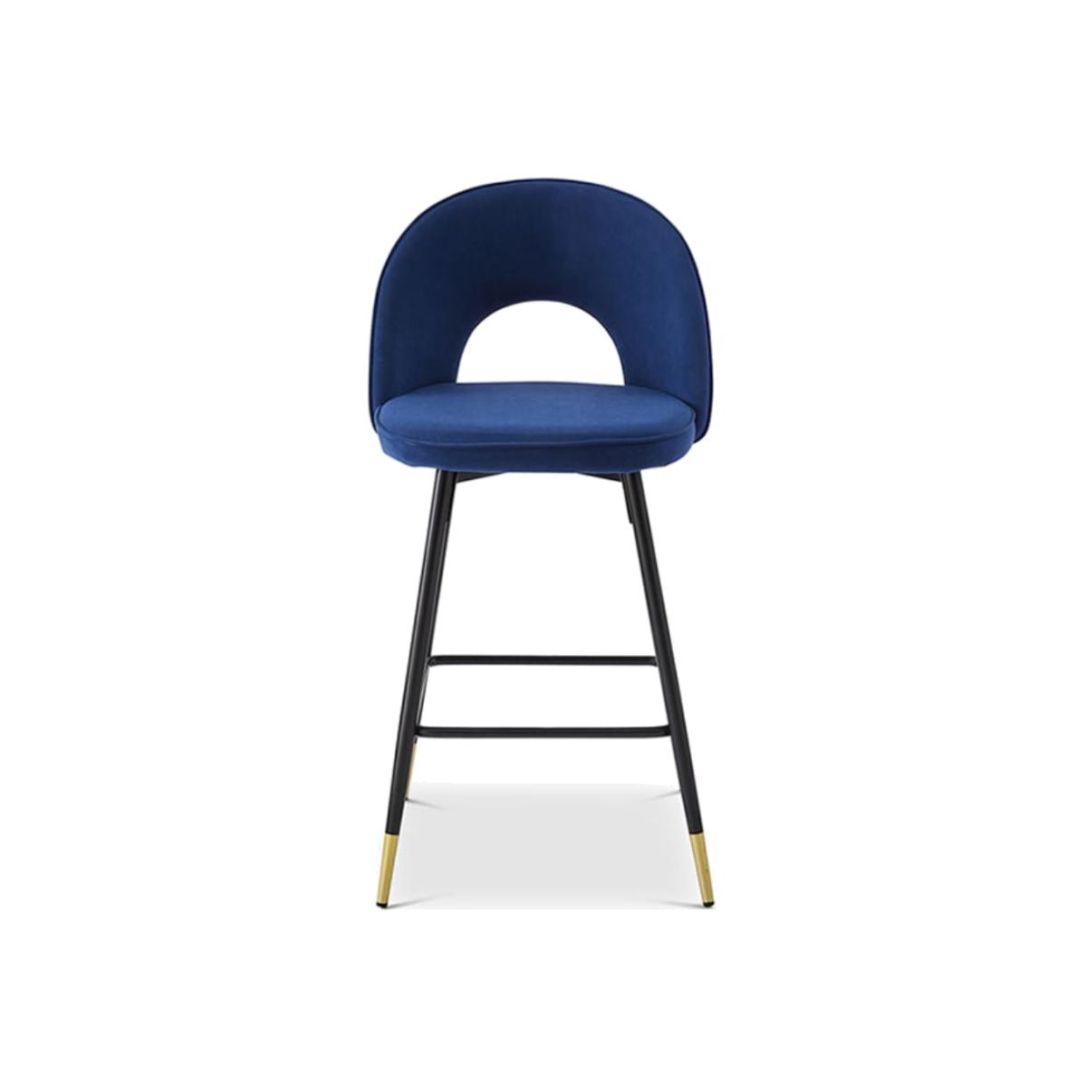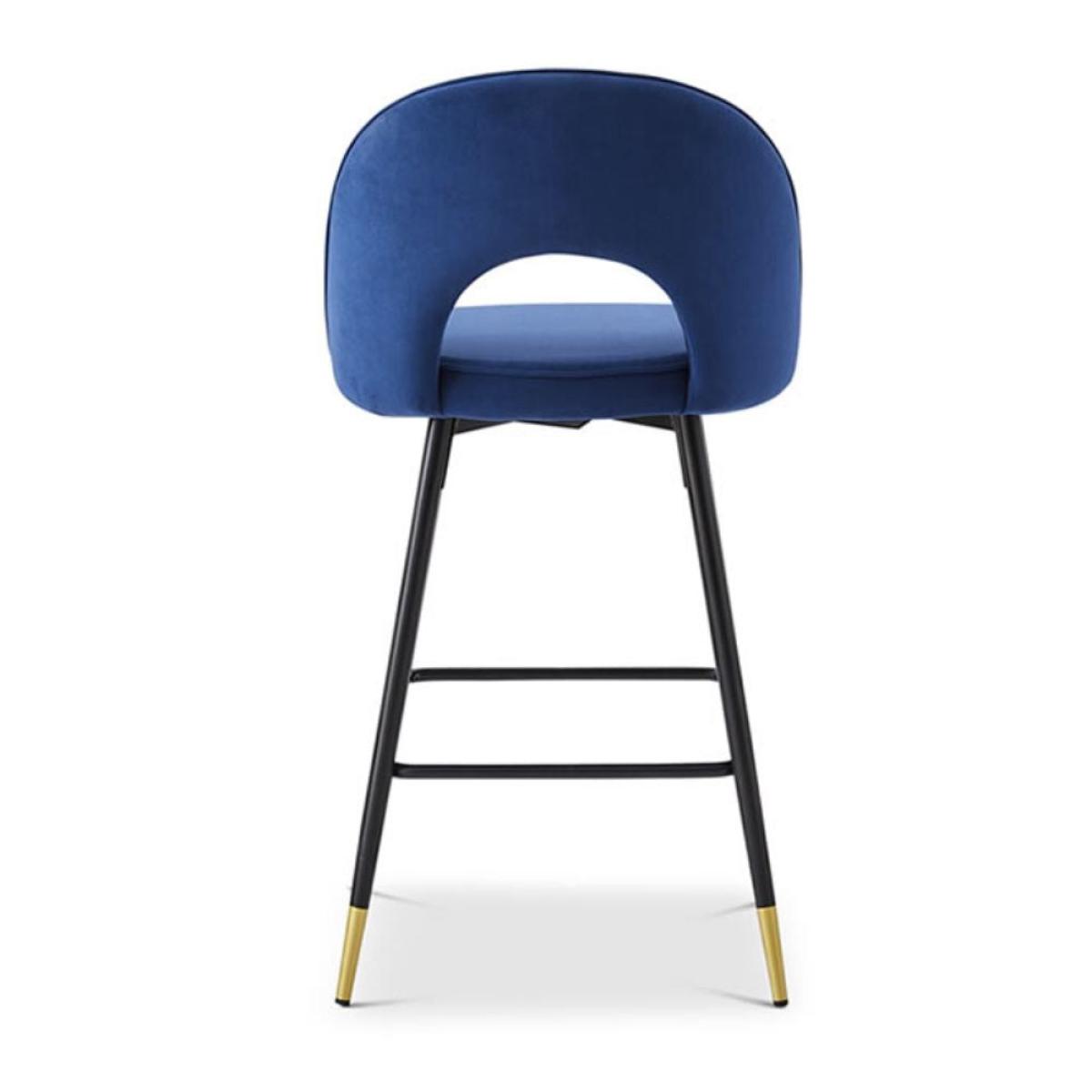 The Hoxton Bar Stool comes upholstered in a blue matte velvet fabric and is finished with black legs with gold cups. The Hoxton Bar Stool can help you to achieve the perfect finish in any home or interior design project.