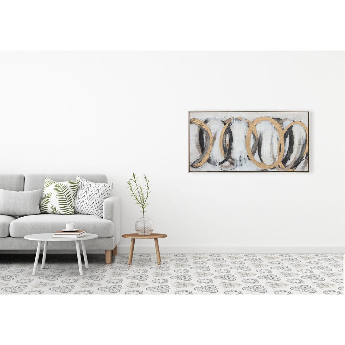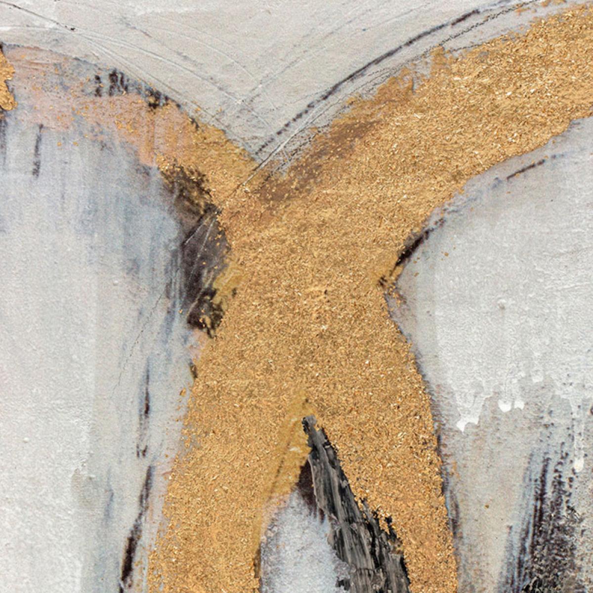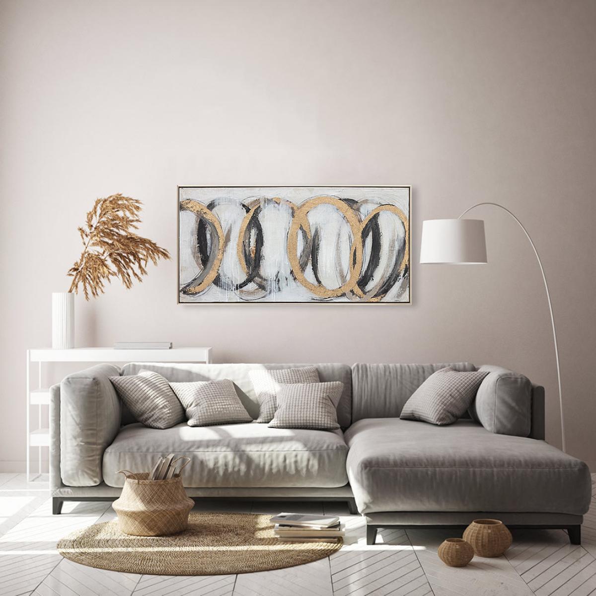 Add immediate impact with this large black and golden abstract painting. This framed oil painting on canvas is striking both in terms of its ring patterning and bold colours and the texture created. View More. Add immediate impact with this large black and golden abstract painting. This framed oil painting on canvas is striking both in terms of its ring patterning and bold colours and the texture created by its palette knife strokes. This is the perfect addition to luxe designs or modern interiors where added interest is required. This number 18 wall art from Berkeley Designs has the appeal of modern art whilst still having a discernible design that should appeal to fans of more traditional pieces. It is perfect for anywhere from luxurious lounges and decadent dining spaces to large bedrooms, hallways and office spaces.