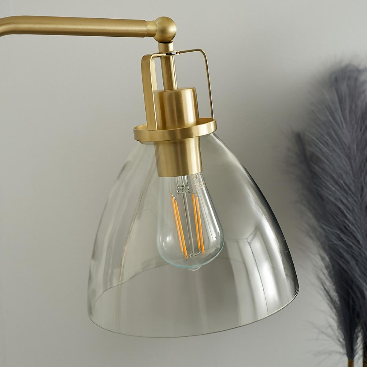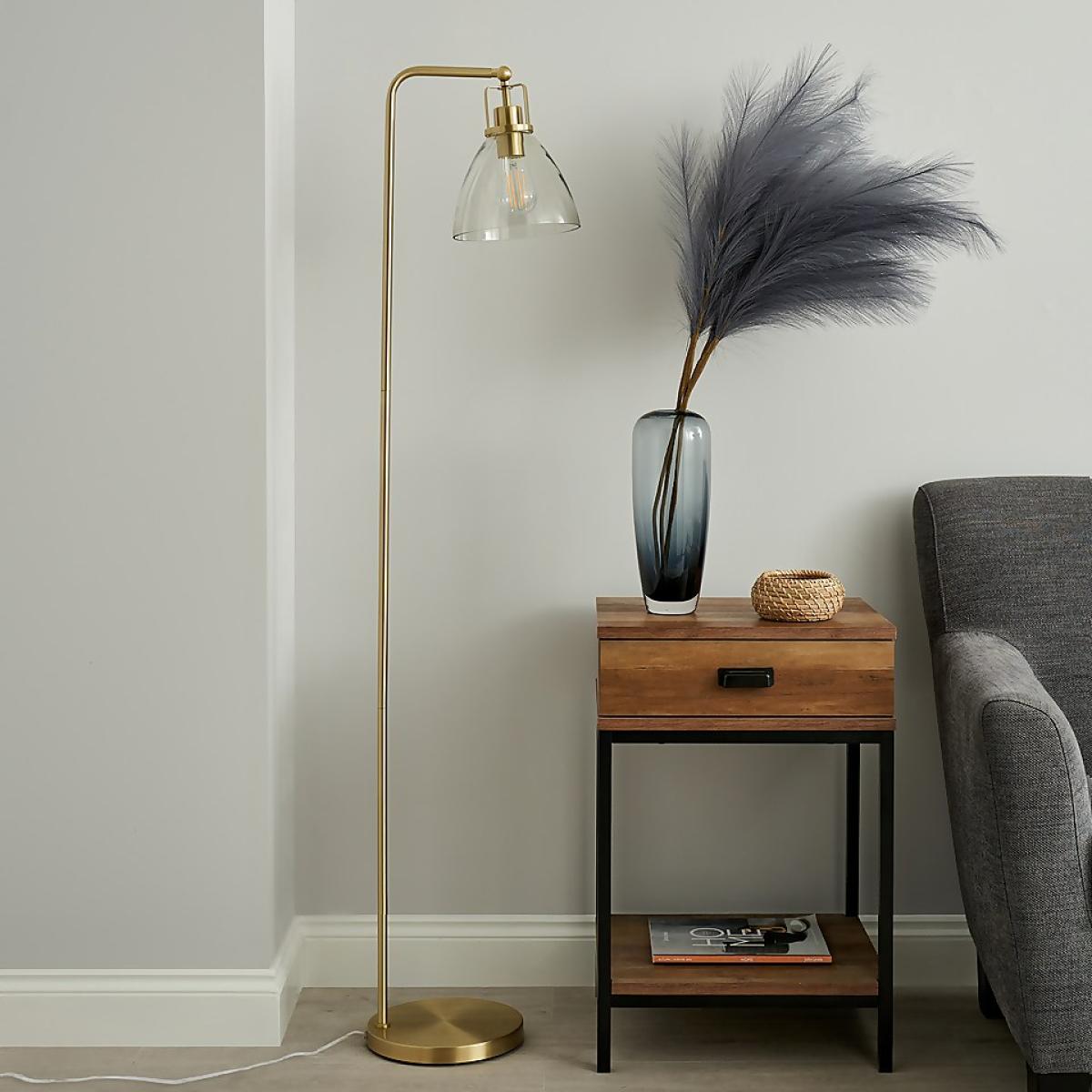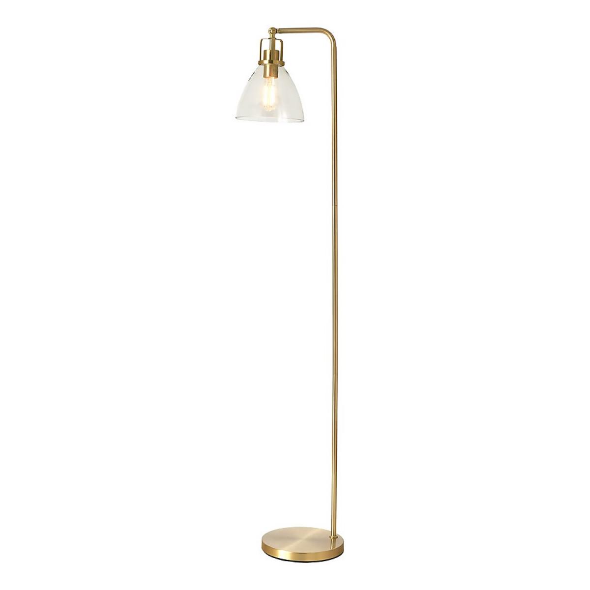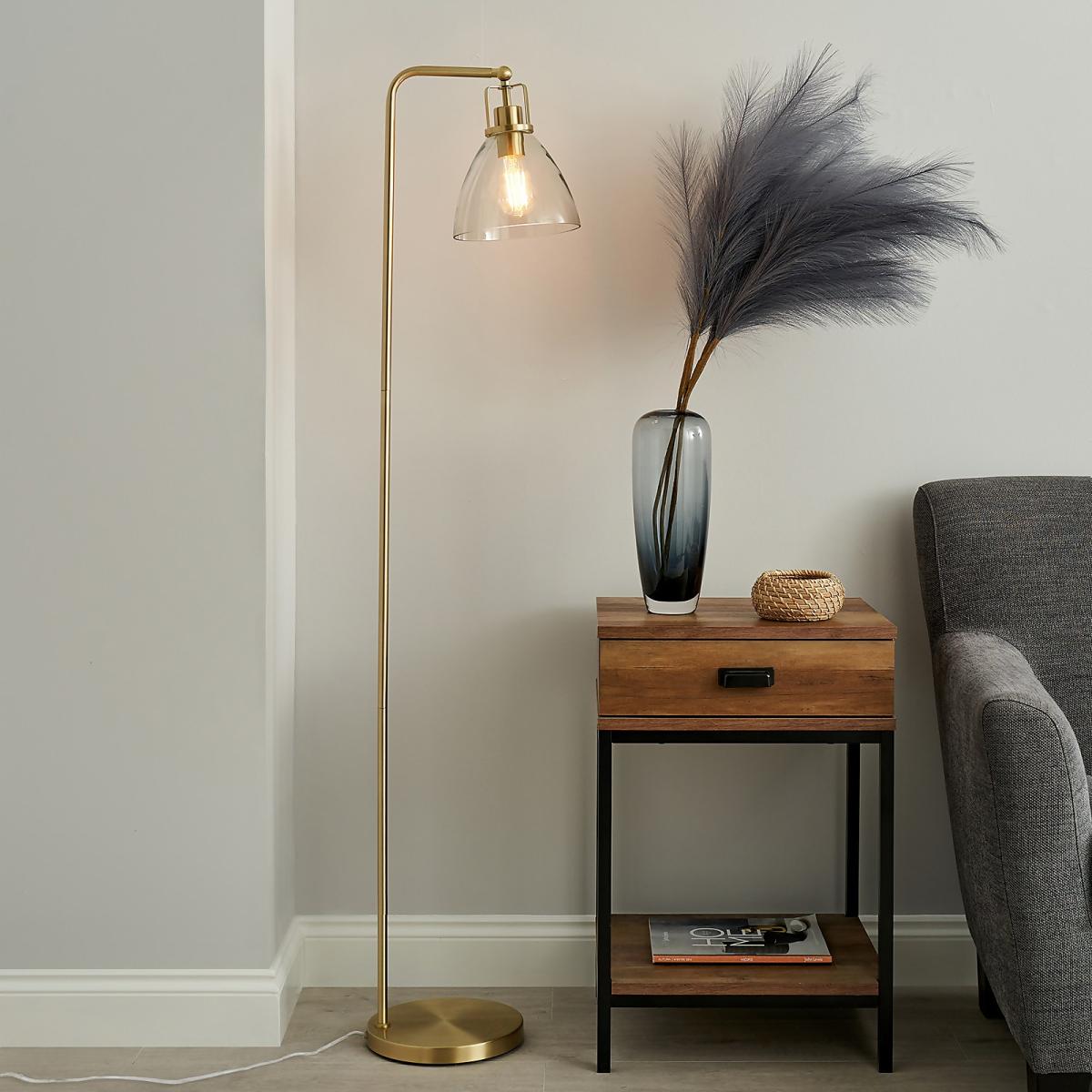 Berkeley is an industrial effect family featuring ceiling pendants, table & floor lamps and wall lamp. This elegant floor lamp finished in Satin brass detail with a clear glass dome shade will suit any living space.