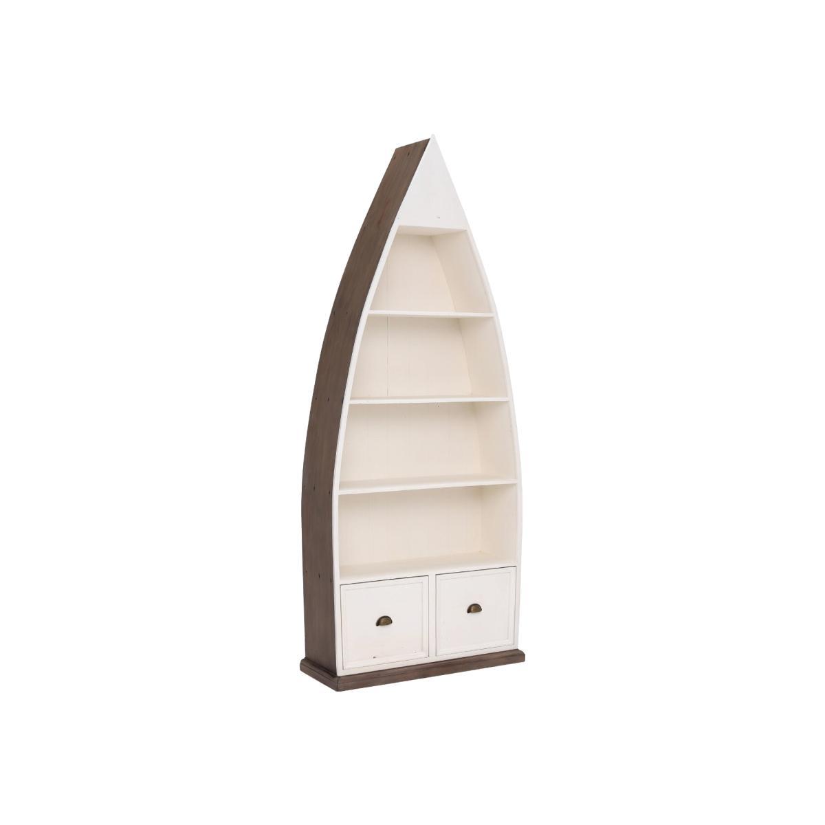 I love this boat-shaped bookcase for its unique, maritime-inspired design that adds character to any space. It works particularly well in coastal, nautical, or rustic interiors, where natural textures and reclaimed wood accents are key. Practical styling tips include grouping seaside-themed accessories or vintage maritime memorabilia on its shelves, and balancing its distinctive shape with more streamlined furniture around it. Additionally, pairing it with soft, neutral tones will allow its natural wood finish to stand out without overwhelming the room. It’s a functional piece that brings a touch of charm while maintaining a practical storage solution for books or decorative items.