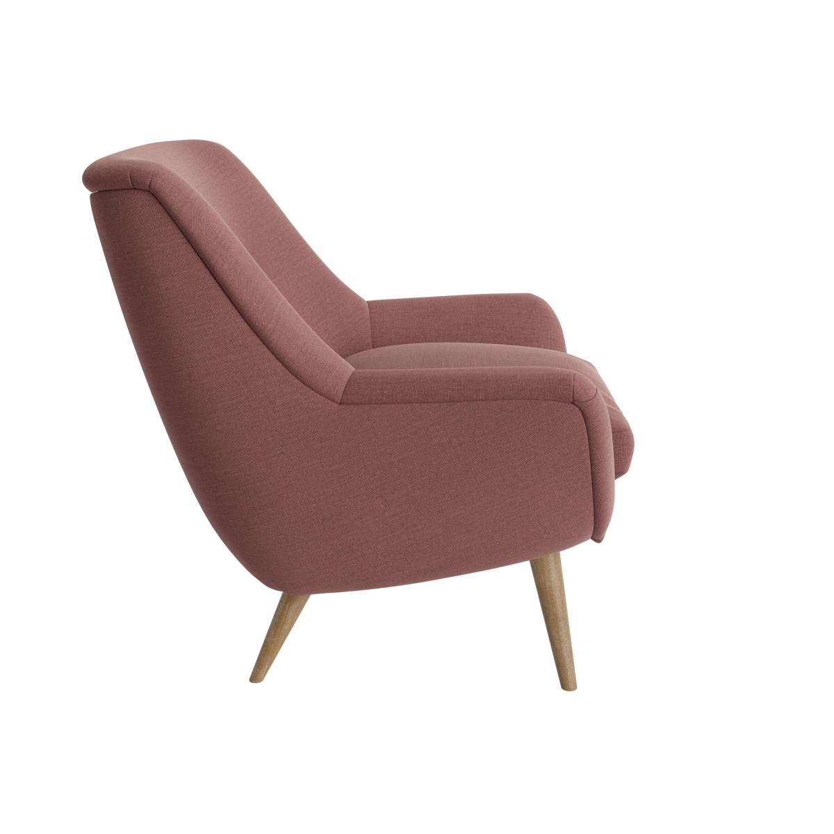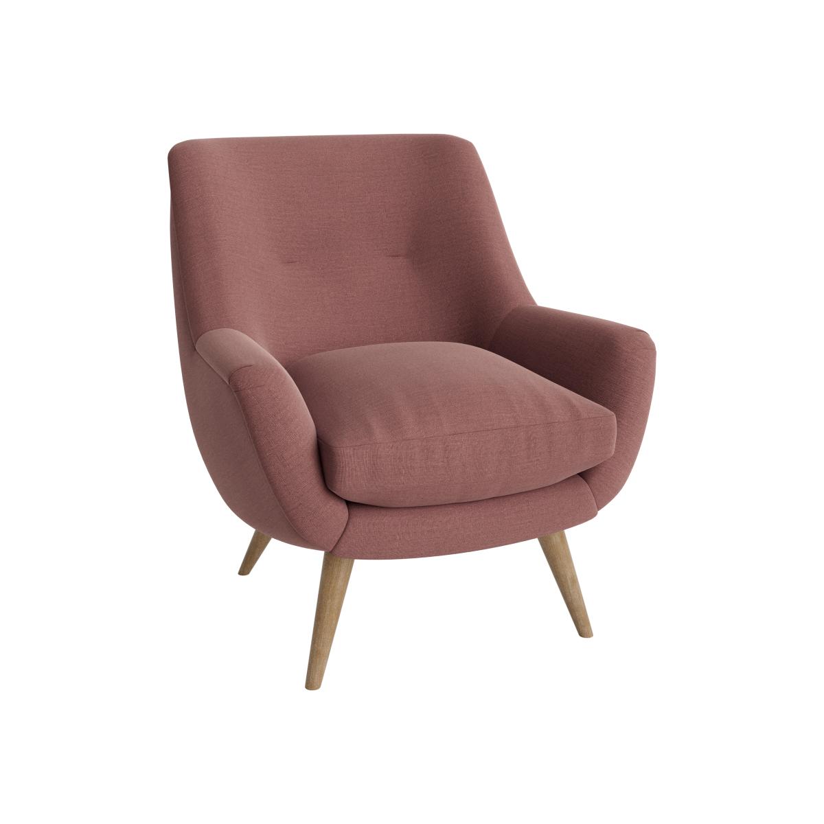 I love this armchair for its blend of retro-inspired design and modern comfort. Its soft pink hue makes it a versatile choice that can brighten up both cosy corners and more sophisticated spaces. It works particularly well in contemporary and mid-century interiors, where its curved lines and tapered wooden legs add a touch of elegance. For styling, try pairing it with a textured throw or a patterned cushion to add visual interest. It’s also practical enough to serve as an accent piece in bedroom corners or living rooms, providing a cosy spot for reading or relaxing without overpowering the surrounding décor.