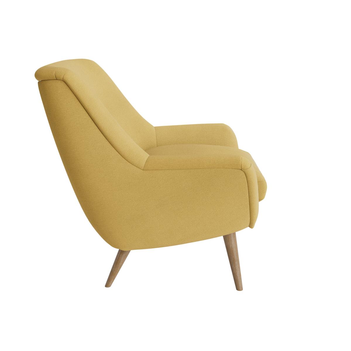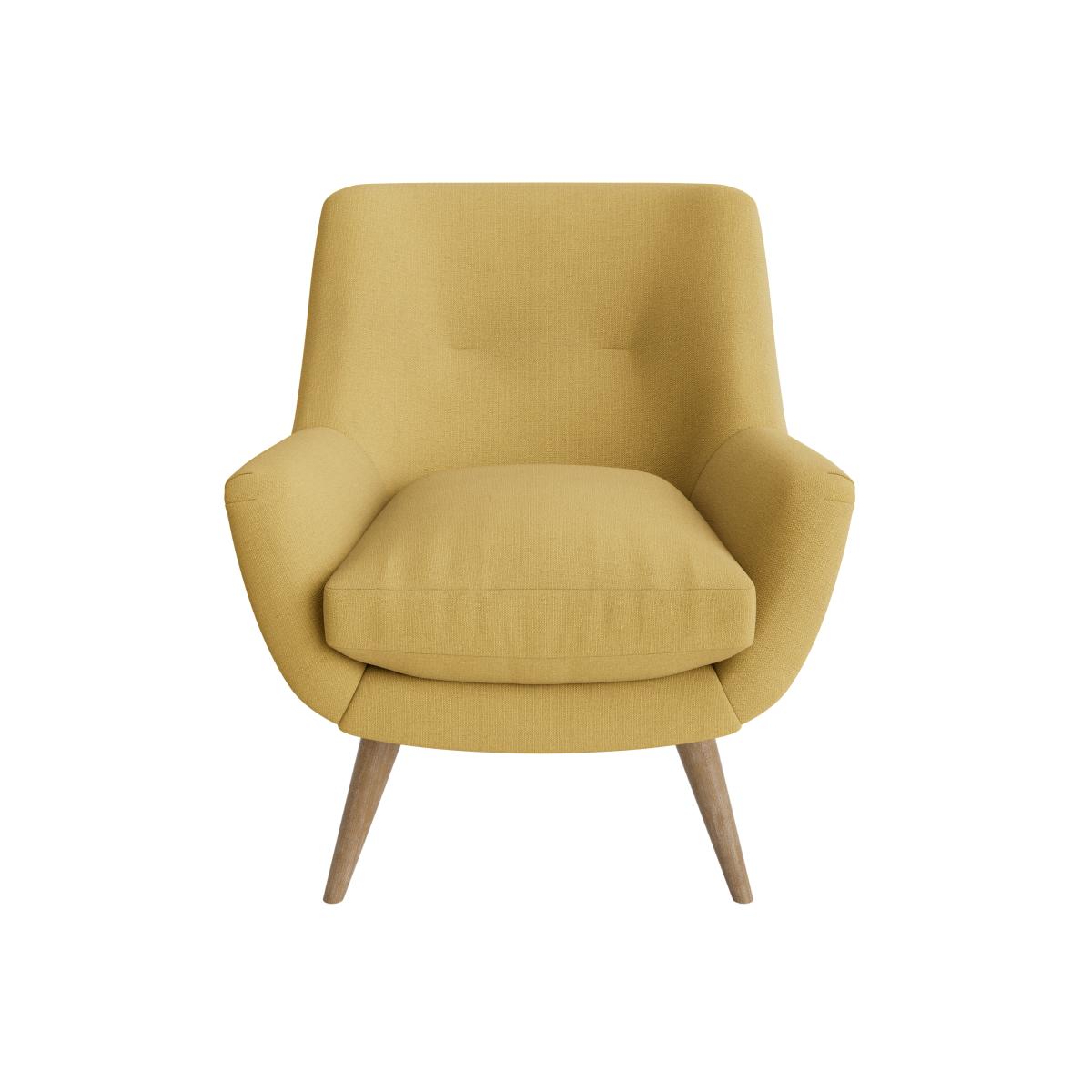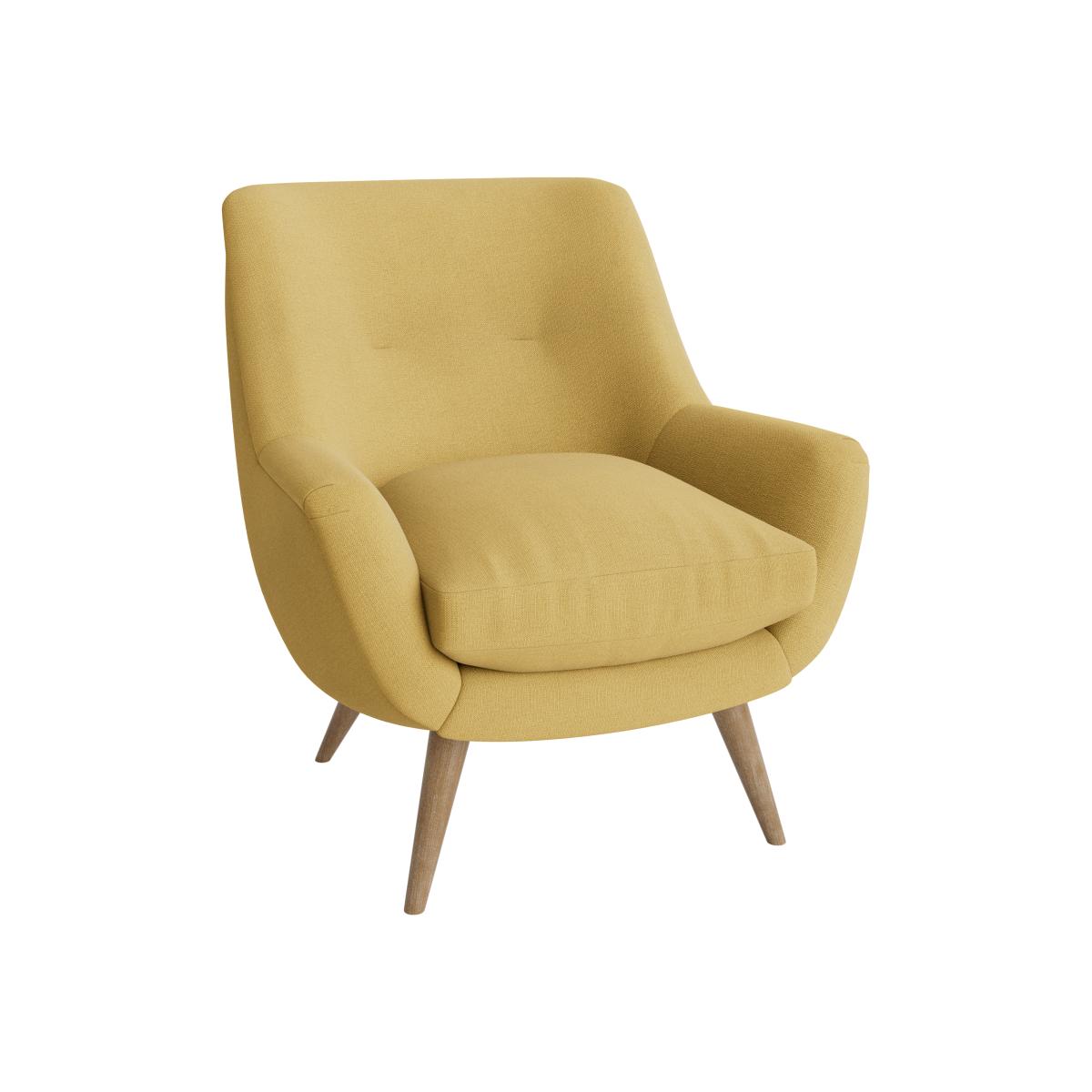 The Berlin armchair is a charming choice for adding a pop of colour and style to a variety of interiors. Its streamlined, vintage-inspired design and soft yellow tone make it a versatile accent piece, suited to both modern and retro-inspired schemes. It works particularly well in cosy living rooms, reading nooks, or even as a statement piece in bedrooms. For styling, pair it with neutral or contrasting cushions to enhance its colour, and complement it with natural wood or metal side tables for practical appeal. Keep the surrounding decor simple to let this cheerful chair stand out, or create a playful scheme by mixing in bold patterns and textures around it.