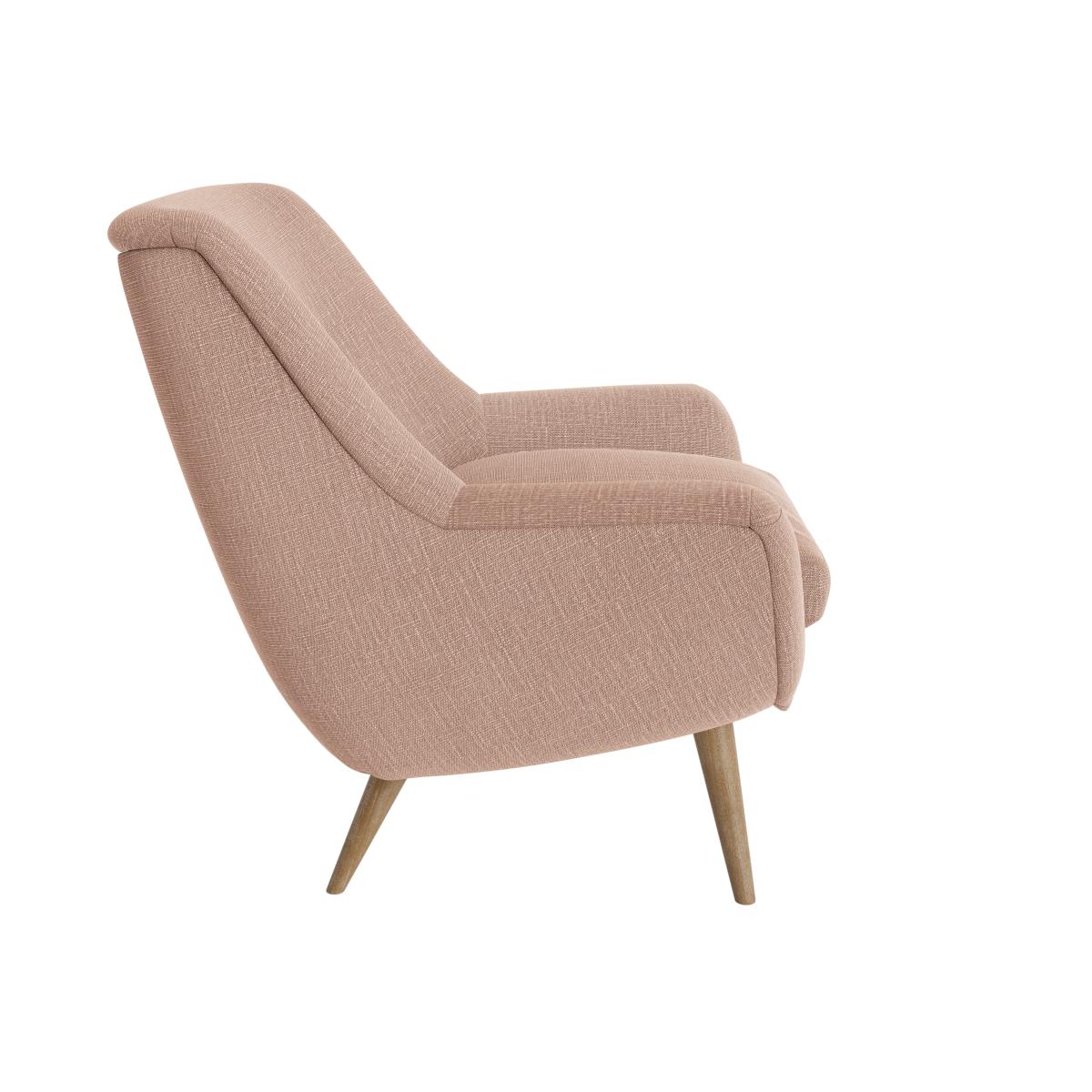 I love this chair for its approachable mid-century feel, which makes it versatile across a range of interiors. Its soft, neutral tone easily pairs with bold colours or subtle palettes, making it a practical choice for colourful lounges or understated bedrooms. The slightly rounded silhouette and tapered wooden legs give it a cosy yet stylish vibe. For styling tips, consider placing it next to a sleek side table with a reading lamp for a cosy nook, or use it to add visual interest in a neutral living room by layering with textured cushions or a throw. It’s a great statement piece that offers both comfort and visual appeal without overwhelming the space.
