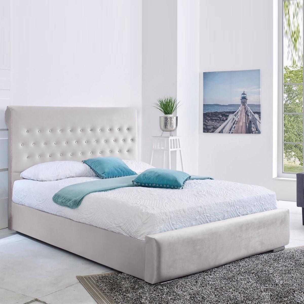 I really rate the Berlin frame for its clean silhouette and subtle button-tufting - it sits neatly in both minimalist and contemporary settings, from Scandi-style bedrooms to a slightly glam guest room. The low foot end keeps the focus on layering textures: think a chunky wool throw, plush velvet cushions or even a small fur-effect rug to soften the overall feel. To style it, choose crisp, neutral bedlinen and introduce one or two accent hues - muted teal or blush work well against silver upholstery. Pair with slim bedside tables in ash wood or black metal, add matching bedside lamps and hang a statement mirror or simple framed art above the headboard. Under-bed storage boxes will keep clutter out of sight while preserving that streamlined look.