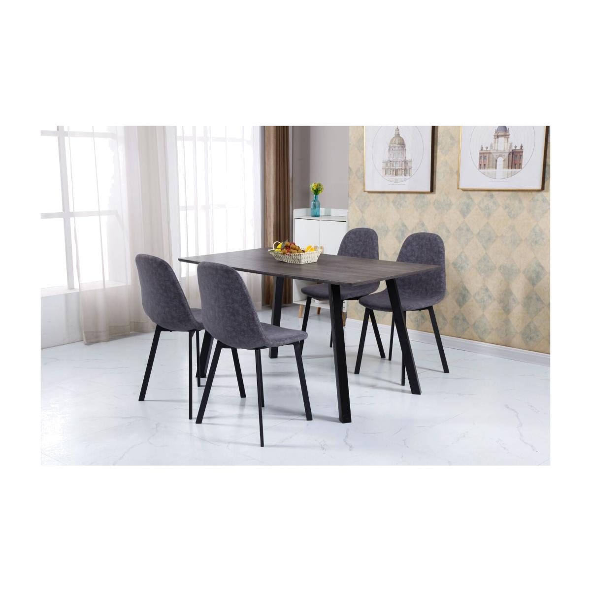 An amazing addition to any dining space. This Dining Set consisting of a modern dining table and four chairs will be perfect for family dining and entertaining. Featuring a dark wood grain table top with sturdy metal legs, bringing a contemporary feel to your home. UK Mainland delivery only, between 9am - 9pm (weekdays) the courier will contact you on the day of delivery to offer a time slot. This takes place within 10 working days (Ground floor only). Please also ensure that we have a note of your up-to-date address and contact information, including daytime phone number and email address to be passed to the couriers.