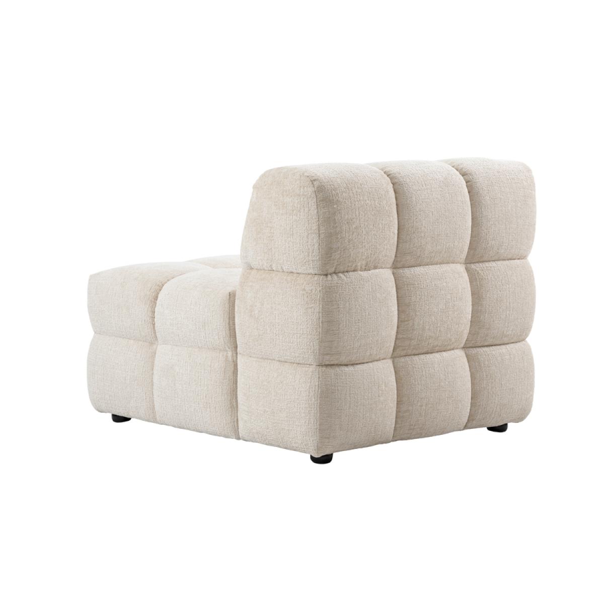 A squishy contemporary lounge chair with an extra deep square tufting design. Plush comfortable sprung seat and back with generous deep foam and fibre filling. Upholstered in a soft, tactile, chenille fabric. Can be used alone or as an extension module to our Berlin Corner Sofas.