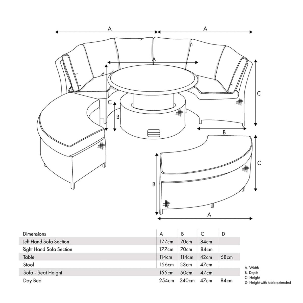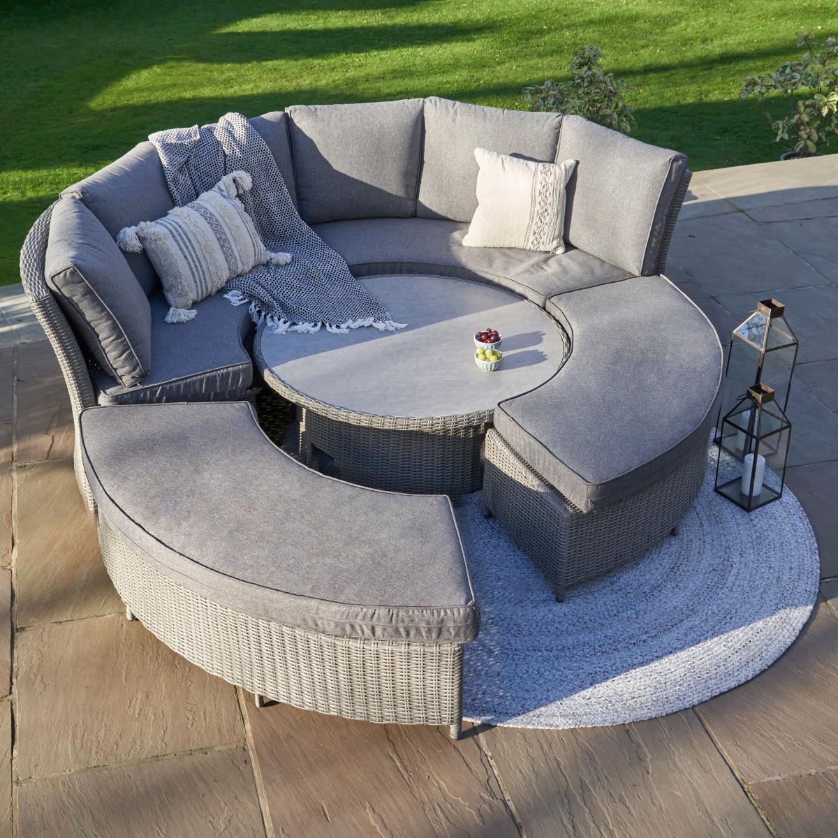 Bermuda Daybed Garden Dining Set with Ceramic Top Stone (Grey)