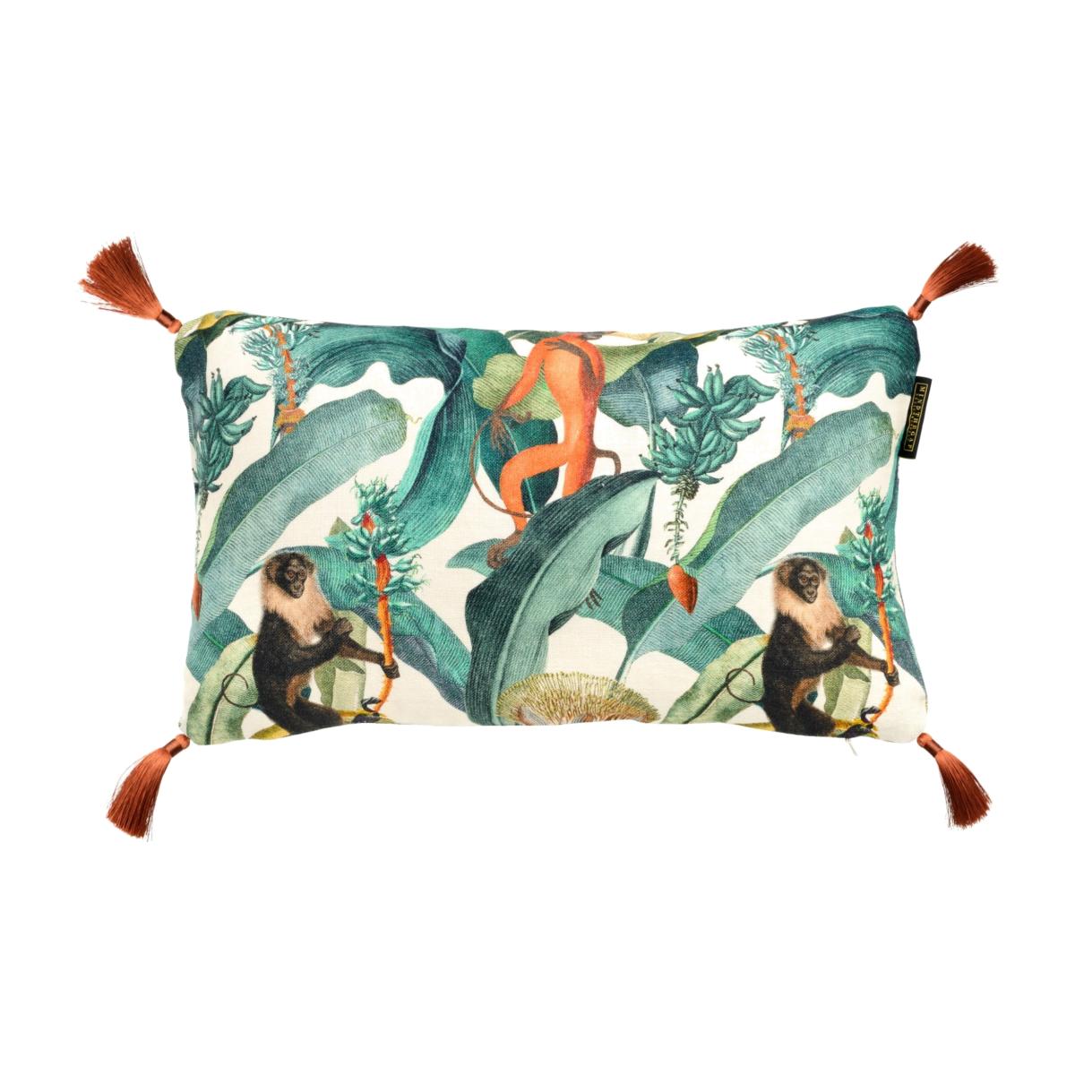 A tropical style design on a light background, featuring the magnificent wildlife and vegetation of the Bermuda islands. MINDTHEGAP's distinctive cushions show beautiful patterns and details of our fabrics. Made on heavy linen or cotton pile velvet, all cushion are printed in England by using traditional methods. To achieve a unique vintage effect and to get more softness, our linen cushions are stonewashed finished. The fillings are made of duck feathers in order to keep the natural look of the cushion and also a good shape for long time.