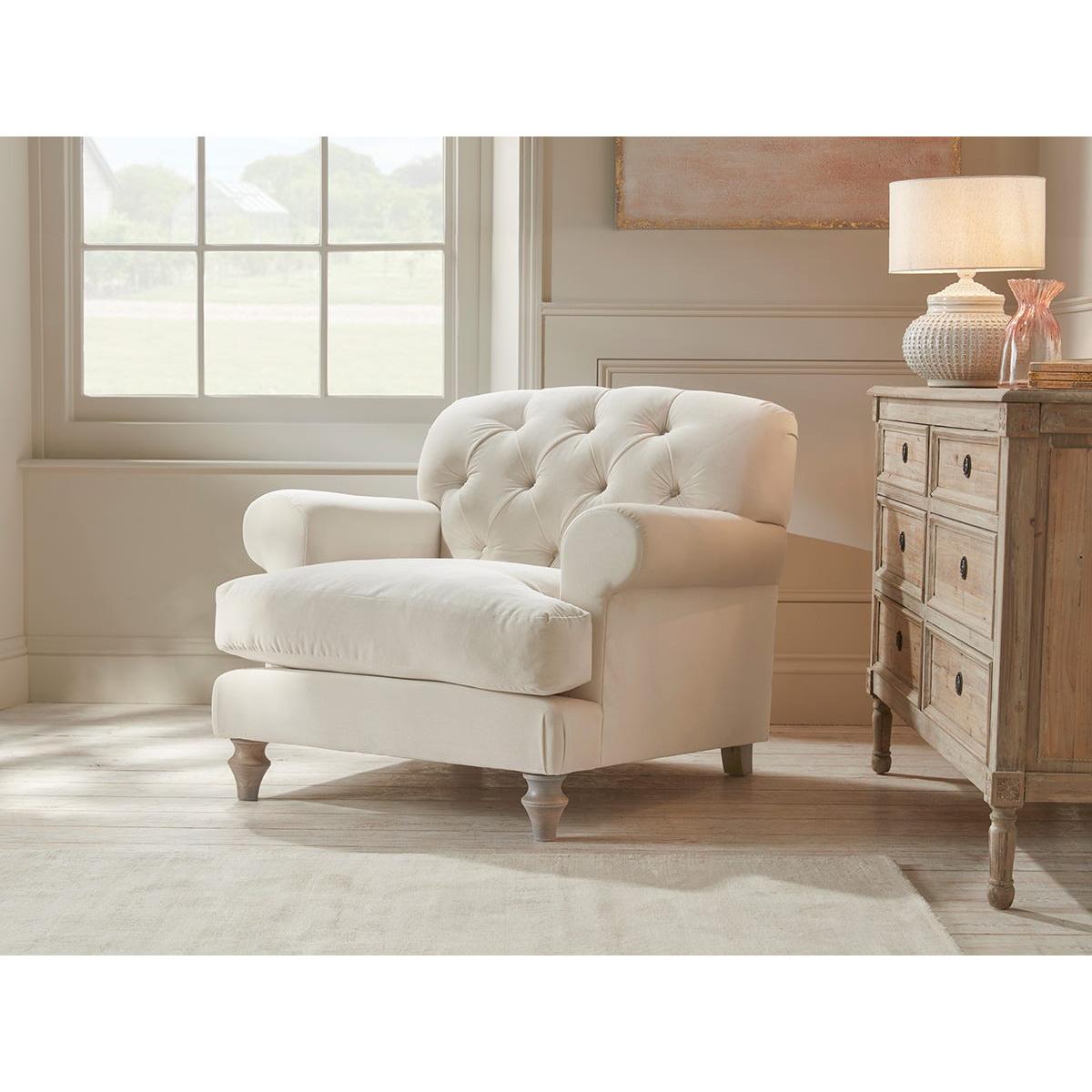 A pretty partner to our Bern sofa, the Bern armchair offers classic English lines updated with a smart buttoned back. Hand tufted by craftsmen here in the UK, the delightfully plump design features low recessed rolled arms and deep squishy seats. Smart hand turned wooden legs complete the look. The Bern range includes two seater and three seater sofas, an armchair and an ottoman. Our Bern collection can be upholstered in a choice of 33 distinctive shades and five fabrics to suit your style.