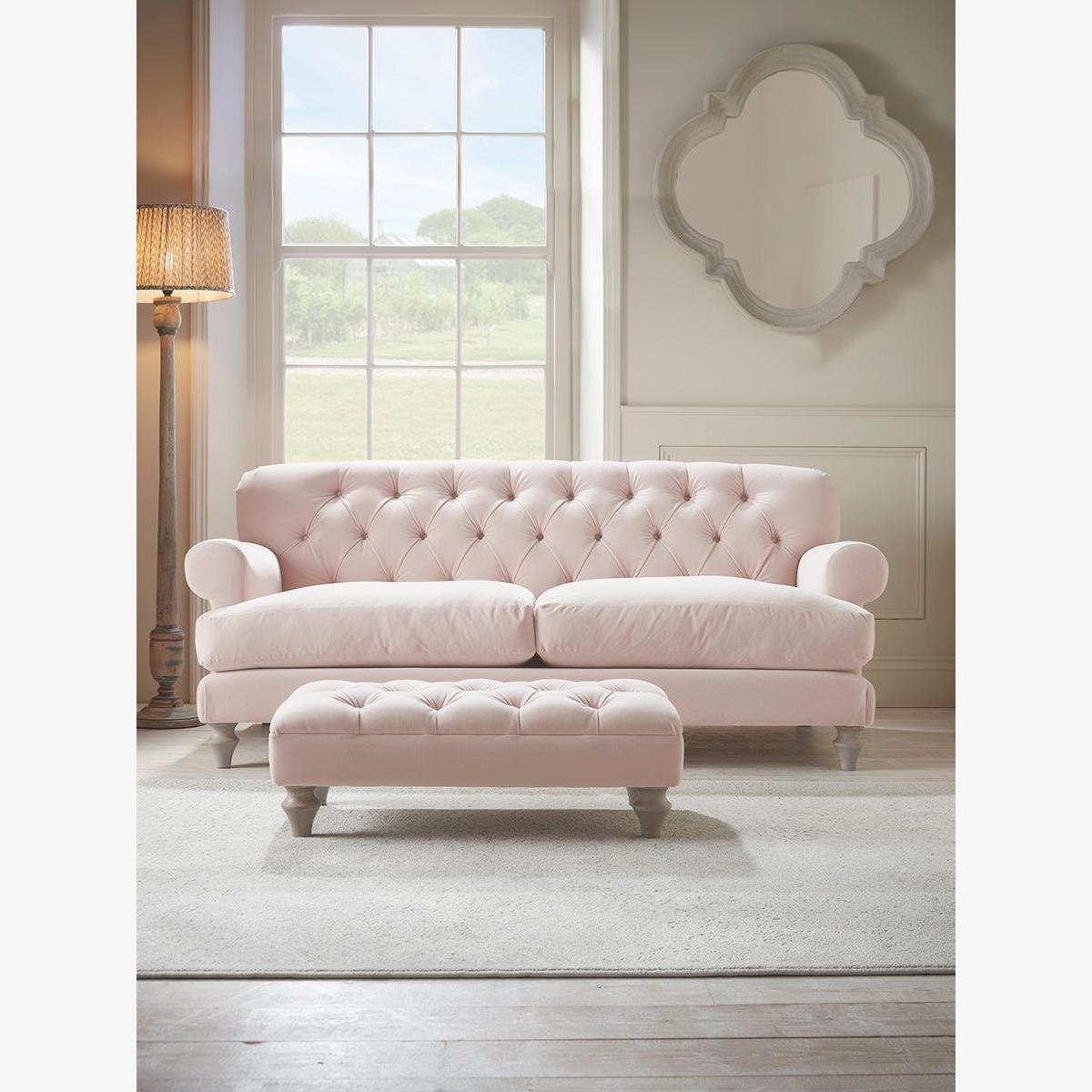 Delightfully plump, our Bern sofa brings a classic English design up to date with deep, squishy seats and a wide, diamond-tufted button back. Low recessed arms and smart, hand turned legs complete the look. Our Bern collection can be upholstered in a choice of 33 distinctive shades and five fabrics to suit your style. Read our Upholstery FAQs View our full Upholstery Terms and Conditions