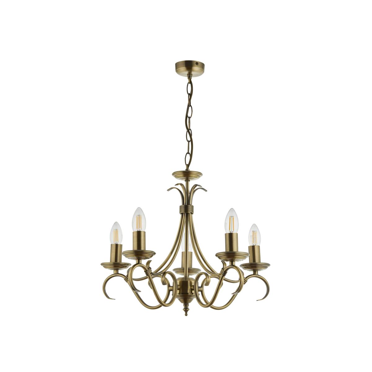 Traditional chandelier boasting an antique brass finish throughout. An elegant addition to your home, the Bernice Chandelier is a stunning fitting from Endon. Finished in antique brass throughout, this height adjustable chandelier comes complete with a metal chain and delicate scrolled arms. Pair with vintage style light bulbs for maximum impact. Perfect for installation in dining rooms, living rooms and bedrooms. Style this light with either our E14 4w LED Light Bulbs for a crisp light, or alternatively use our E14 2w LED Vintage bulbs for a warm, rustic glow. Traditional chandelier boasting an antique brass finish throughout. An elegant addition to your home, the Bernice Chandelier is a stunning fitting from Endon. Finished in antique brass throughout, this height adjustable chandelier comes complete with a metal chain and delicate scrolled arms. Pair with vintage style light bulbs for maximum impact. Perfect for installation in dining rooms, living rooms and bedrooms. Style this light with either our E14 4w LED Light Bulbs for a crisp light, or alternatively use our E14 2w LED Vintage bulbs for a warm, rustic glow.