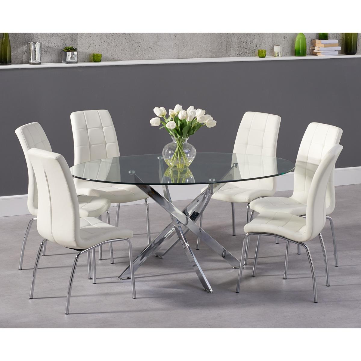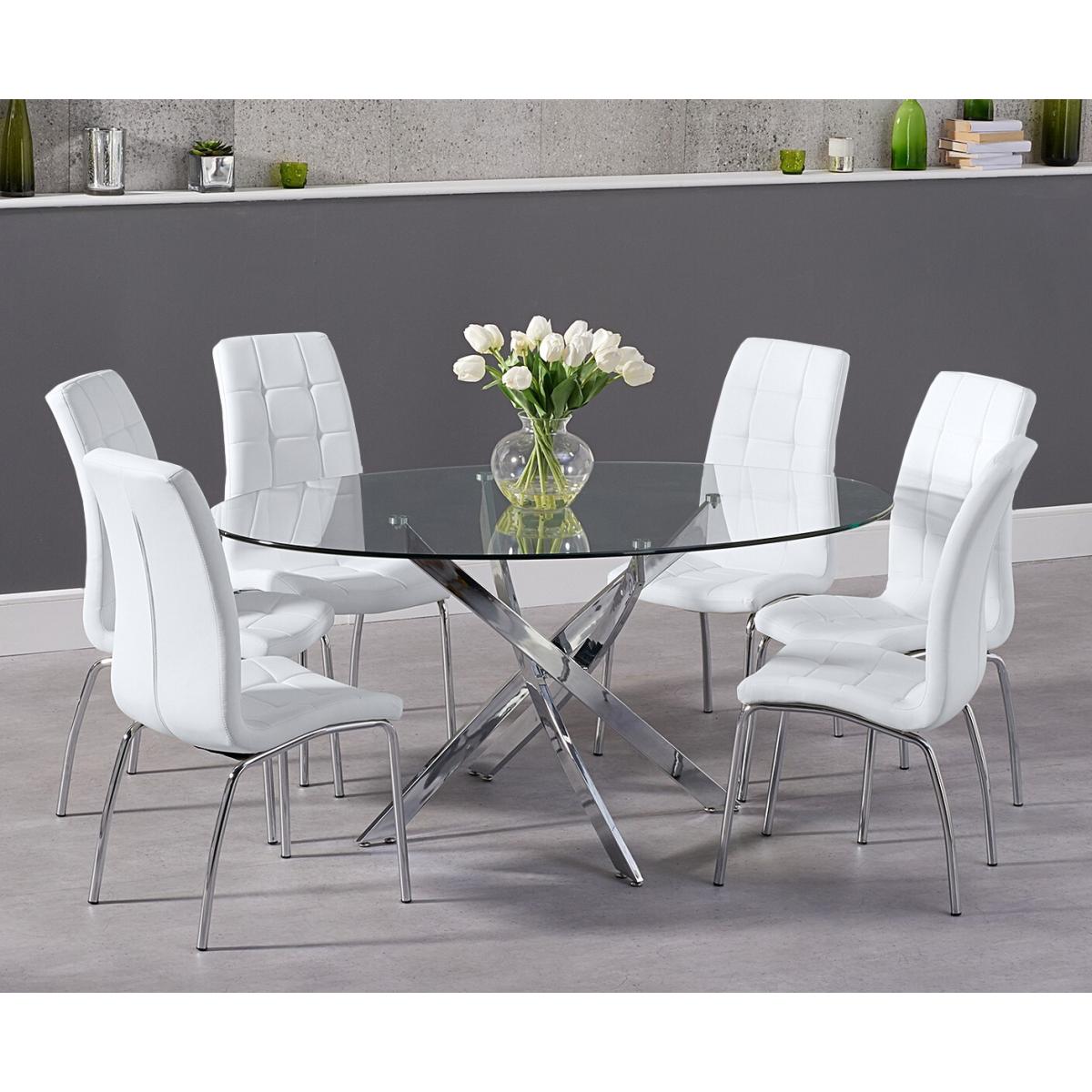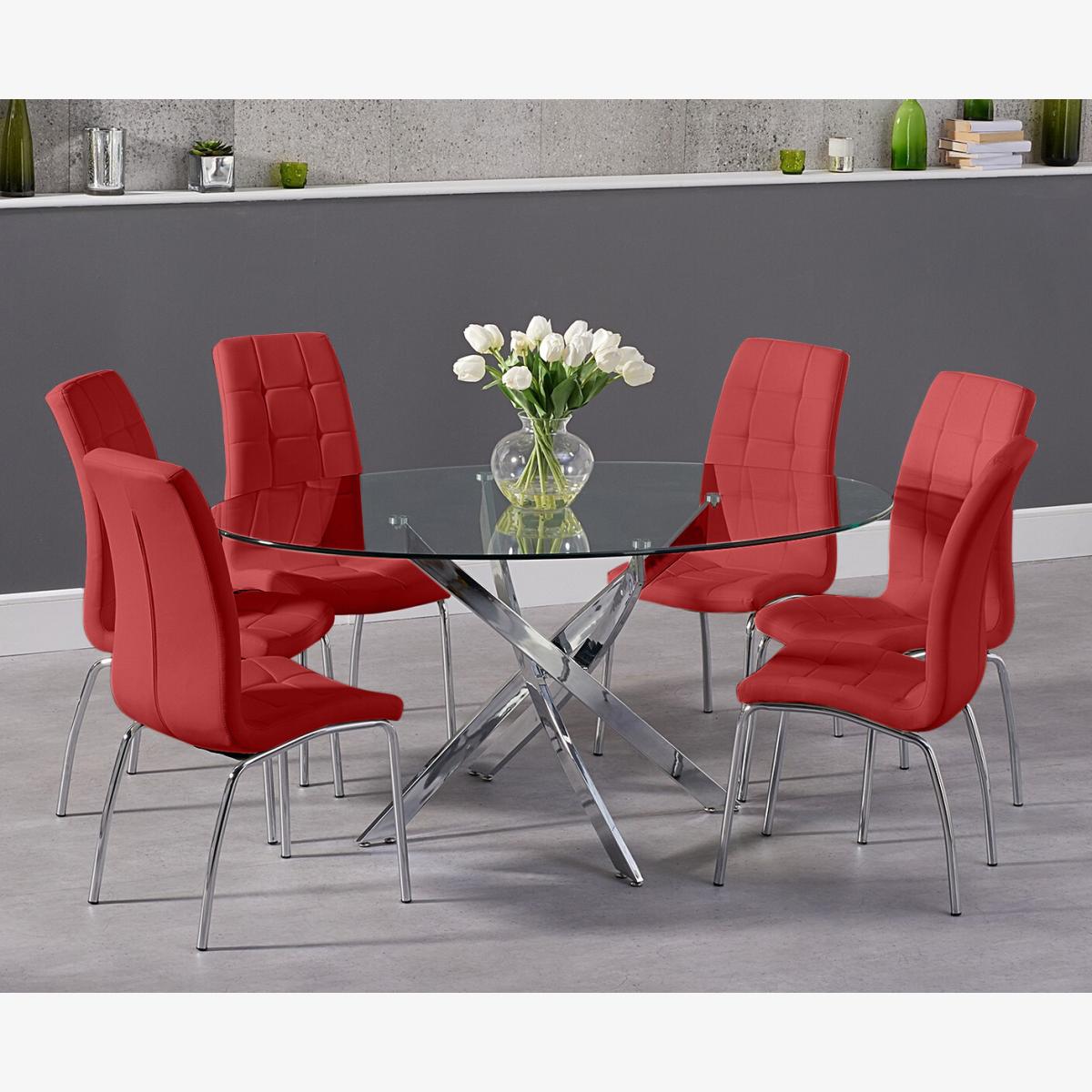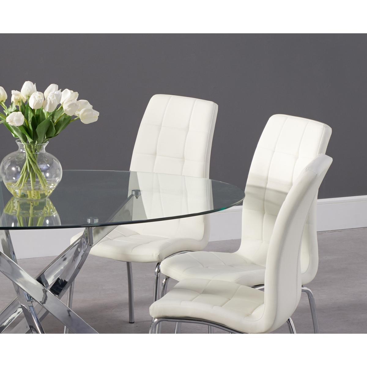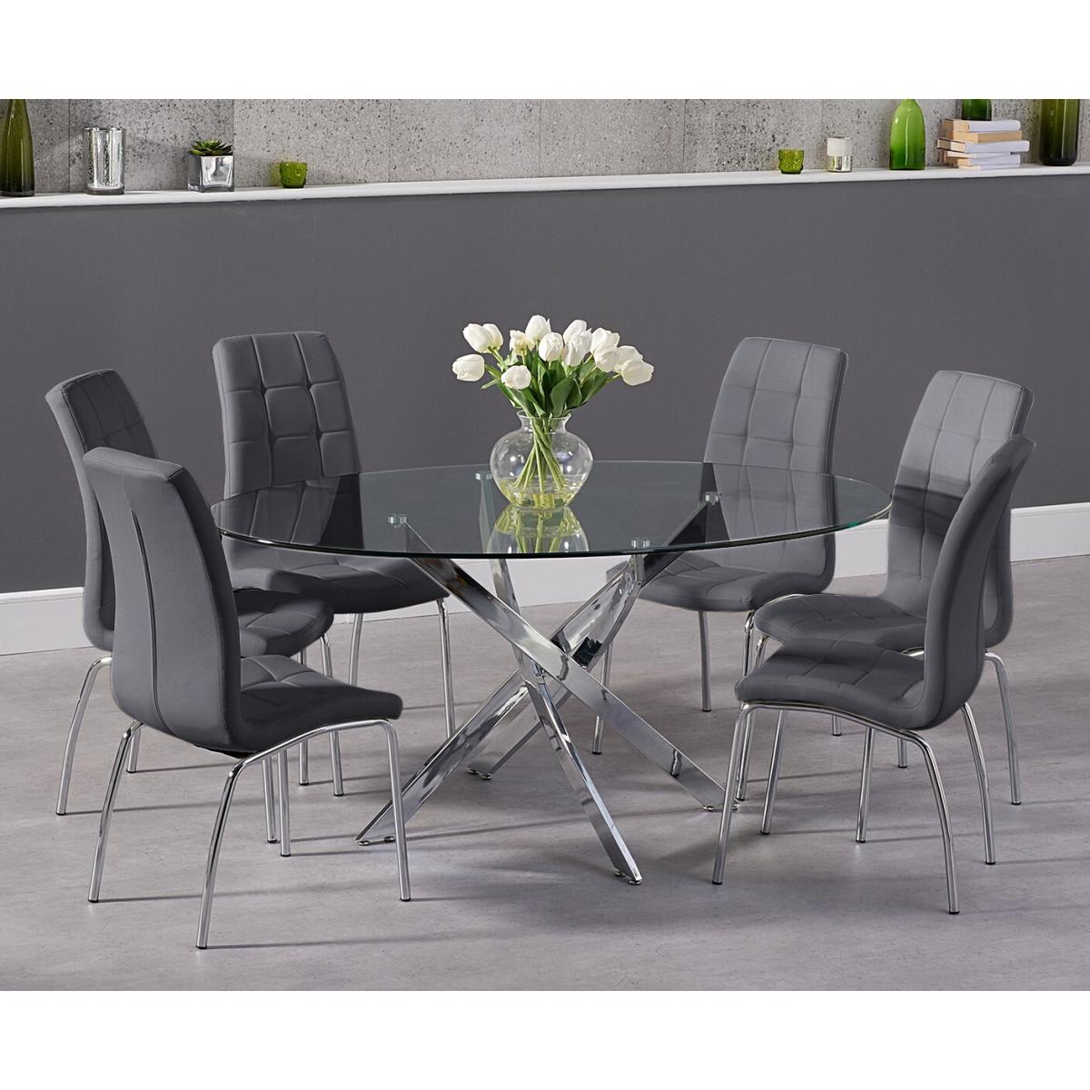 Bernini 165cm Oval Glass Dining Table with 4 Grey Enzo Chairs