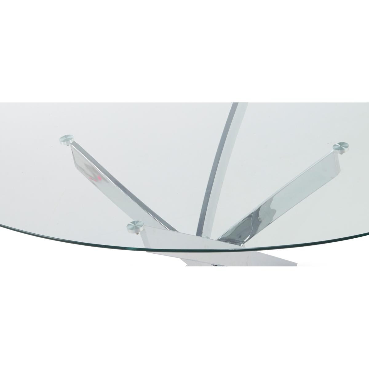 With unique intertwined legs and an oval shape this glass dining table is tailored to your home.