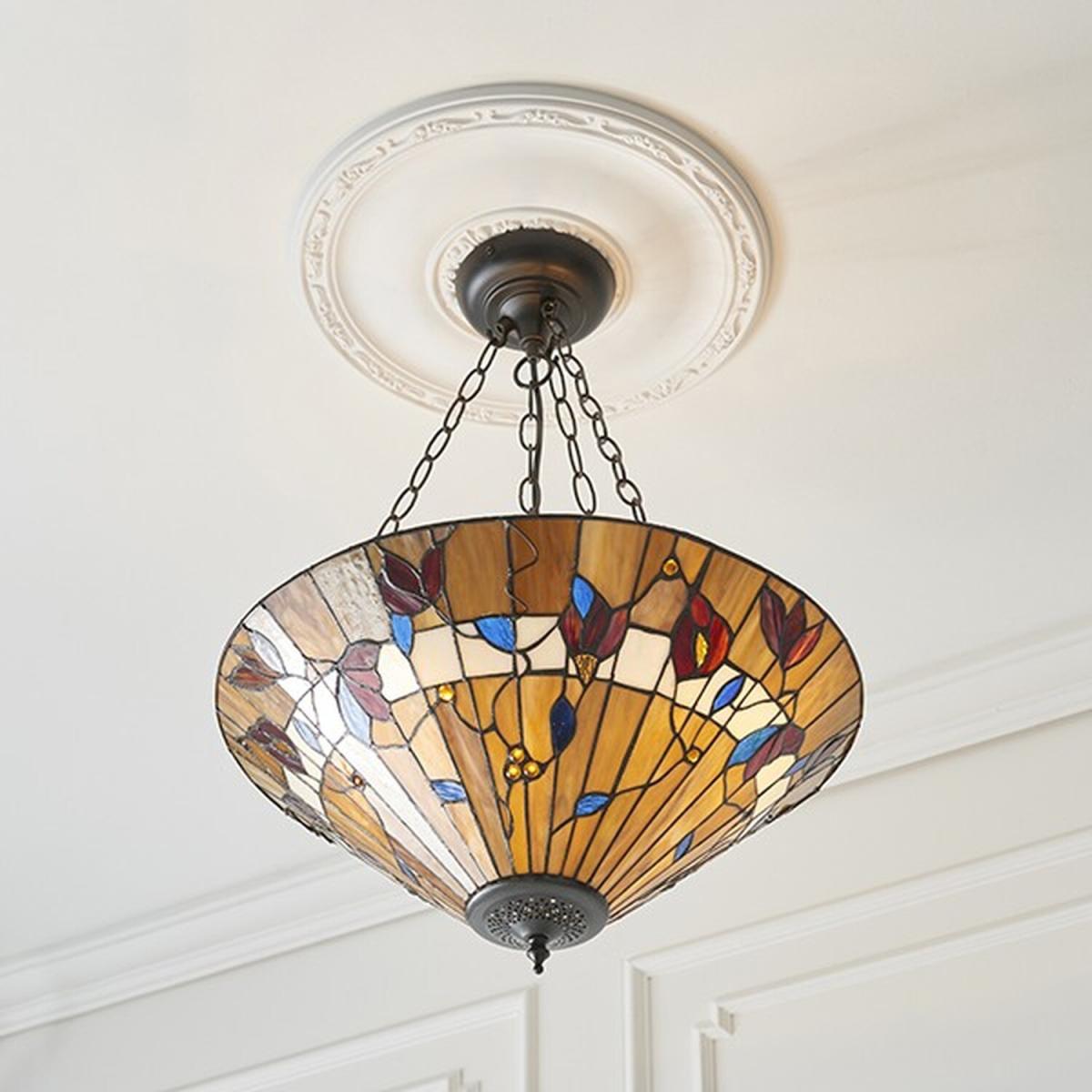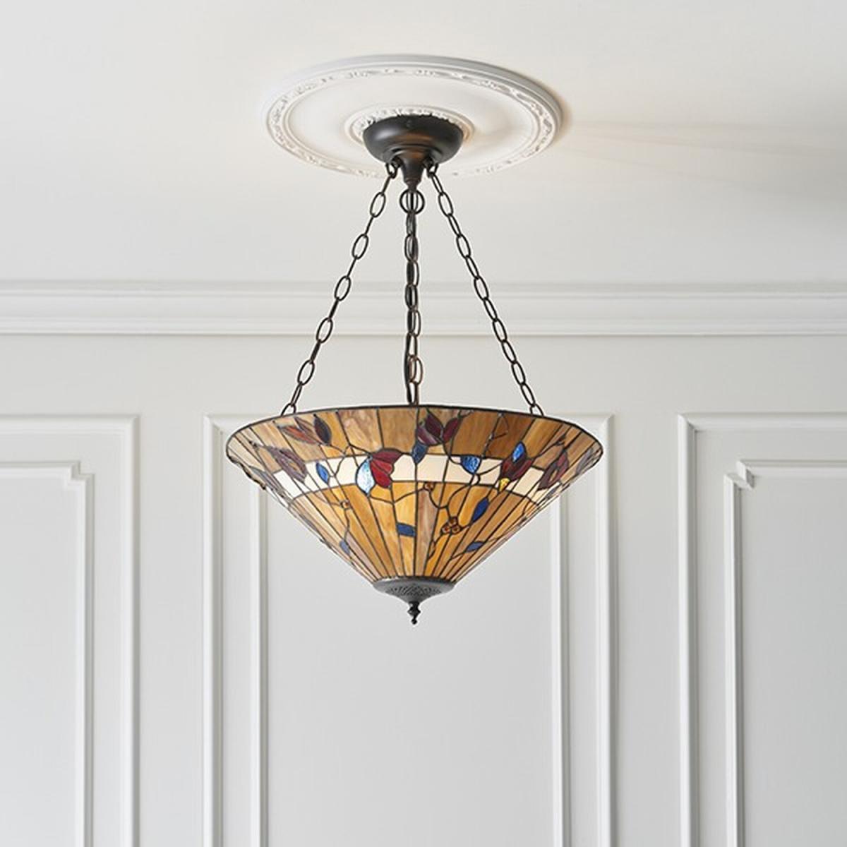 I really like this ceiling pendant - it brings a sense of warmth and character with its dark bronze finish and Tiffany-style glass. It’s a versatile piece that works particularly well in eclectic, vintage, or traditional interiors, but can also add an eye-catching touch to more contemporary spaces when styled thoughtfully. When using this in a living or dining area, consider pairing it with warm-toned decor or antique accents to enhance its timeless appeal. For practical styling tips, hanging several above a kitchen island or in a hallway can create a striking focal point. Just make sure the scale suits your space; this larger pendant makes a bold statement, so it’s ideal where you want a functional lighting feature with visual impact.