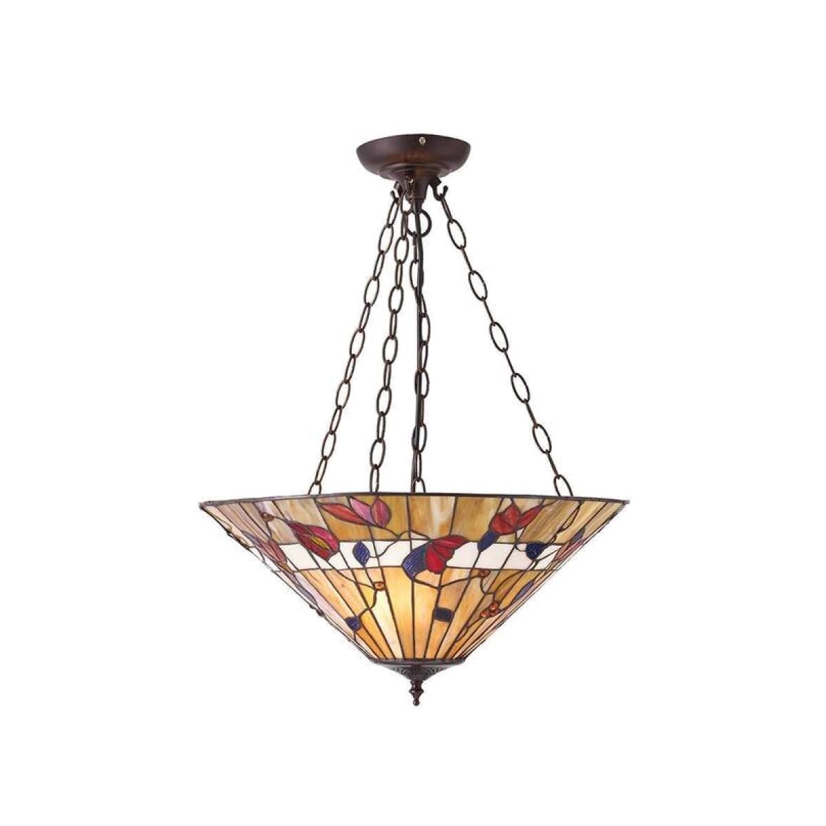 Bernwood 3 Light Large Inverted Ceiling Pendant Dark Bronze, Tiffany glass - Dark Bronze