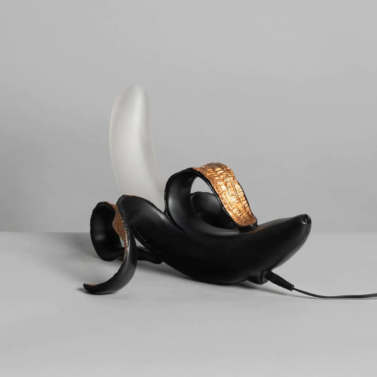 Gorgeously create an eclectic style in your bedroom or living room with the Bert Banana LED Table Lamp in Black and Copper. The copper accents of this black table lamp adds a vintage pop of colour, accentuating the sleek design. The LED technology of this banana desk light combines with the frosted shades to compose a relaxing lighting layer, that also is energy efficient.