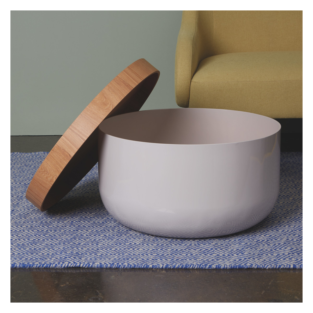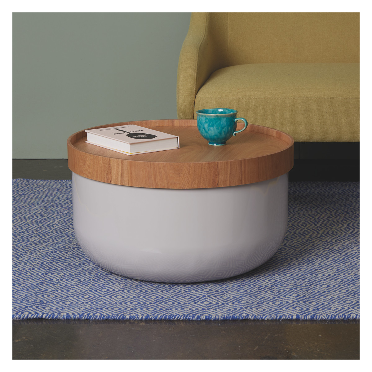 Practical and chic, the compact Bert mushroom storage coffee table lets you hide clutter in an instant. Its dark stained ash veneered lid and glossy lacquered base complement most contemporary interiors. The lightweight table is exclusive to Habitat and is also available in white.