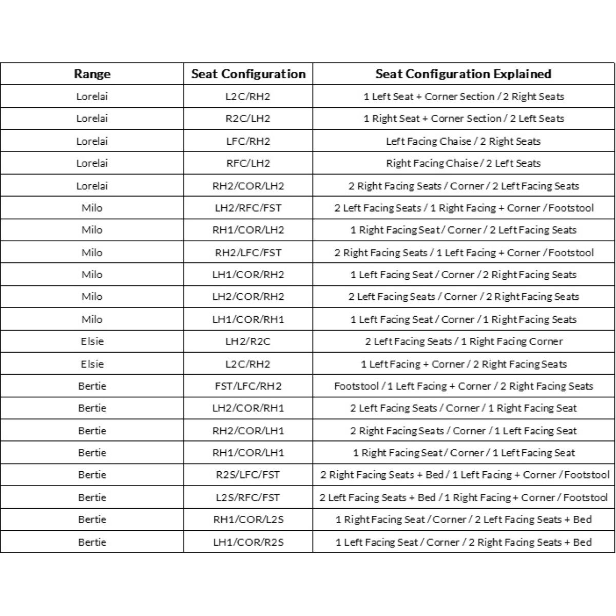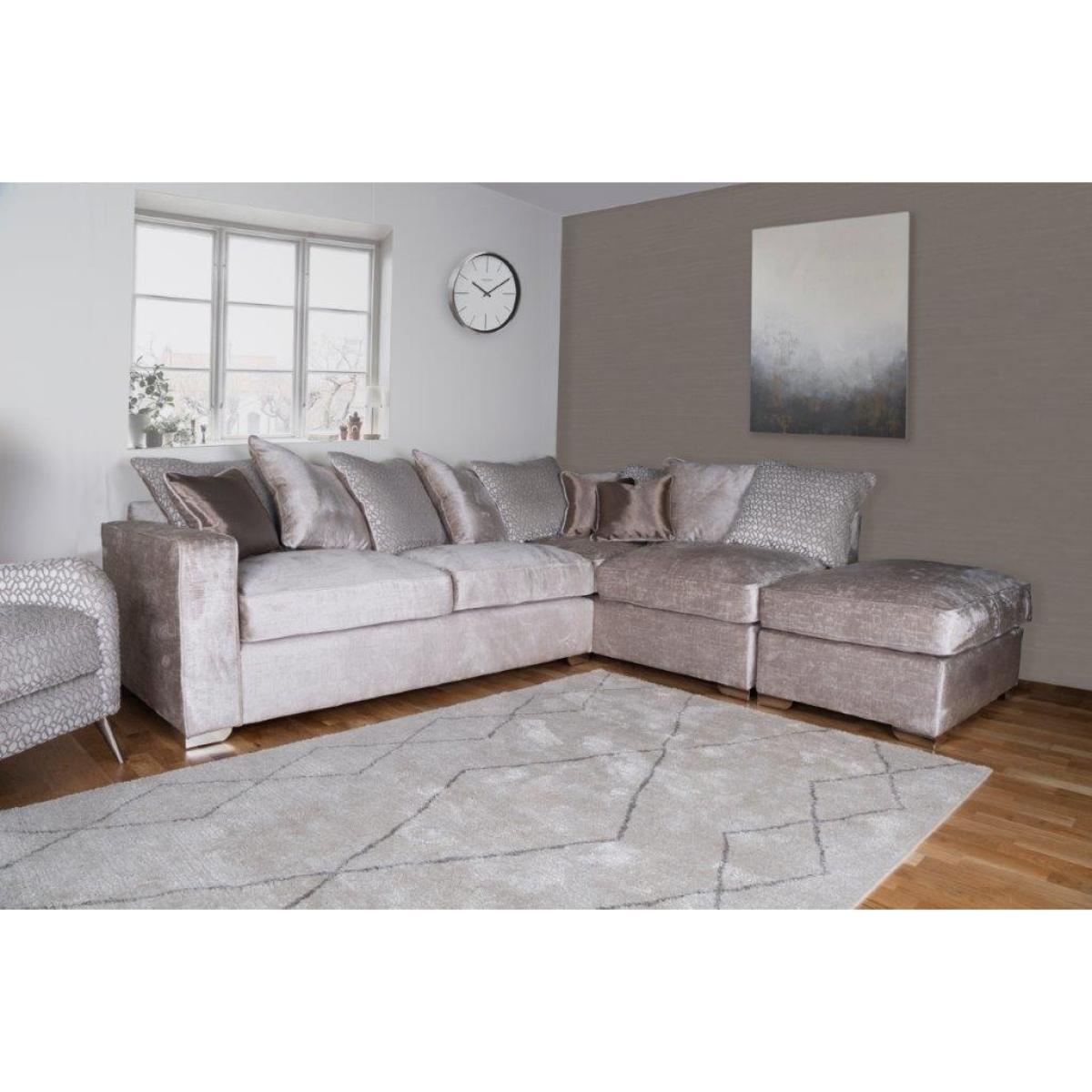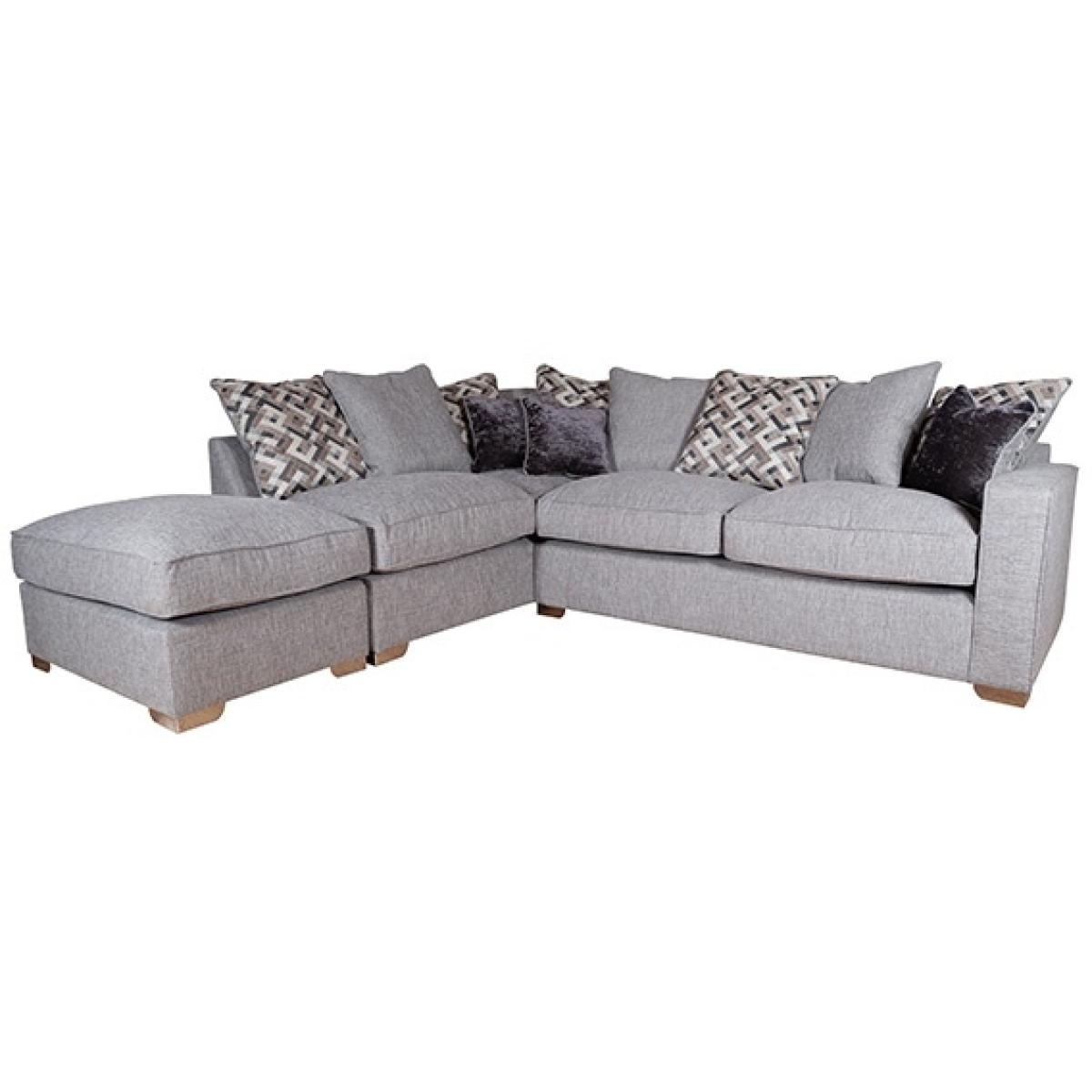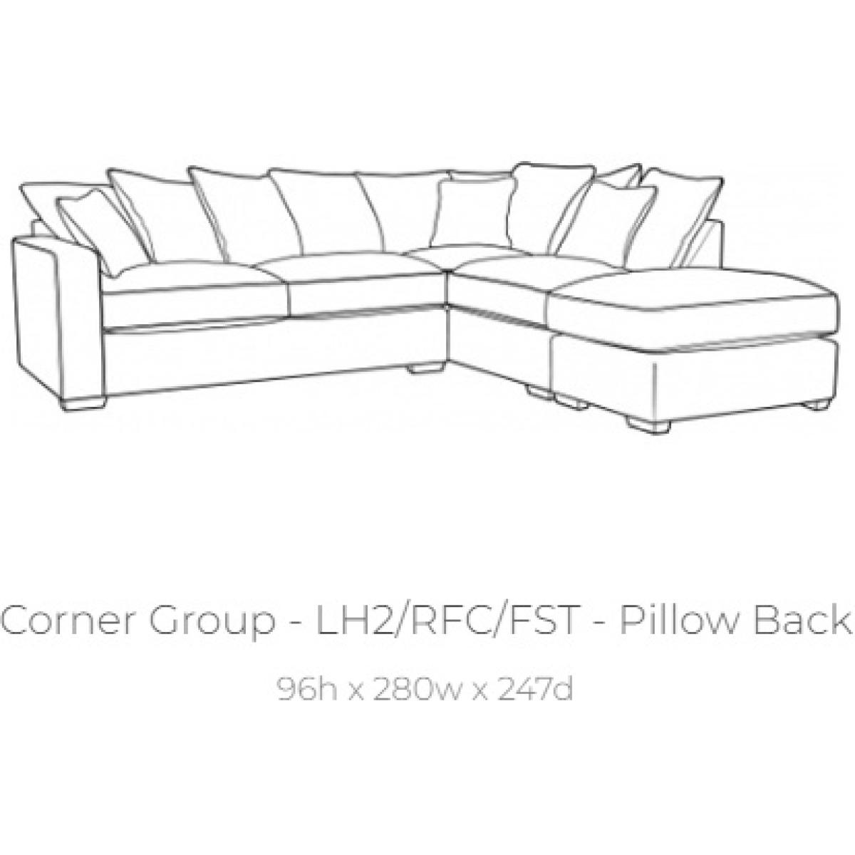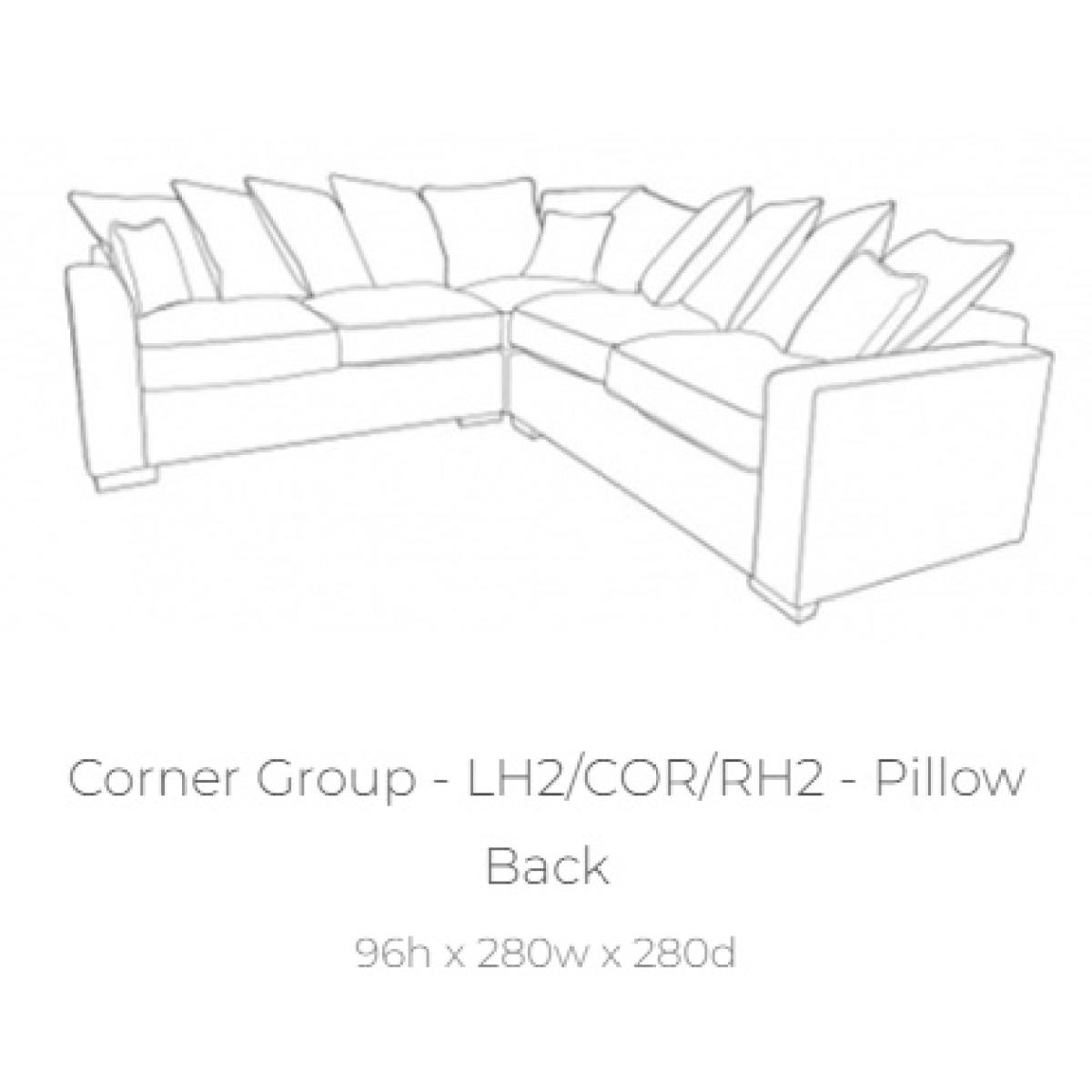 The Bertie Pillow Back Corner Sofa Group is simple yet stylish with chunky arms and a casual pillow back cushion option. ExtraFlex Foam Seat Interior - A high density foam base seat interior with a hand-rolled carded fibre, channelled topper which provides both softness and support. To improve the longevity of your hand-made furniture, we recommend rotating cushions (where applicable). Available in a wide choice of stunning fabrics, from stylish plains to florals, stripes and on-trend geometric patterns. The fabrics come in different price bands, however all fabrics are approved for domestic use, exceeding British standards for wear, colour-fastness and performance. Please note that all scatter cushions are covered in the main body fabric on the reverse. The feet are available in a choice of three wood finishes or a chrome finish. Please note, wood is a natural product and will vary in shade/colour from item to item. Feet may require fitting. Dimensions: LH1/COR/RH1 - H 96 x W 202 x D 202cm RH1/COR/LH1 - H 96 x W 202 x D 202cm LH2/COR/RH2 - H 96 x W 280 x D 280cm RH2/COR/LH2 - H 96 x W 280 x D 280cm LH1/COR/RH2 - H 96 x W 280 x D 202cm LH2/COR/RH1 - H 96 x W 280 x D 202cm LH2/RFC/FST - H 96 x W 280 x D 247cm FST/LFC/RH2 - H 96 x W 280 x D 247cm Features: Dowelled, screwed, glued and stapled joinery Hardwood and composite board frame Casual pillow back cushion ExtraFlex foam seat interior Fully Sprung 2 Year Manufacturers Warranty All sizes are approx. please allow a +/- 2.5cm (1") tolerance. All screens vary in colour reproduction and whilst every effort has been made to display the colour as accurately as possible it is for guidance only.