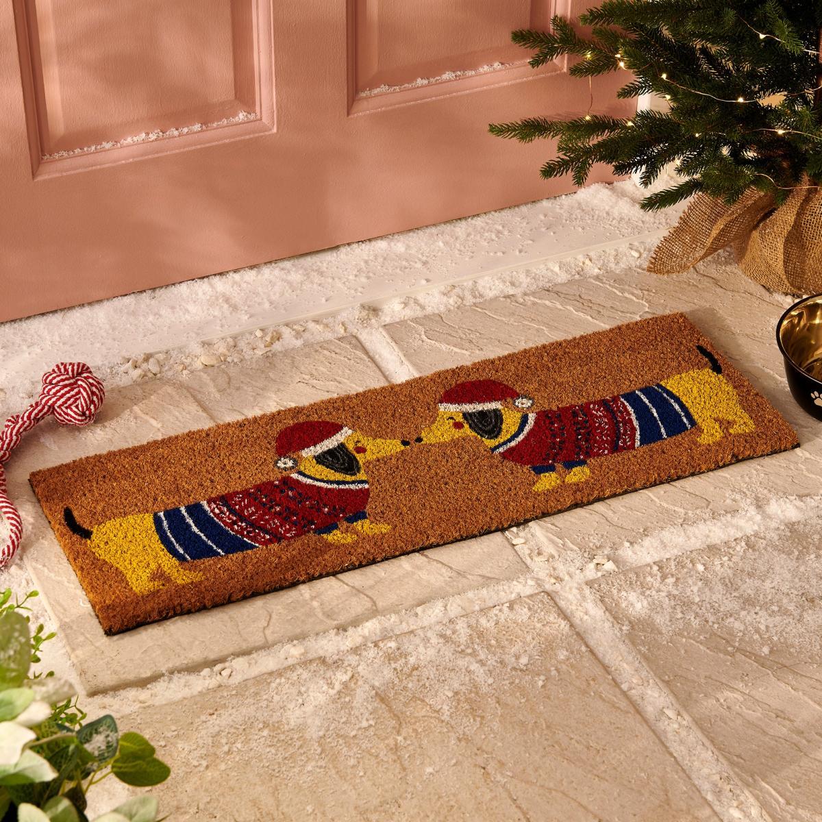 I love this playful doormat for adding a touch of festive fun right at the entrance. Its bright red, yellow, and brown tones make it a cheerful focal point that works well in traditional, rustic, or even eclectic interior schemes. It’s practical too-helpful in trapping dirt and moisture, especially during winter months. For styling tips, pair it with warm-toned accessories or natural textures like wicker baskets or plaid throws to create a cosy welcoming feel. Just make sure to coordinate its colours with other seasonal accents to keep the look cohesive and inviting.