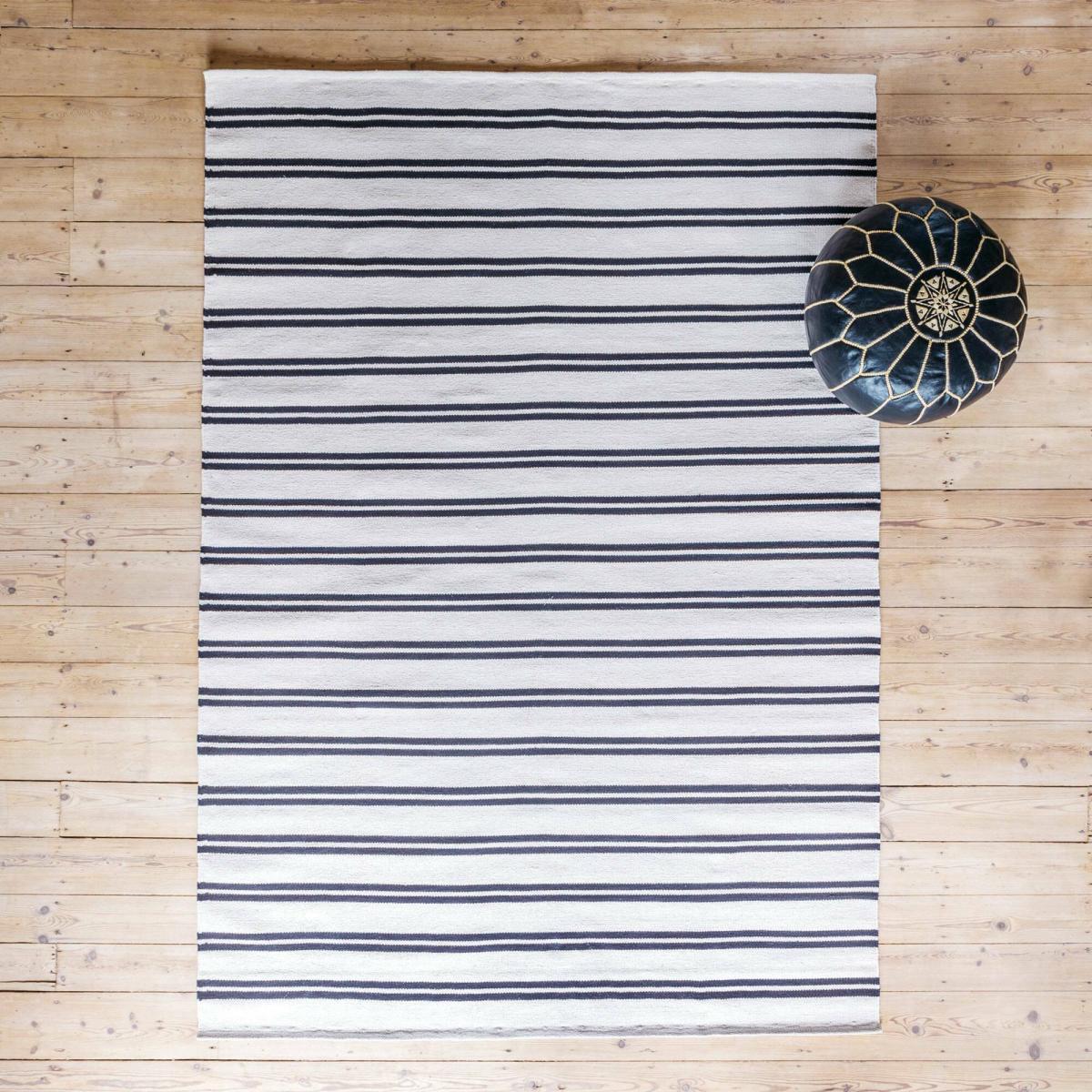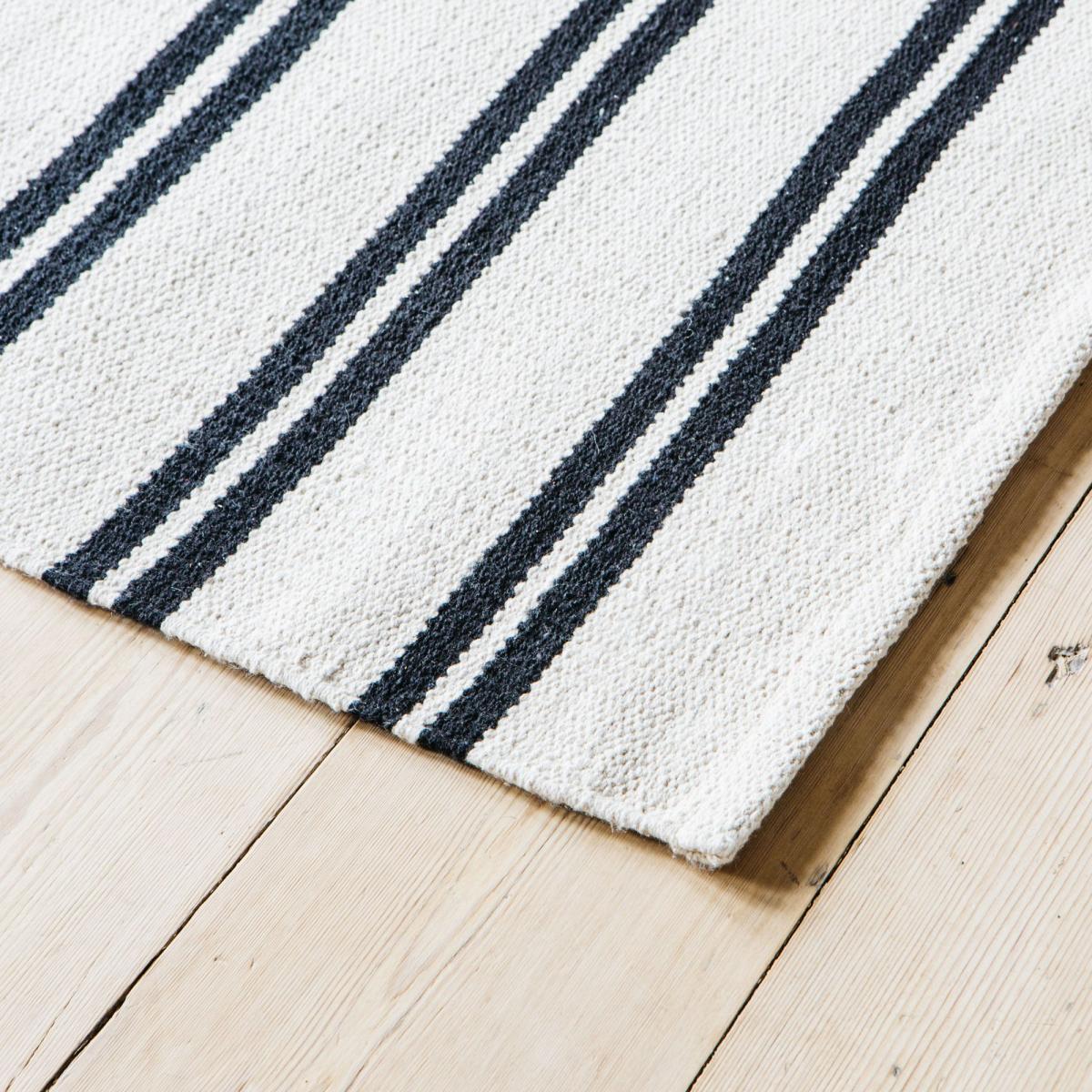 Handwoven from cotton, this rug features a contemporary stripe for a modern update to your bedroom or living space. Available in 3 sizes.