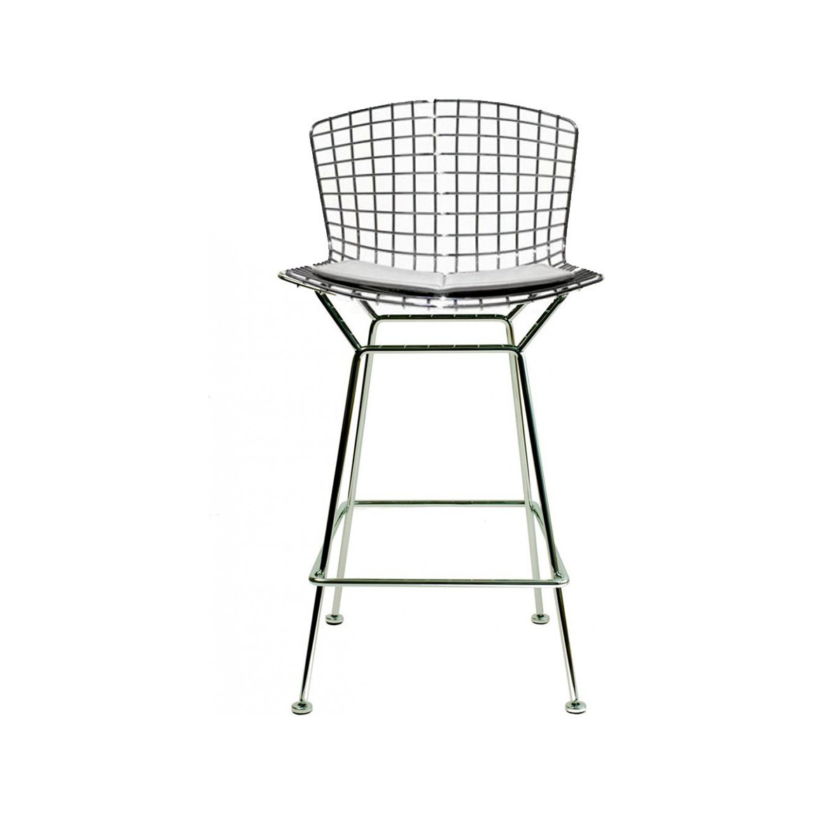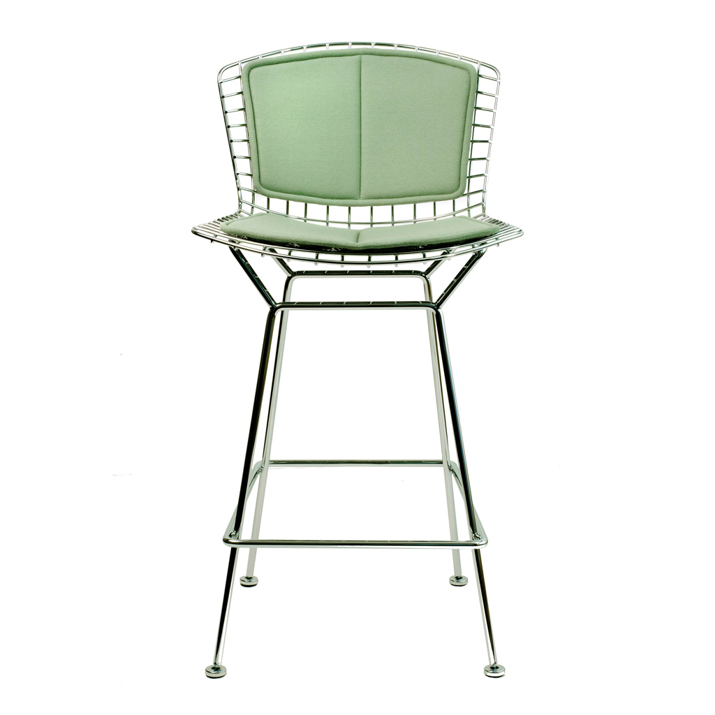 Part of Bertoia's 1952 Wire Chair Collection, this iconic Bertoia Bar Stool in chrome is a sculptural structure, with clean lines of chrome-finished steel rods constructing its mid-century modern form. Crafted from welded steel rods finished with polished chrome that make up the seat and base, the Bertoia stool's comfortable seat pad attaches with practical snap buttons. With a Knoll stamp of authenticity on the back, this sculptural counter stool would lend a touch of artistry wherever you choose to place it.